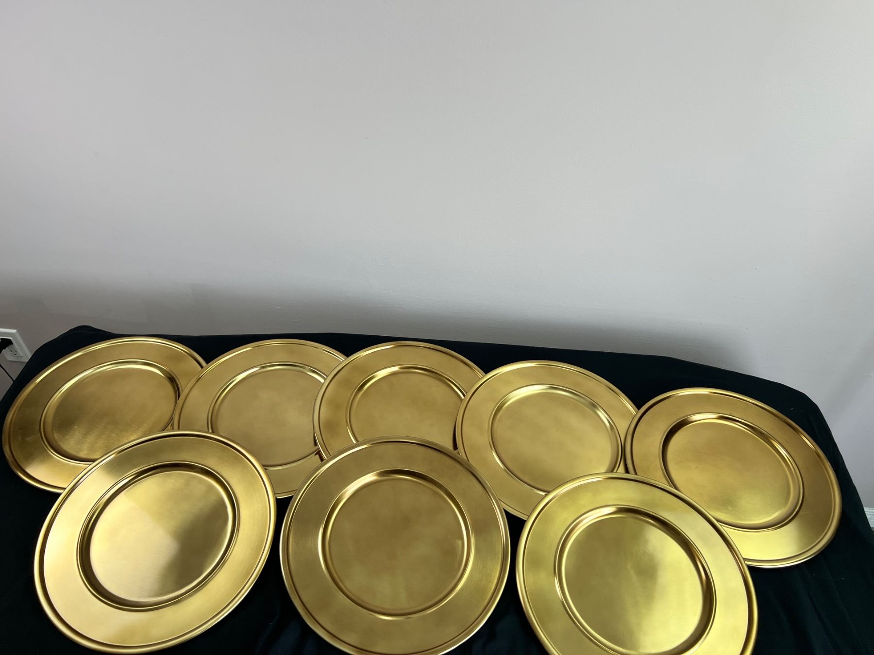Approximately 13.5" in diameter. All have small feet. 8 pieces total.