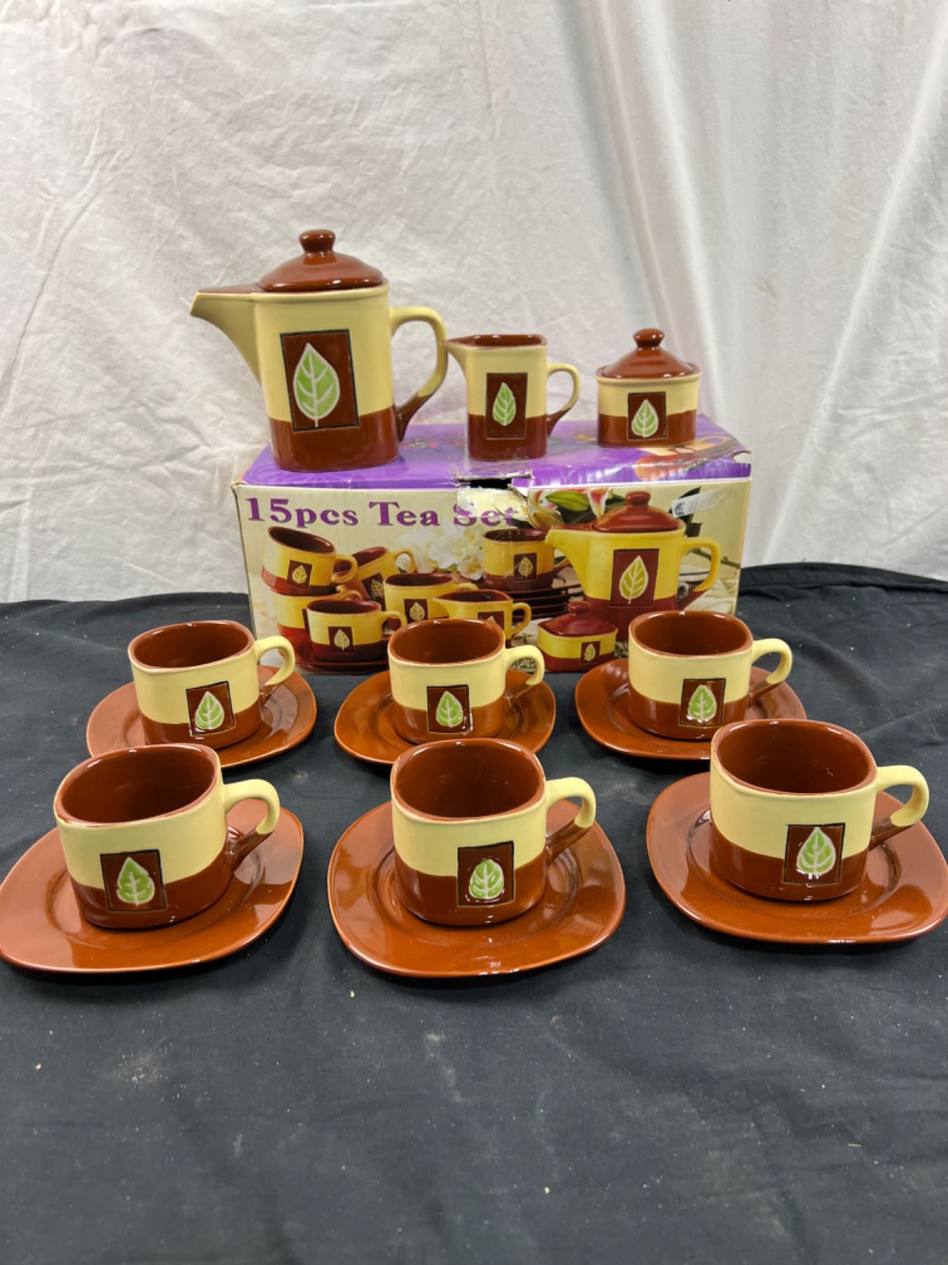 Includes Tea Pot & Lid, ! Creamer, 1 Sugar Bowl & Lid, 6 Cups & Saucers