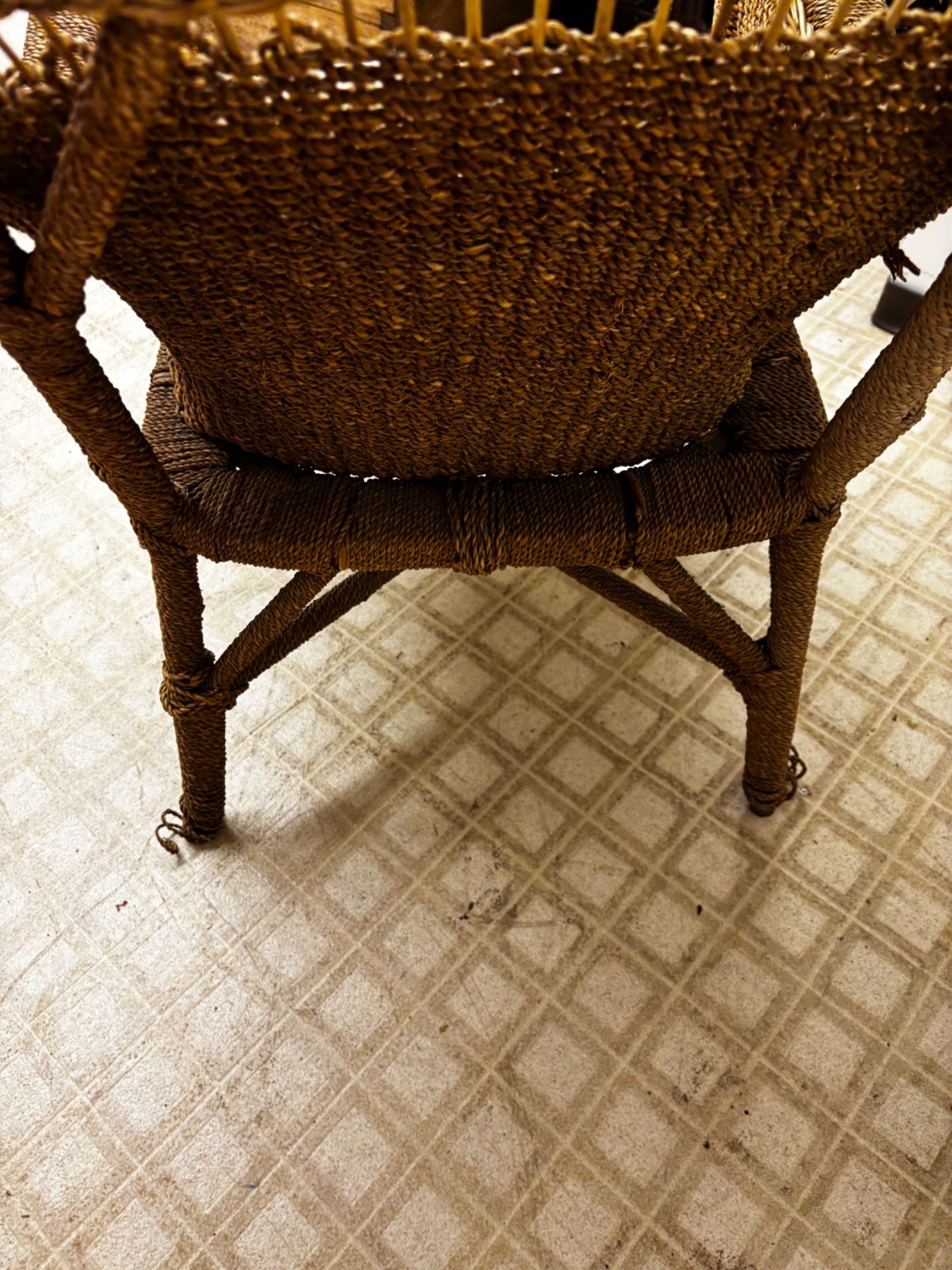 From the Vegreville Public Library, wicker is worn and fraying in various places