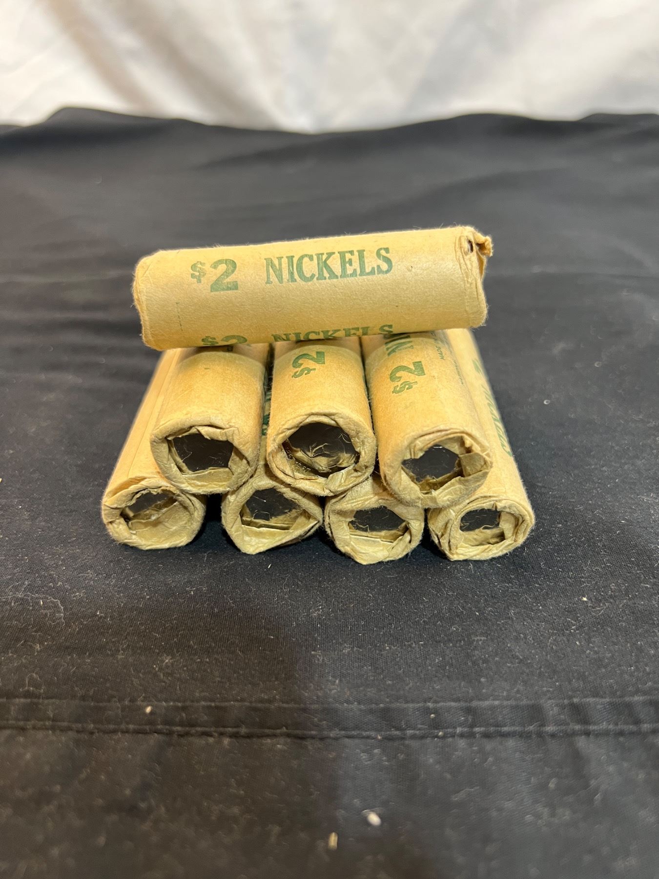 Eight rolls, 40 nickels/roll, $2 equivalent of nickels in rolls.