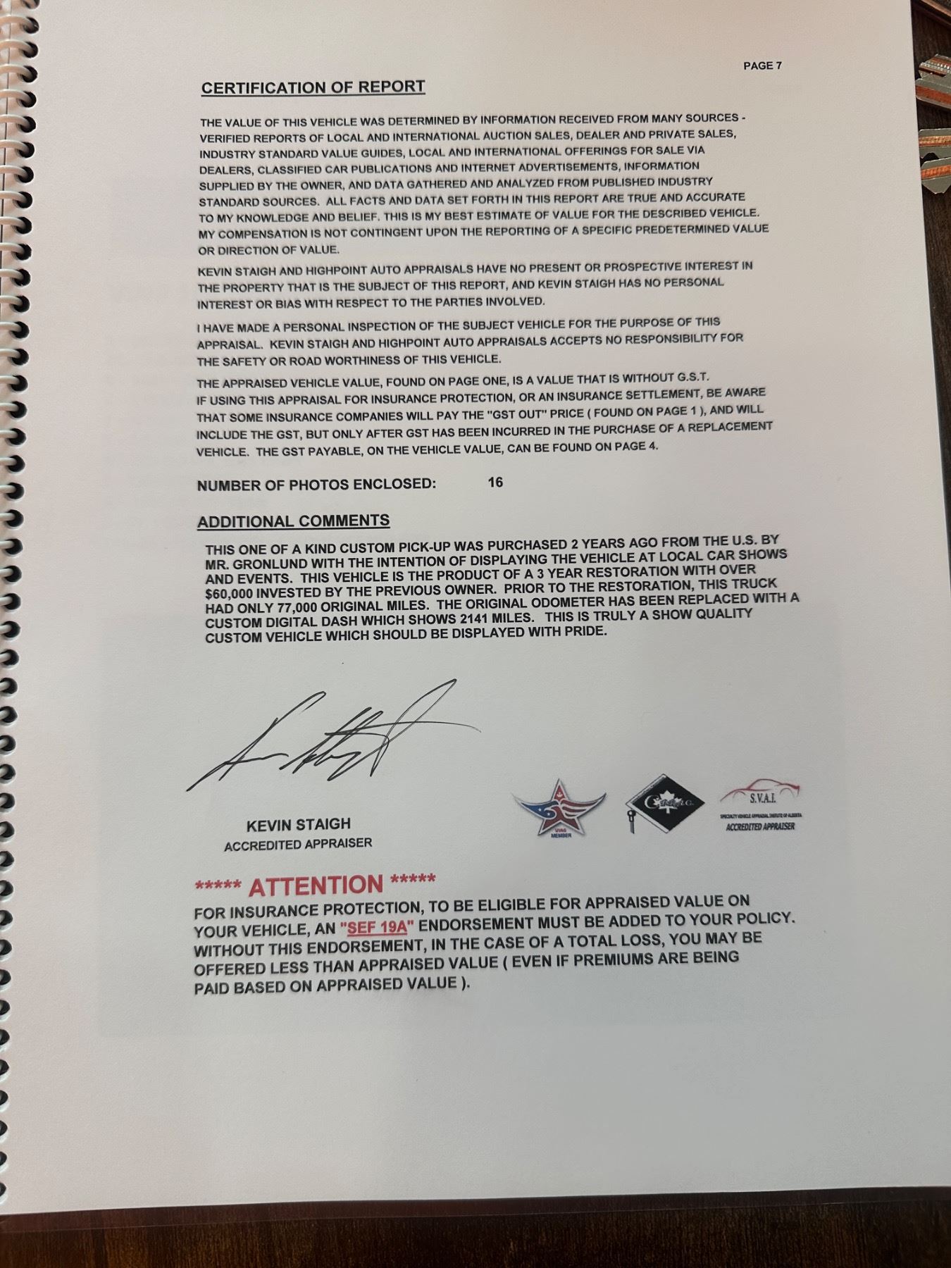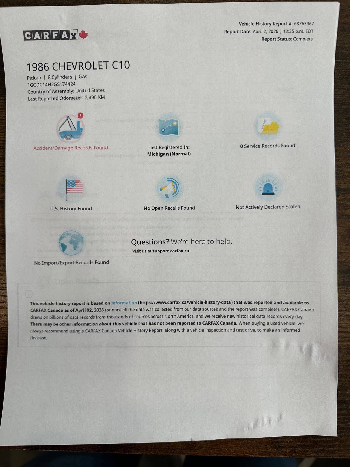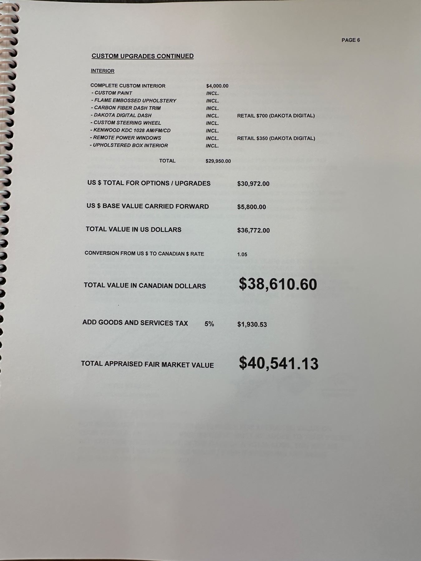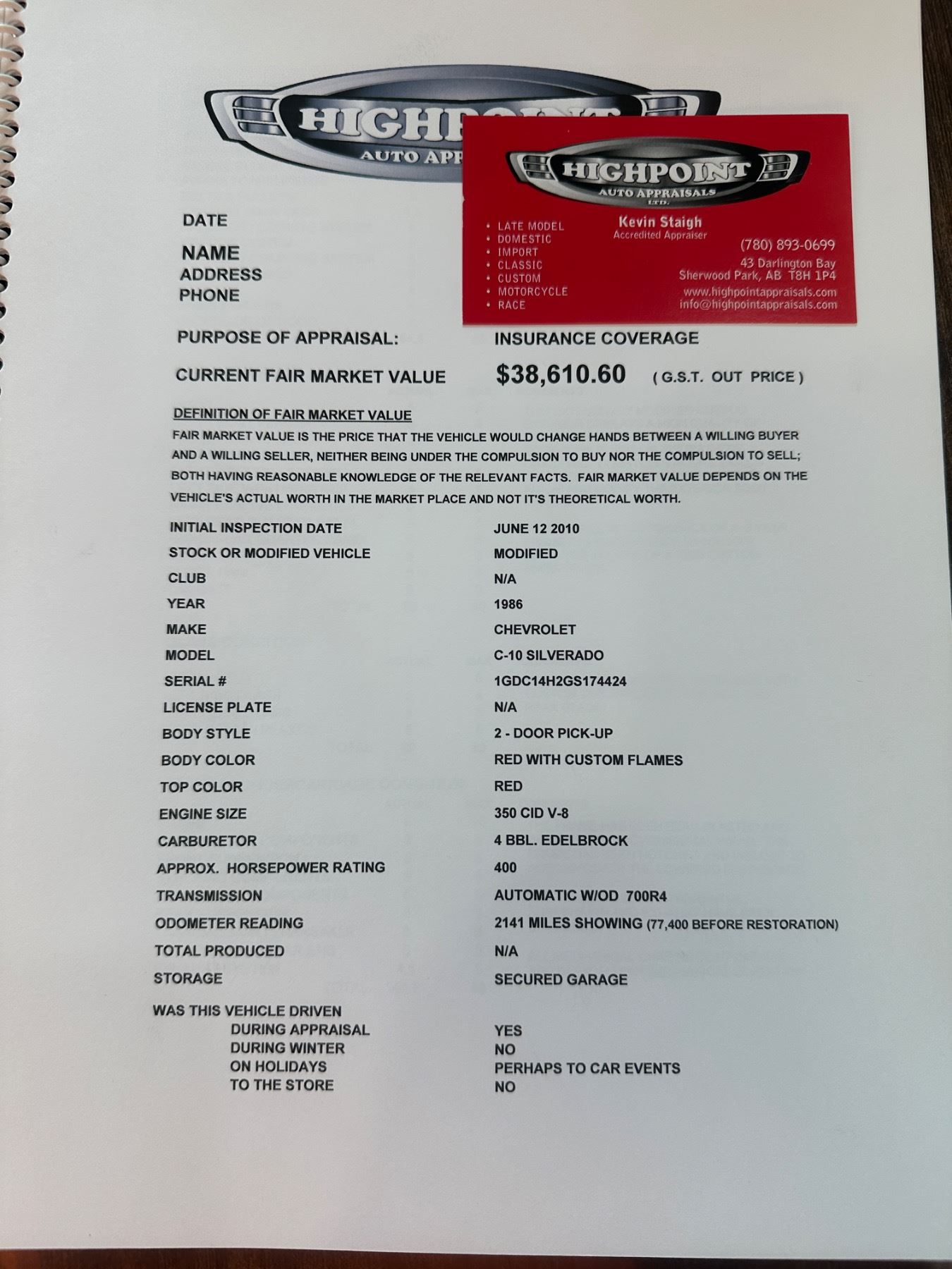 Appraisal completed in 2010 for $36,772 USD - Full Appraisal, Carfax, State of Michigan Certificate of Title and Canada Customs Duty Paid - shown in photos