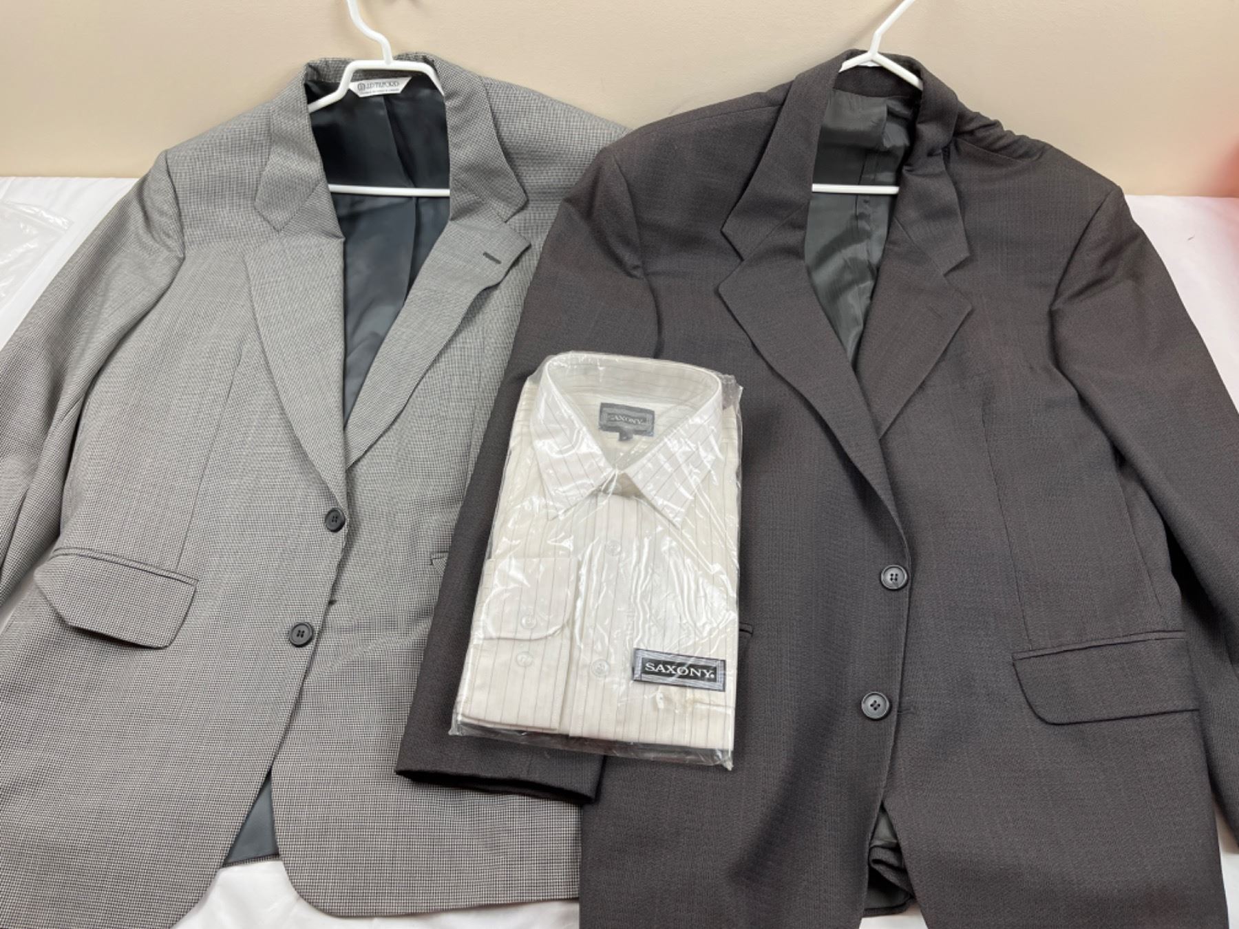 Shirt - Saxony Size 16, 1 Jacket Cricketeer Wool Size Unknown, 2nd Jacket Harry Rosen Size Unknown