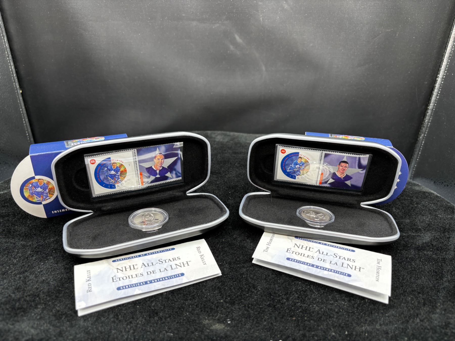 Includes, Tim Horton and Red Kelly, both have a certificate of authenticity