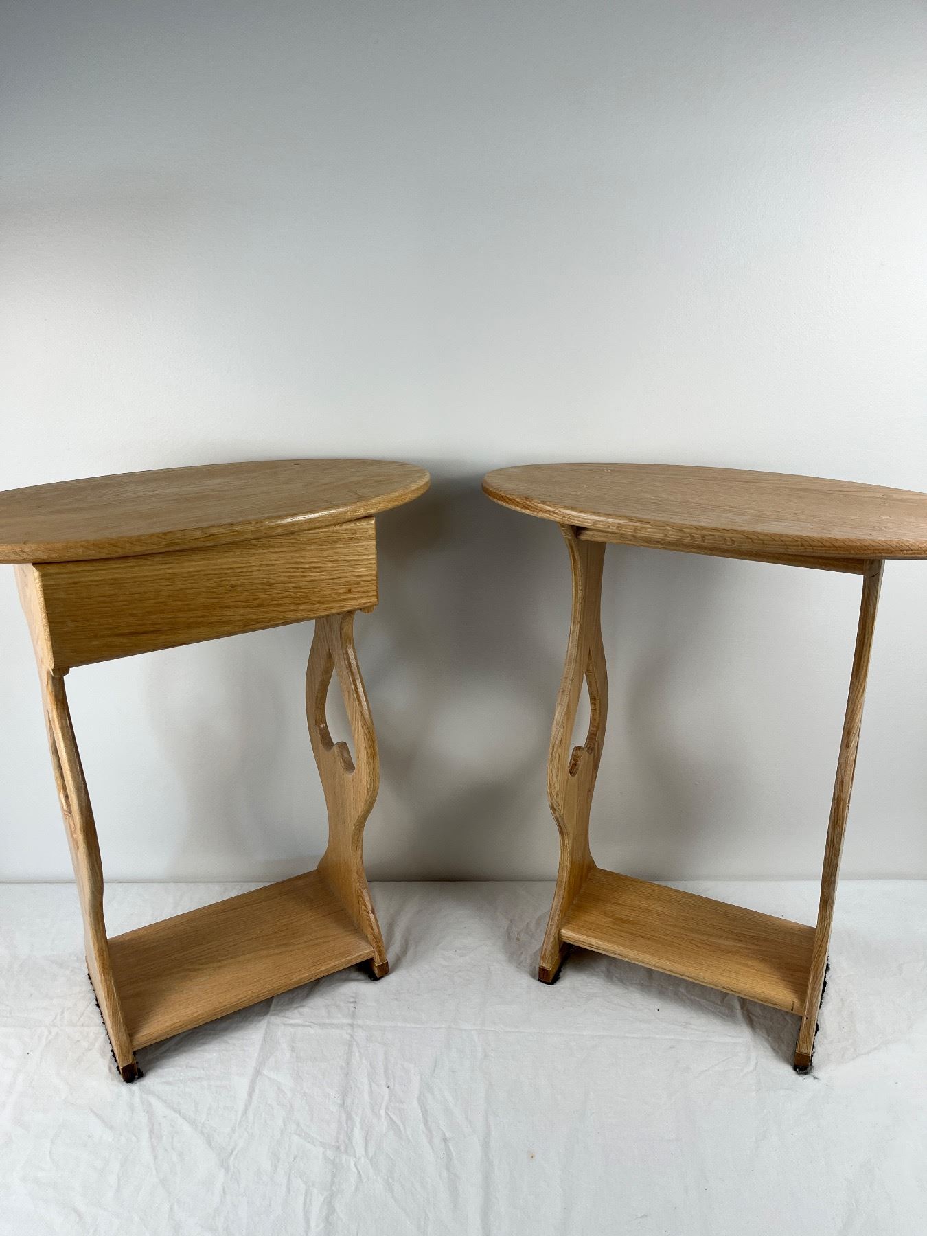 1 with drawer, 21.5' long X 11" wide X 24.5" tall, some scuffs, chips
