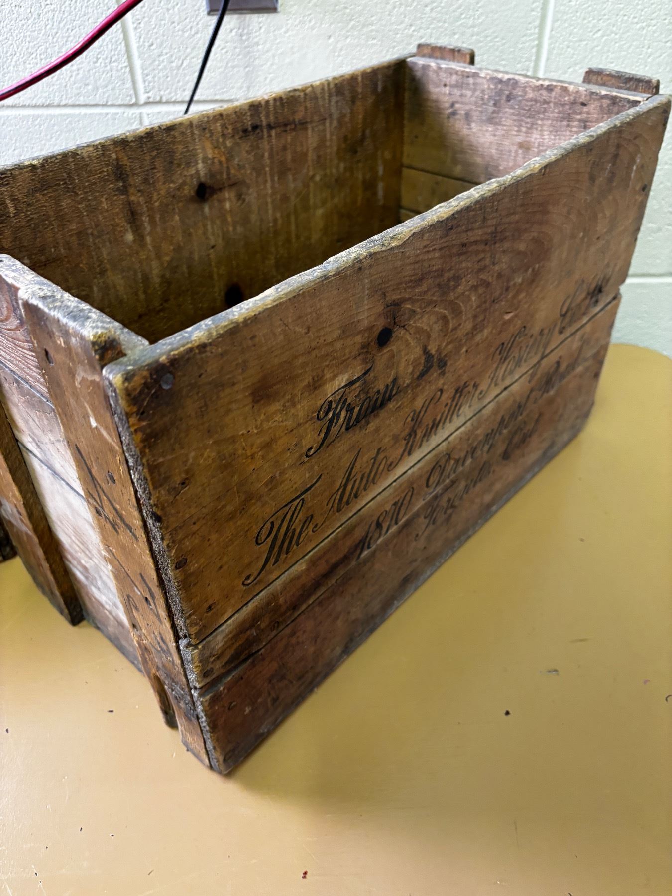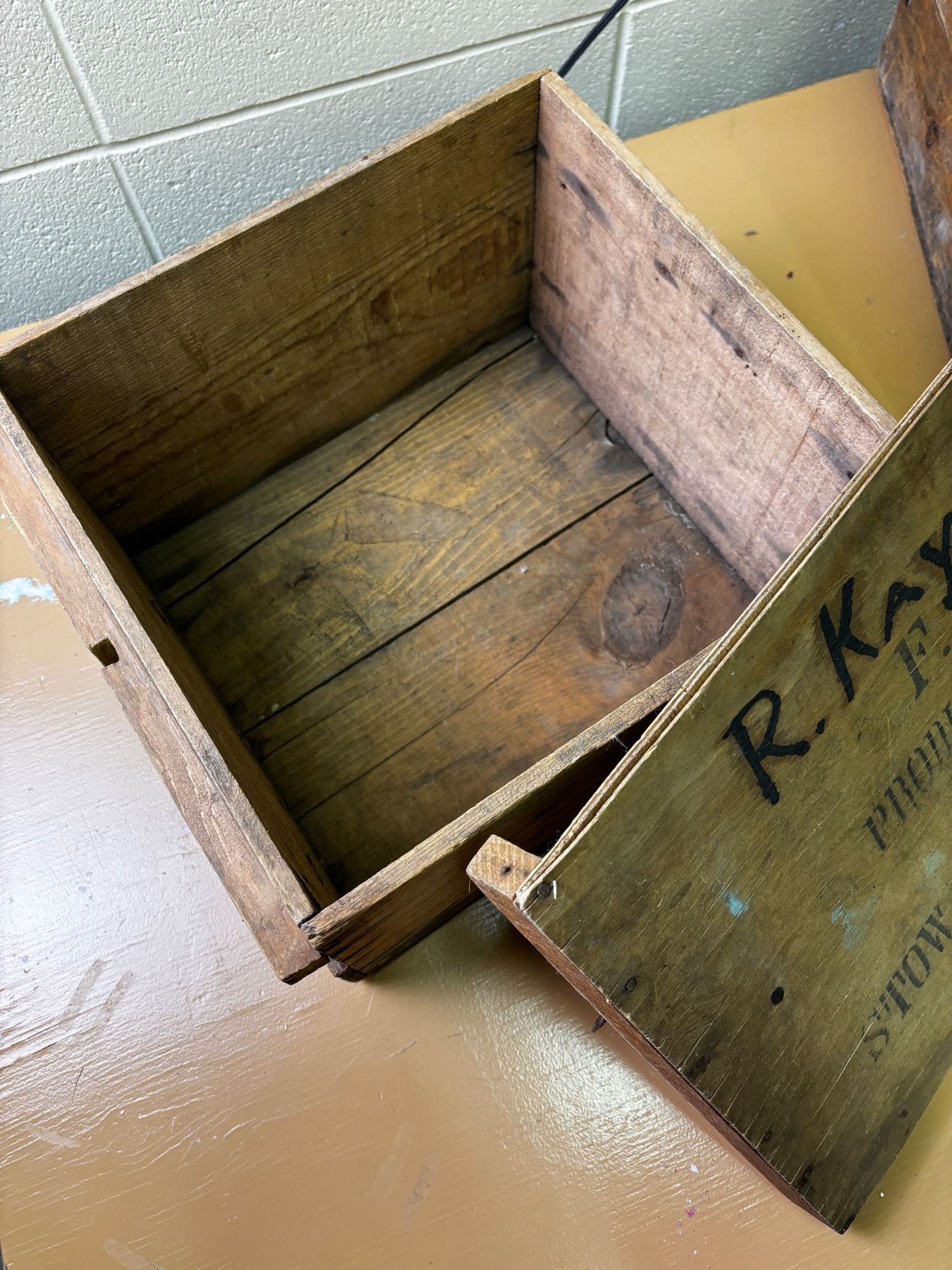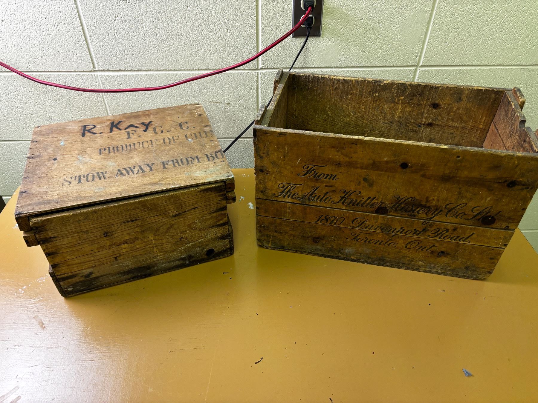 One crate has sharpie markings, Largest is 19"L x 10"W x 12.5"H