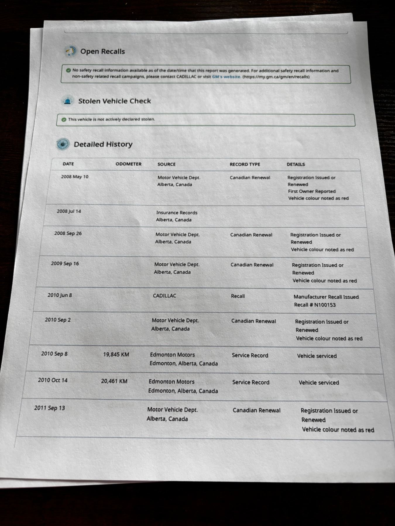 Carfax in photos. Information on specs can be found on internet or through Cadillac’s website.