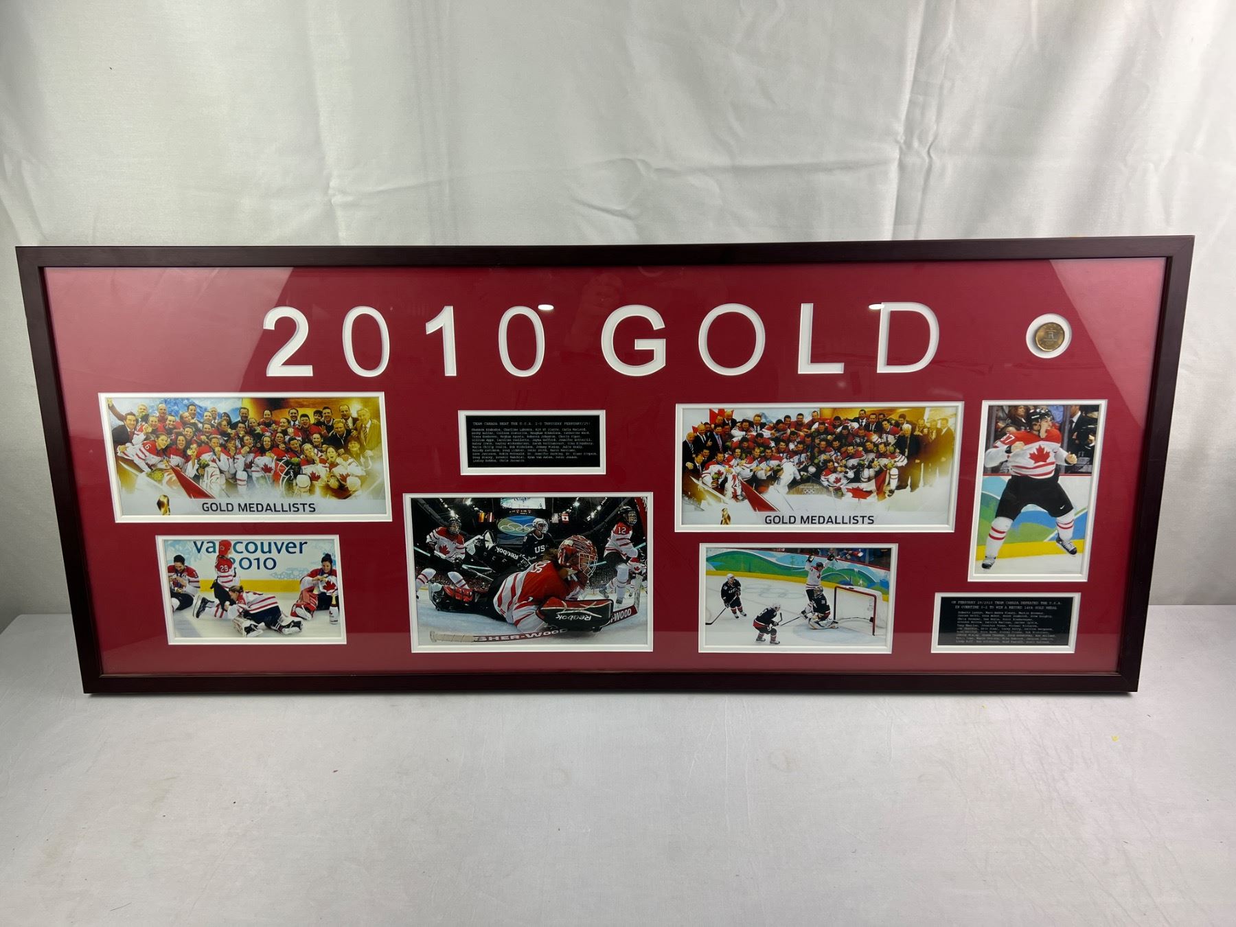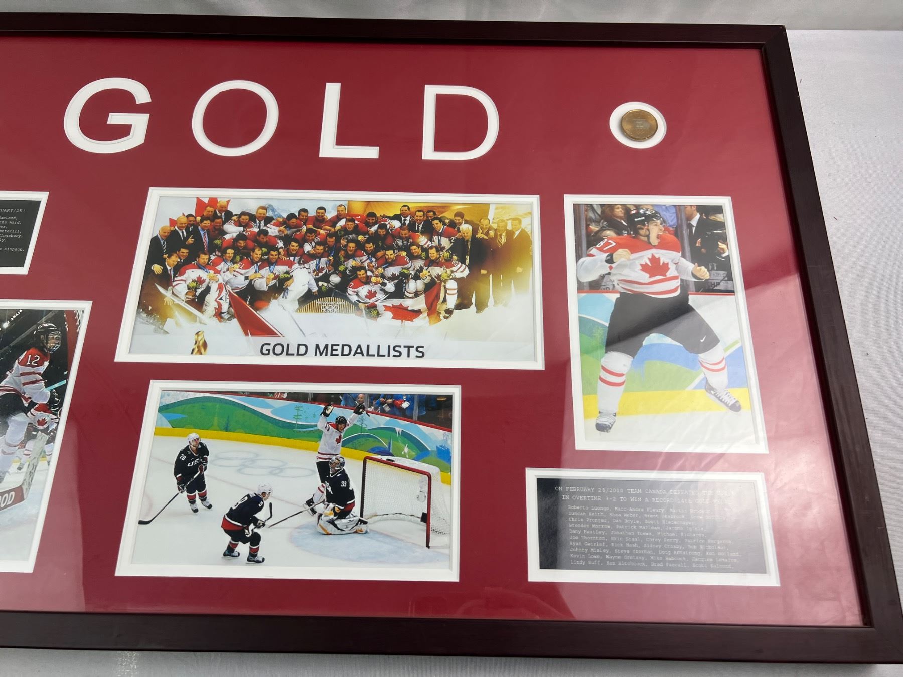 2010 Vancouver Olympics Mens & Womans Hockey Gold Medal Wins 17"x 41" With Loonie Framed
