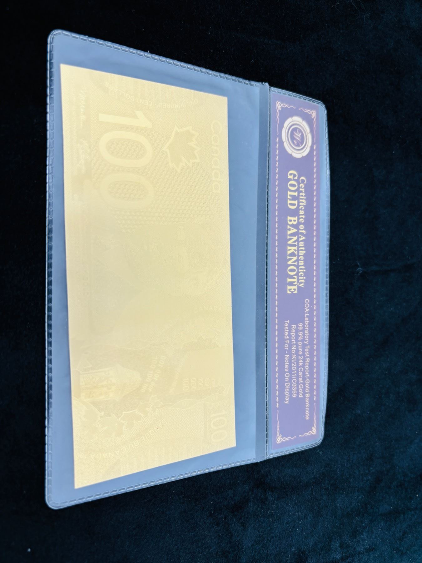 99.9% 24K Carat Gold COA Laboratory Test Report - Gold Banknote, With Certificate of Authenticity