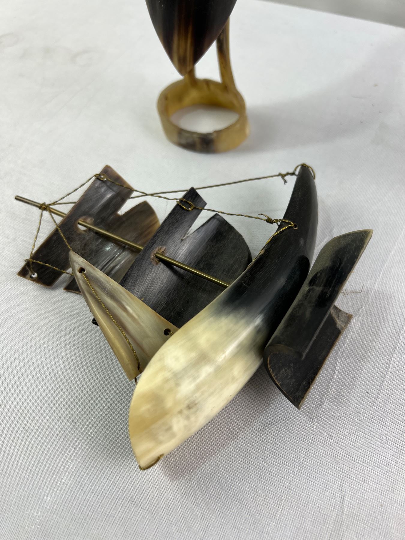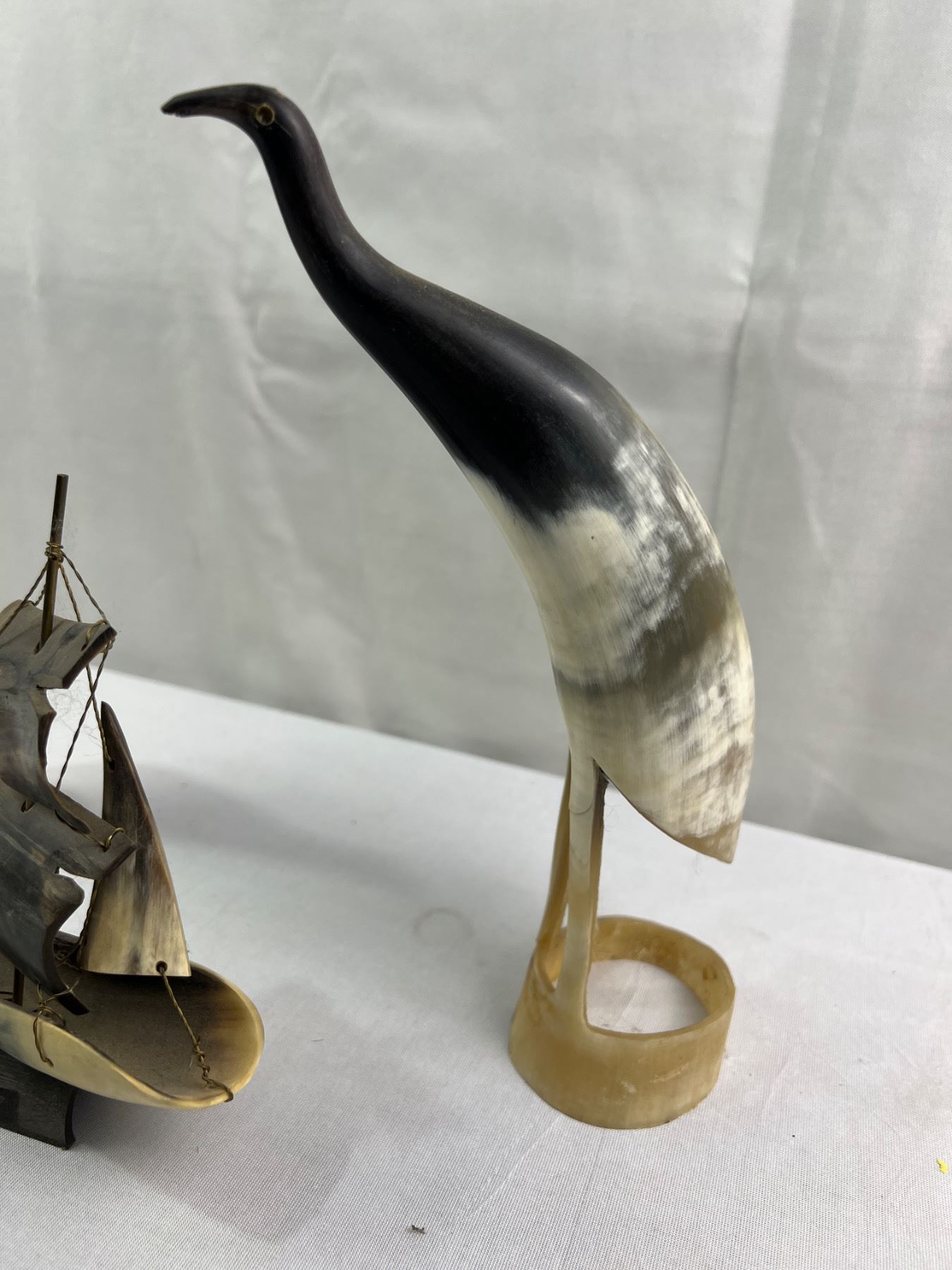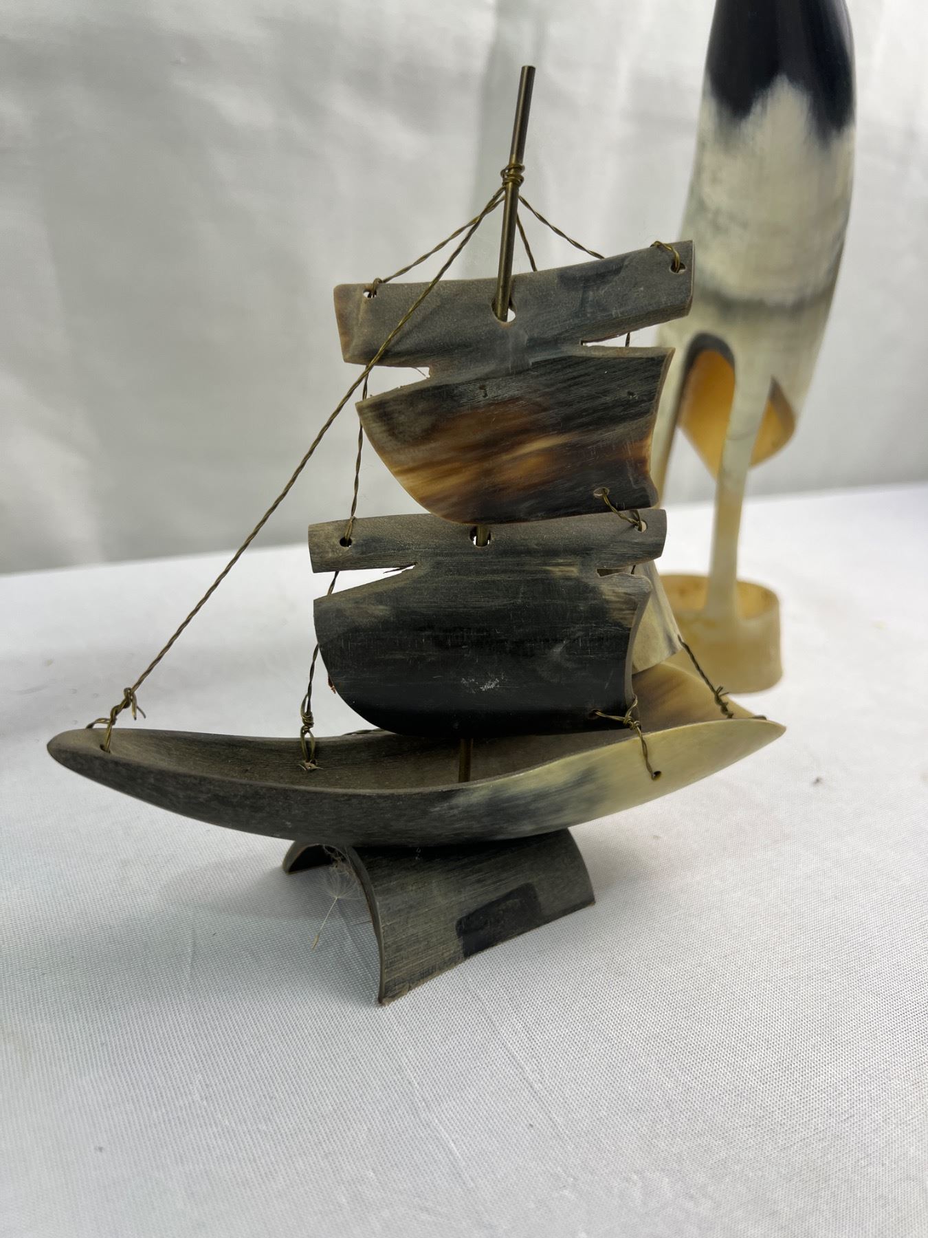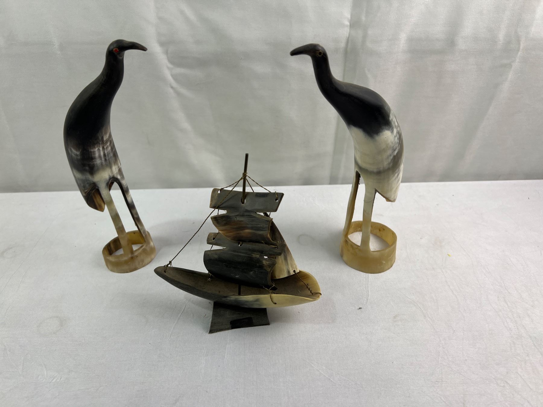 Horn Art Ship and 2 Birds Tallest is 10"