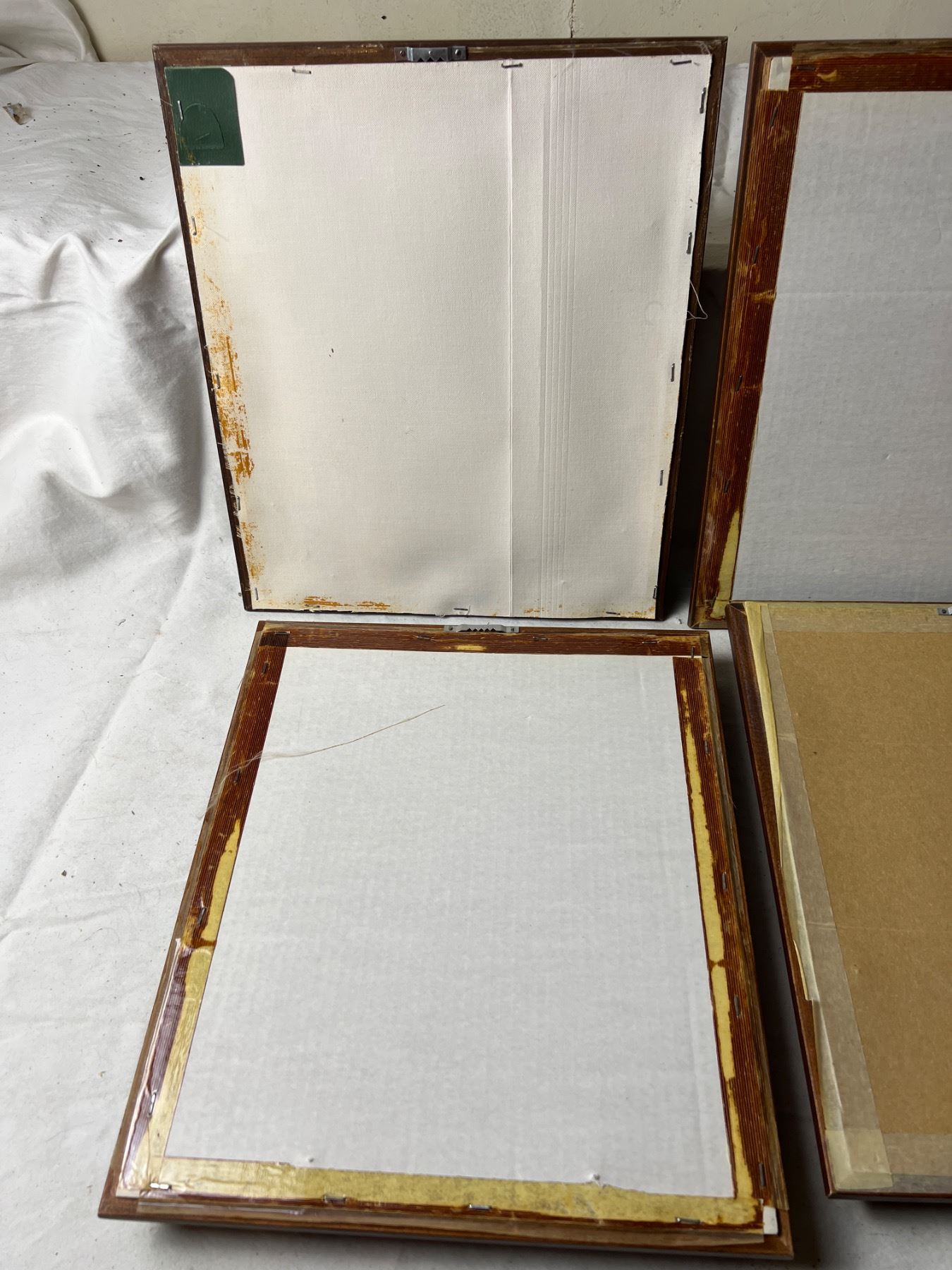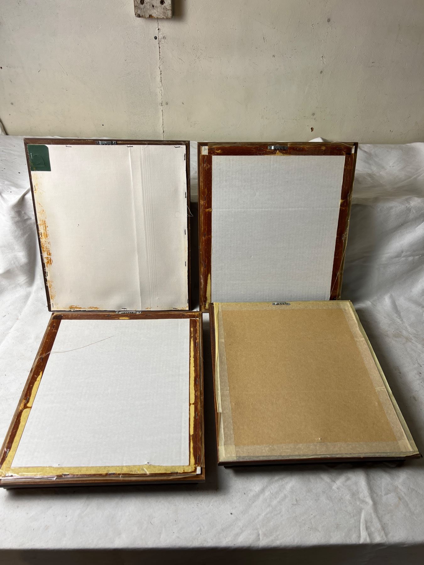 All the same size frame 15" by 13". 3 pieces are missing proper rear panels.
