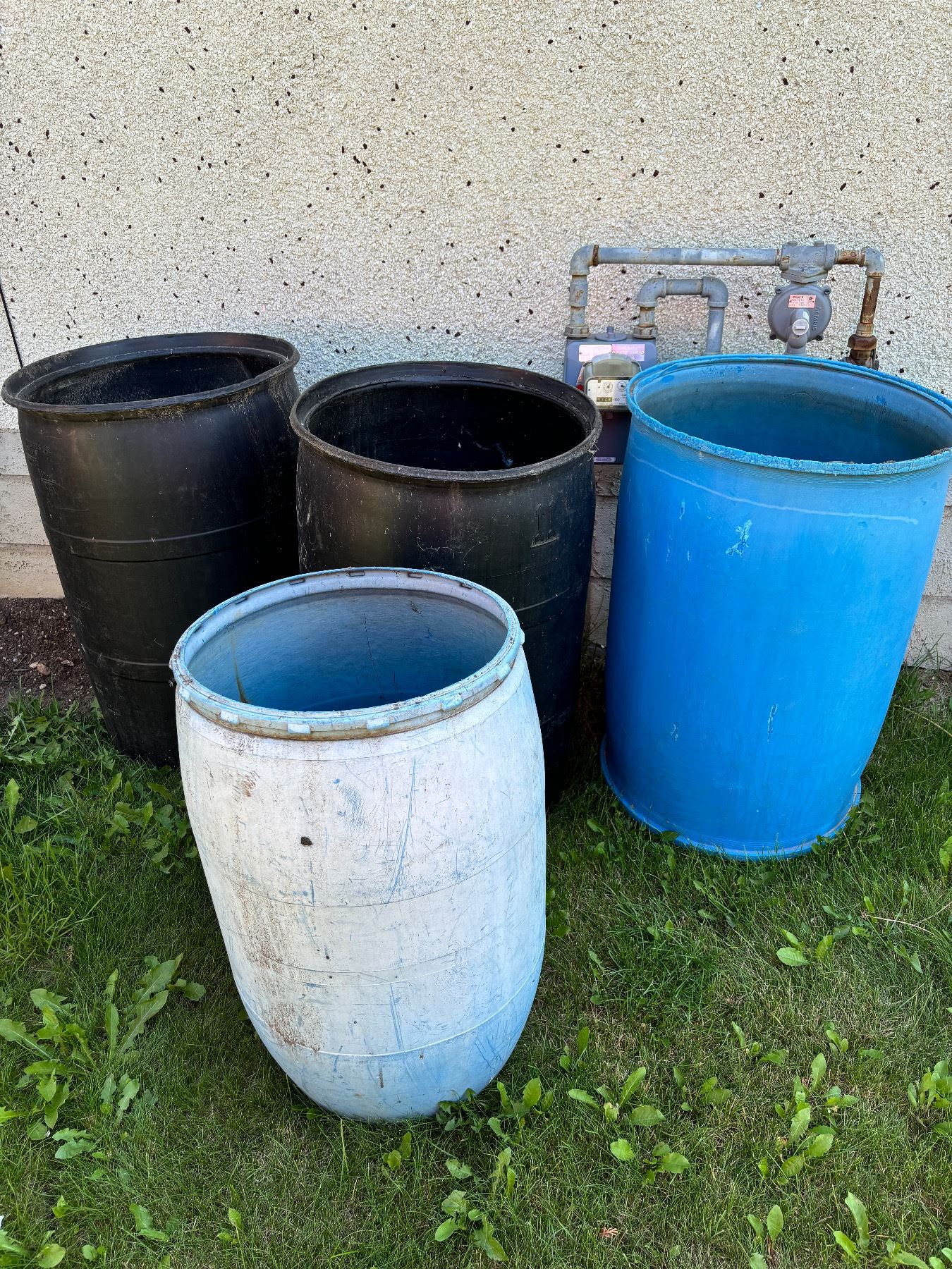Largest black barrel is 2FtW x 3Ft H