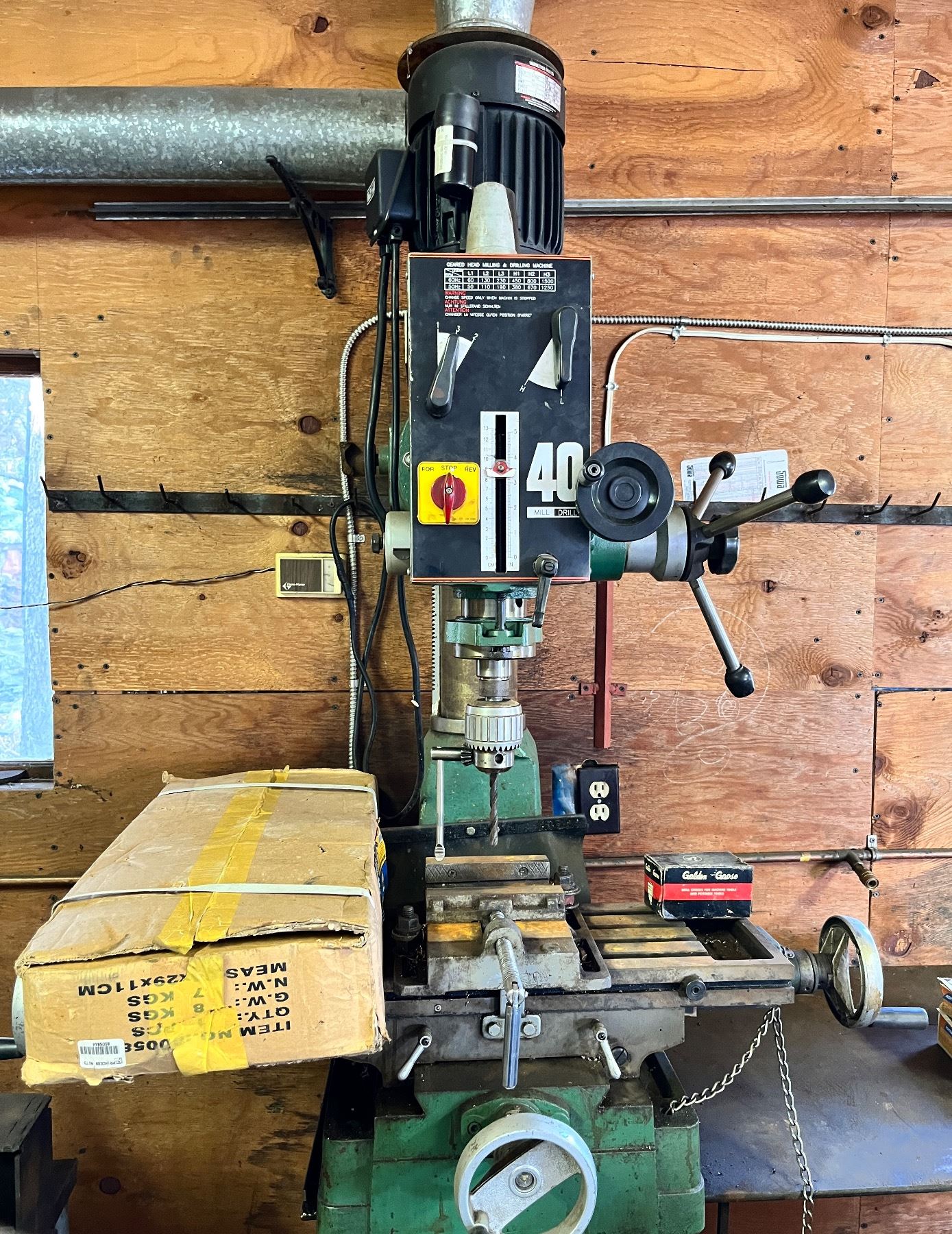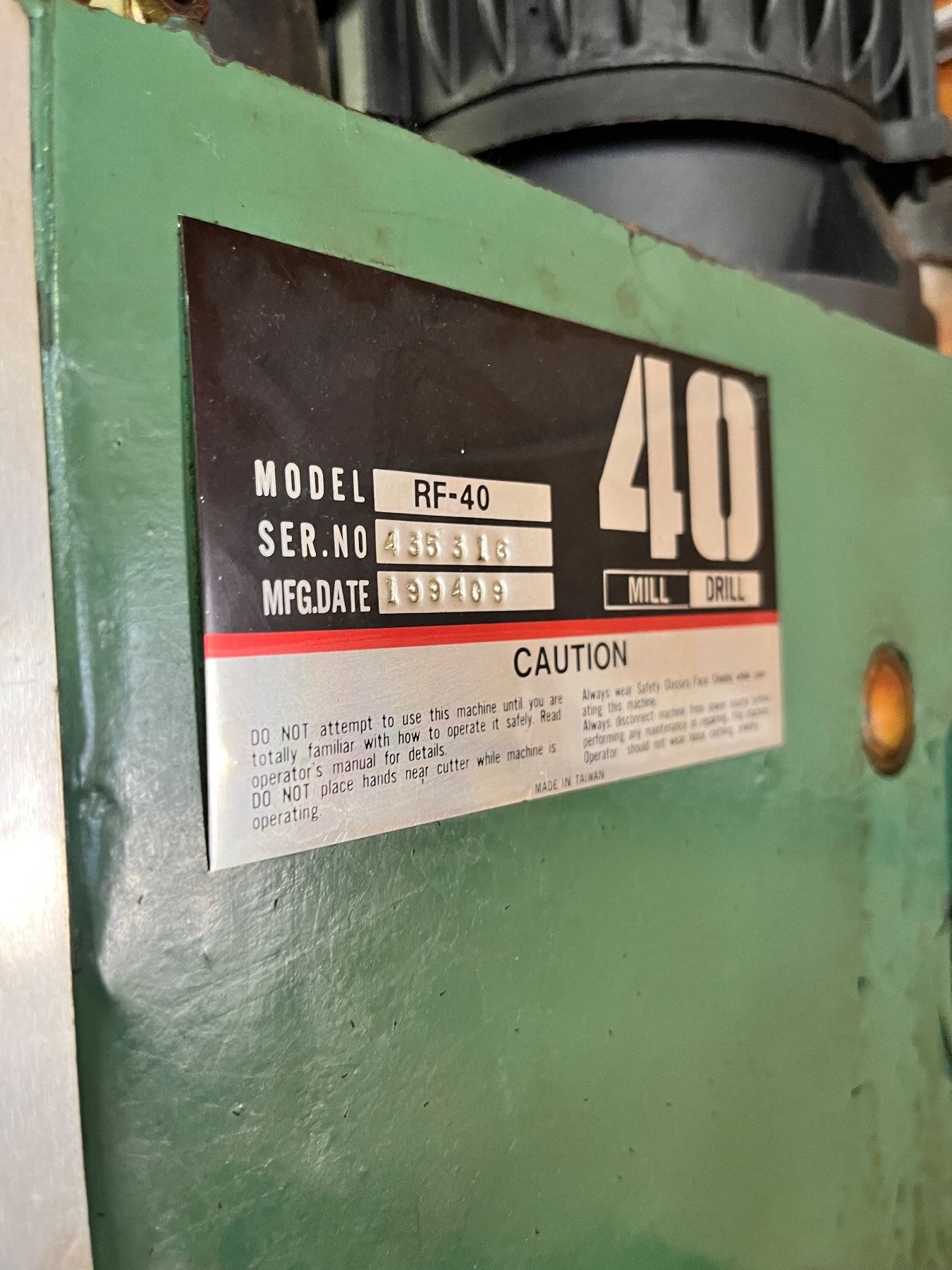 Works, well used condition, Model No. RF-40, Includes, drill press roller stand, 2'L x 42"W x 51"H
