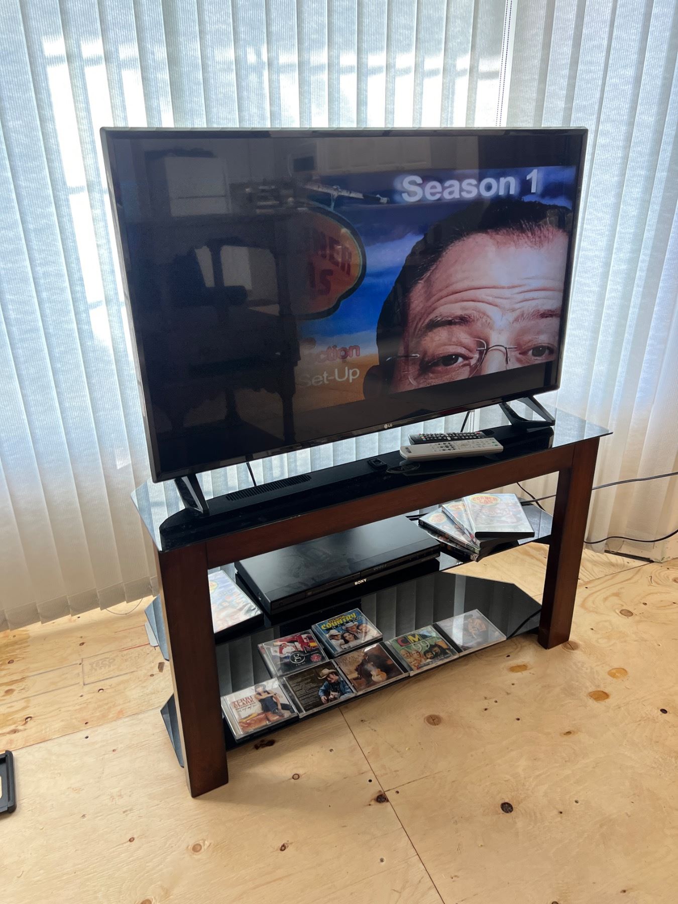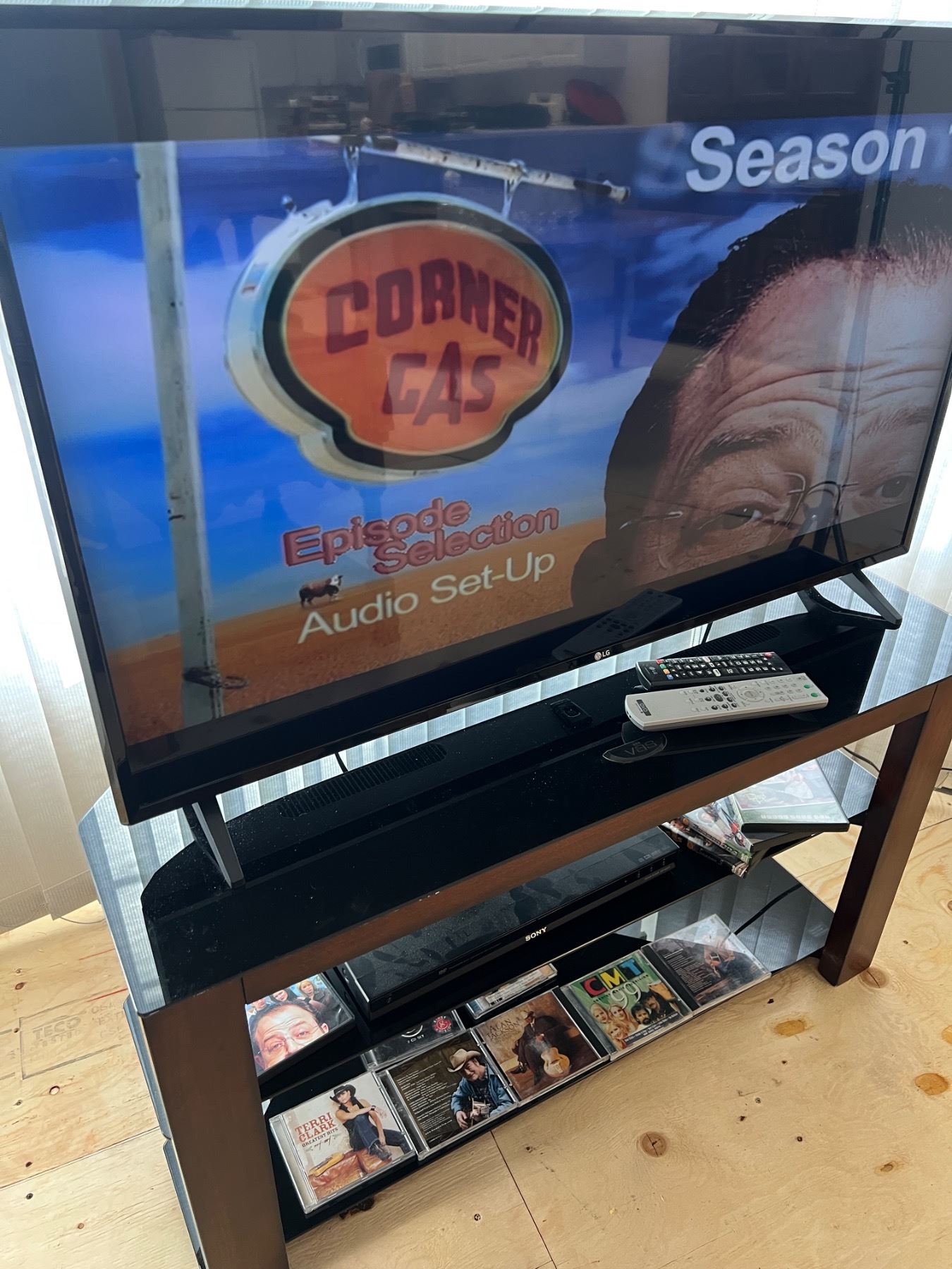 Includes 43" LG TV, Sony CD/DVD Player (both work) - Seasons 1-5 Corner Gas, CD's, entertainment stand and TV wall mount.