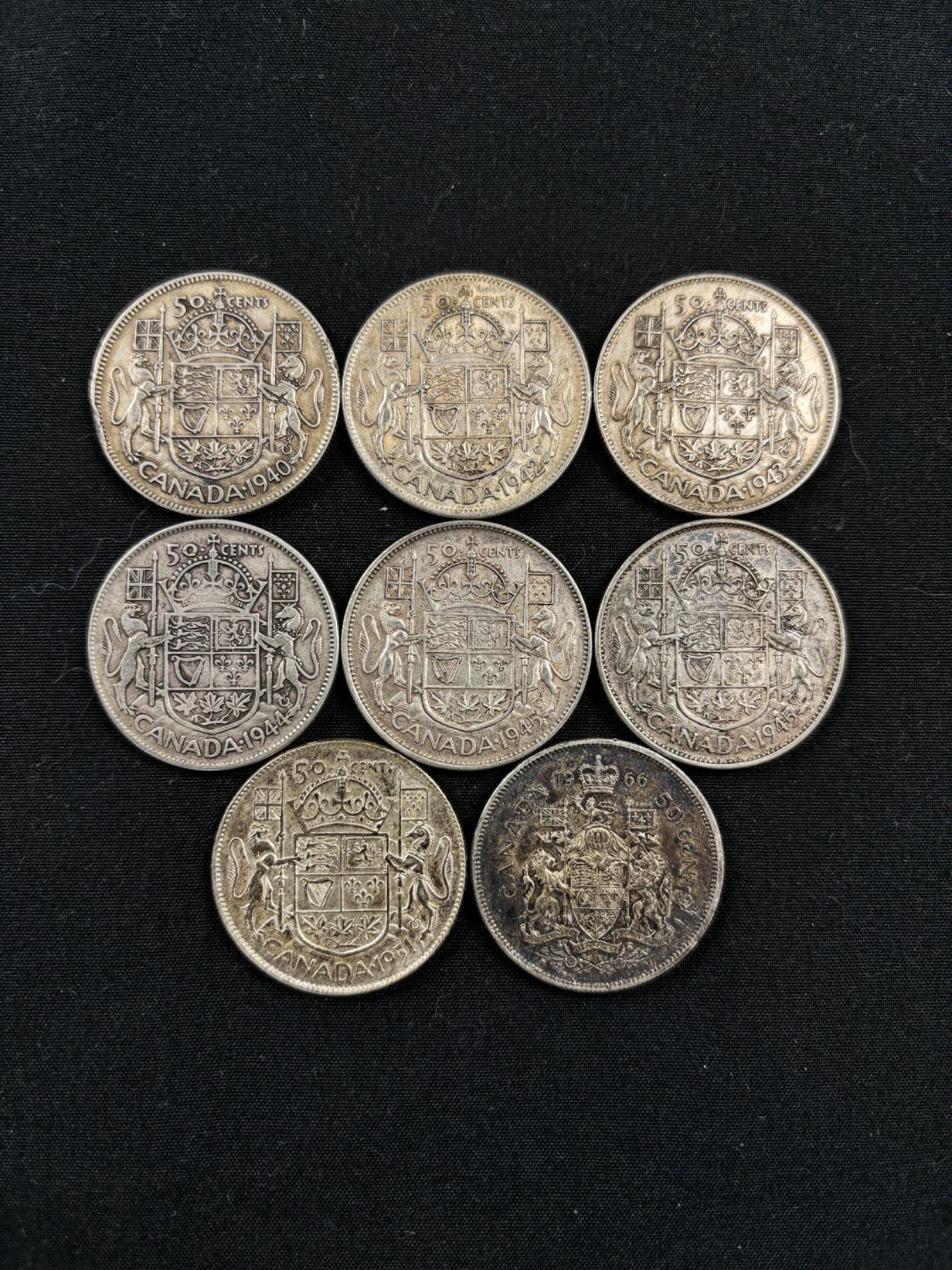 years of coins include 1966, 1943, 1951, 1944, 1942, 2 from 1945, 1940