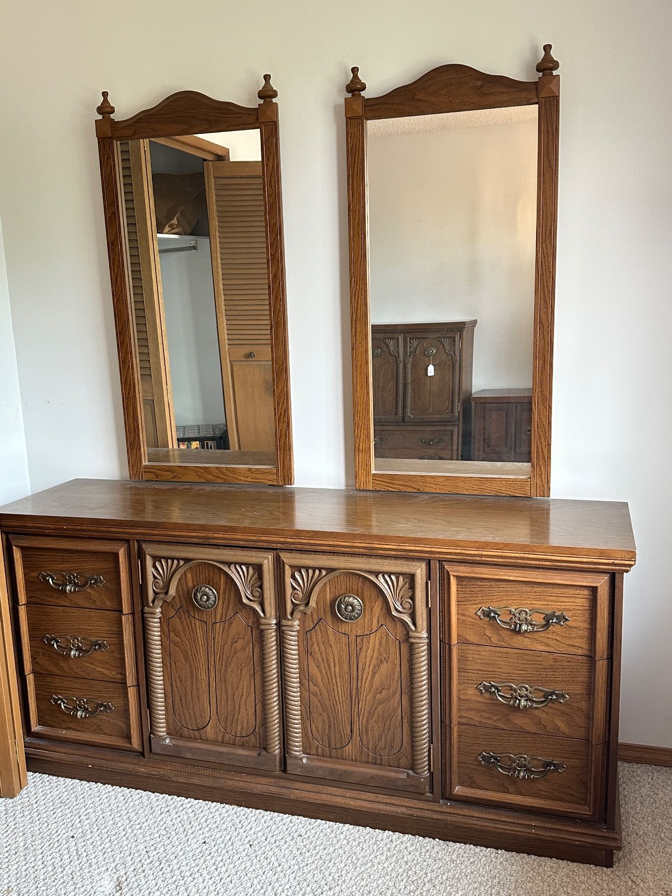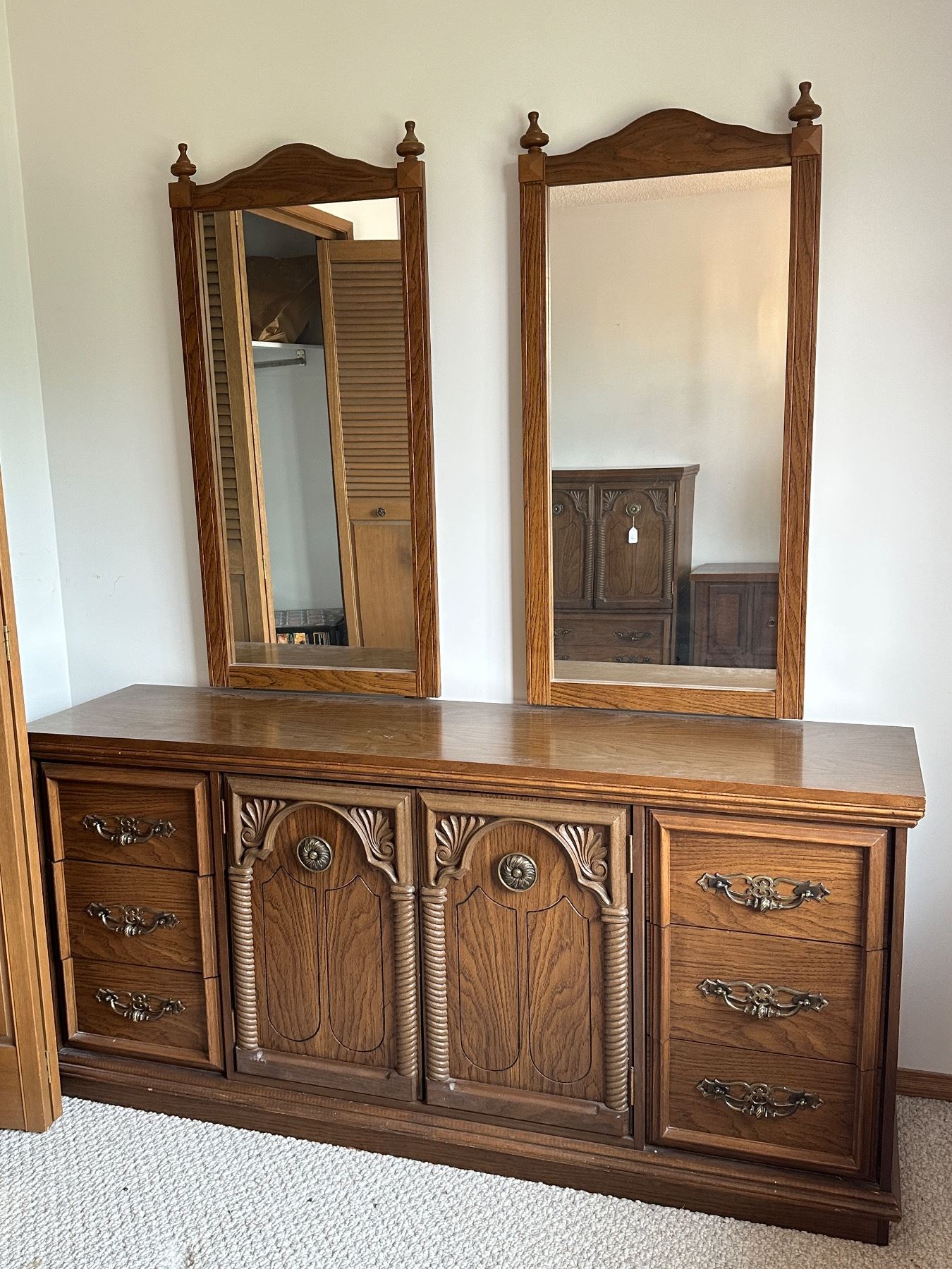 Dresser 66" long x 17" deep x 31" tall - Each Mirror 21.5" wide x 45" tall
