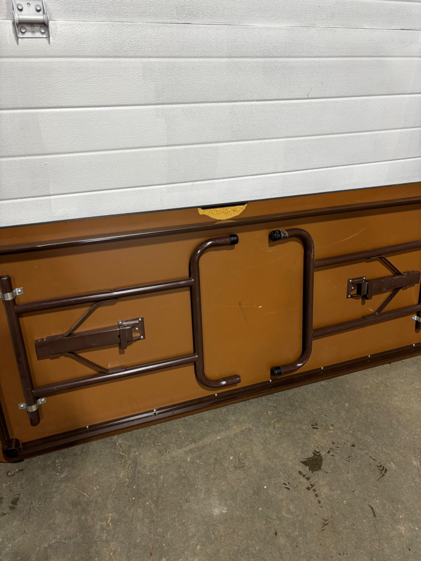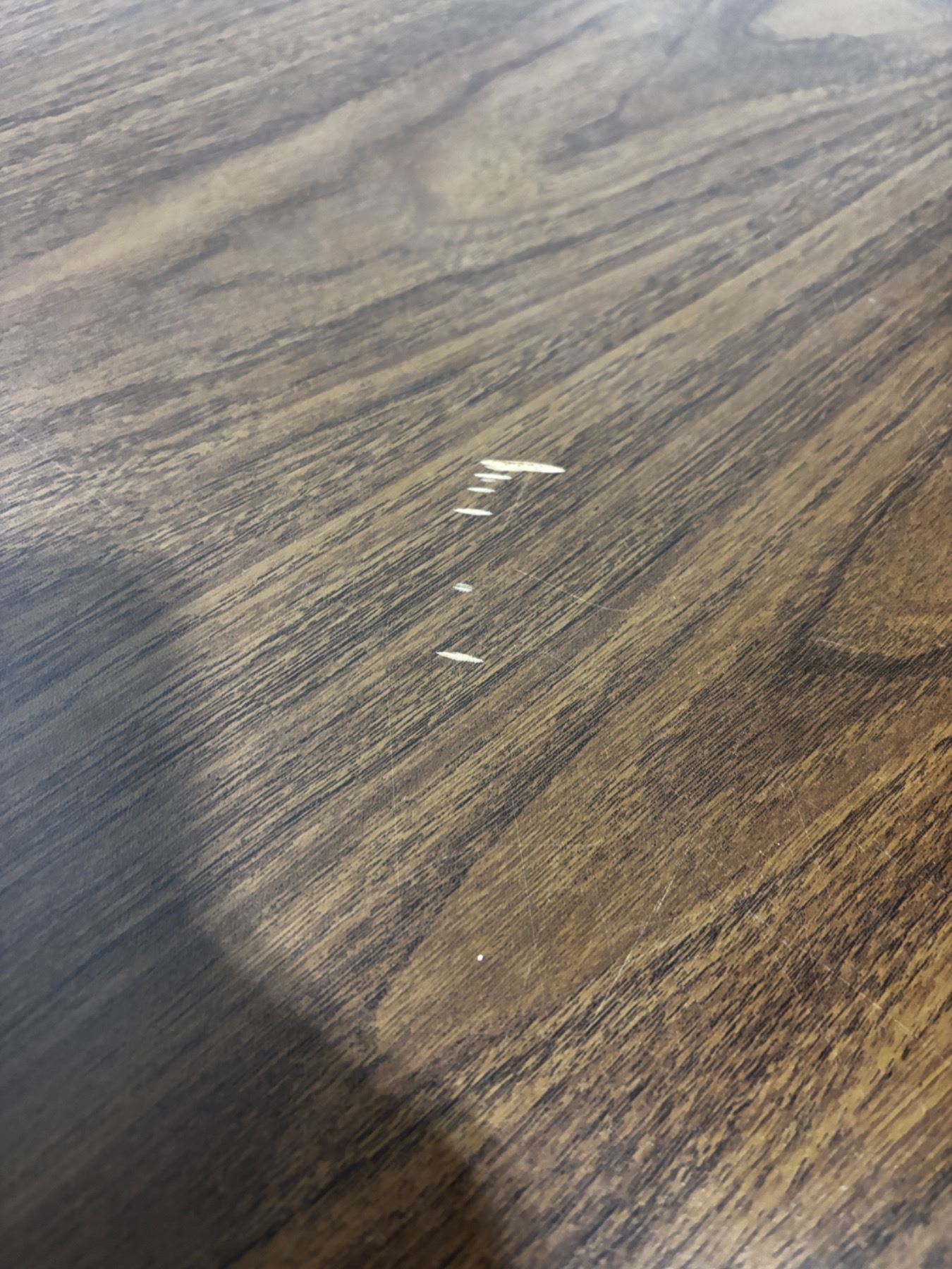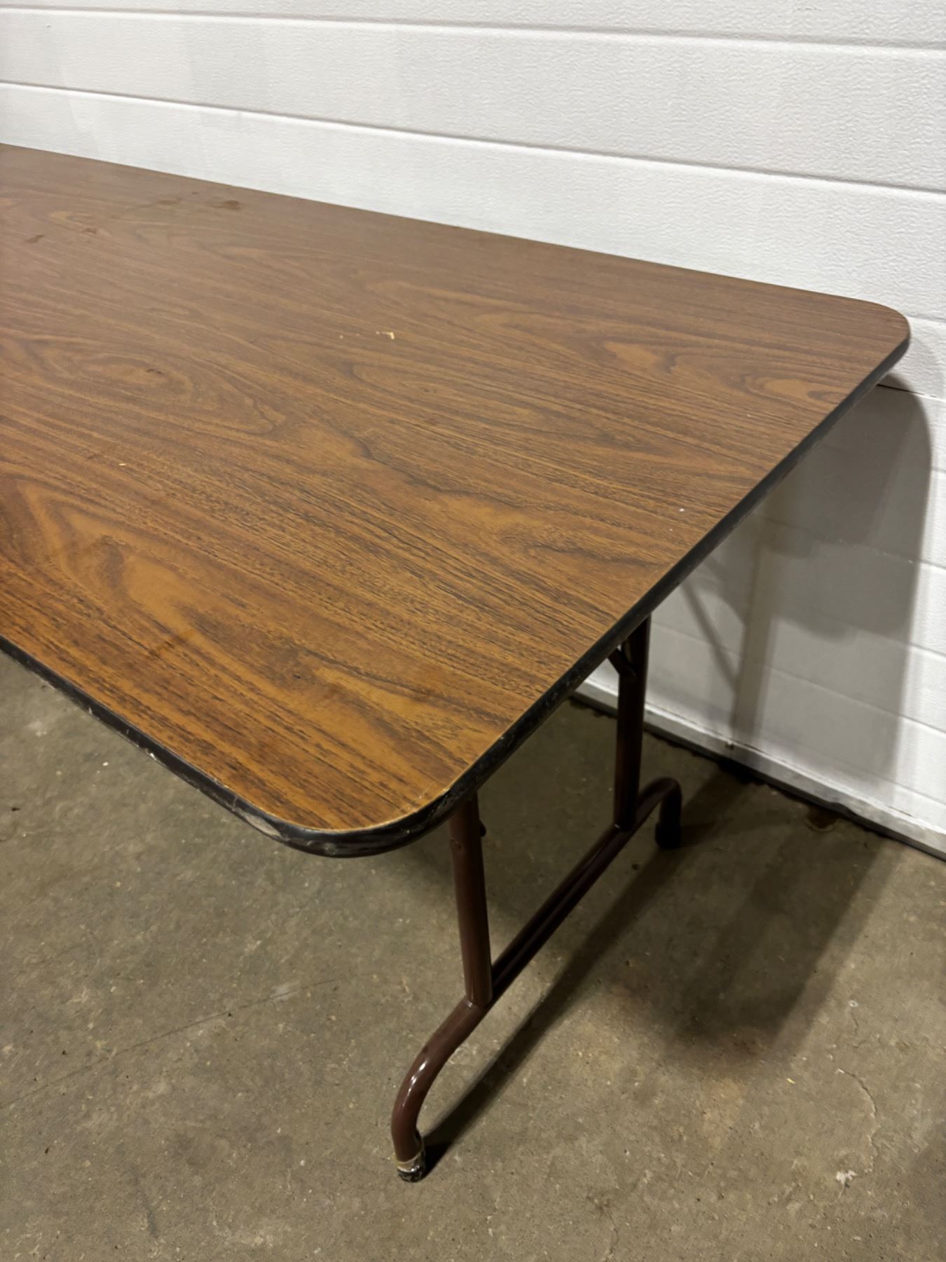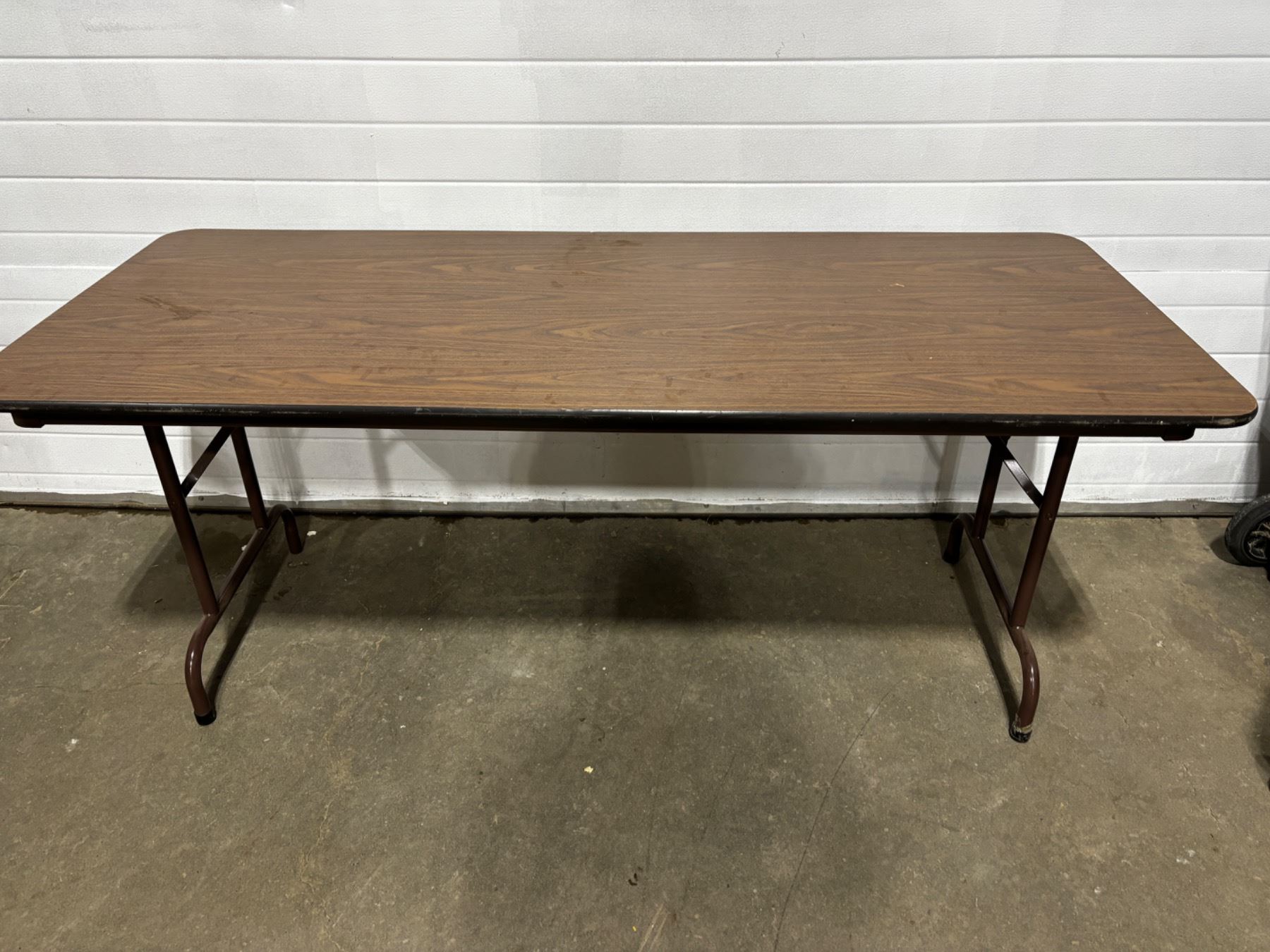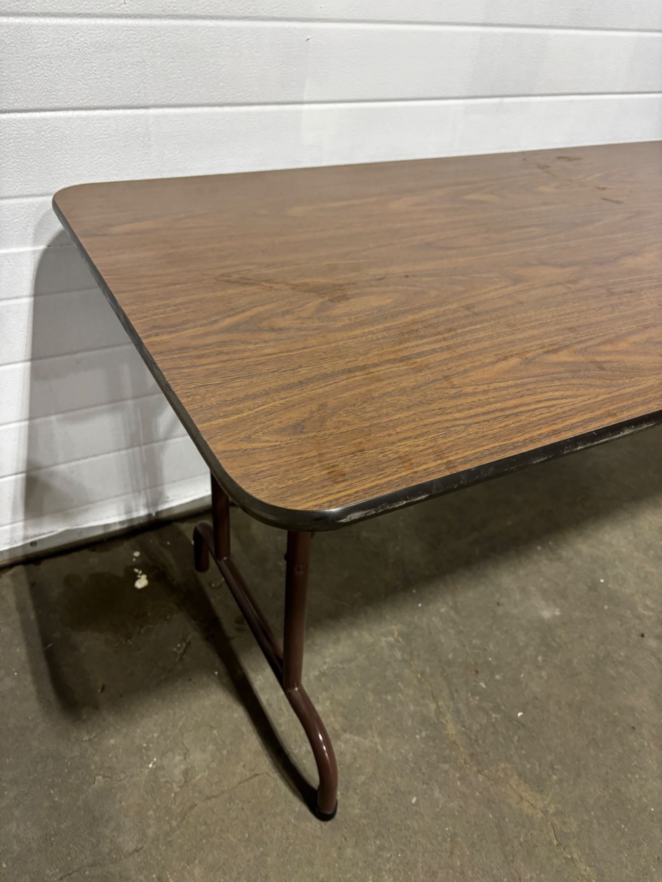 Tabletop has scratches, 6'L x 30"W x 29"H, has a large chip on the bottom side