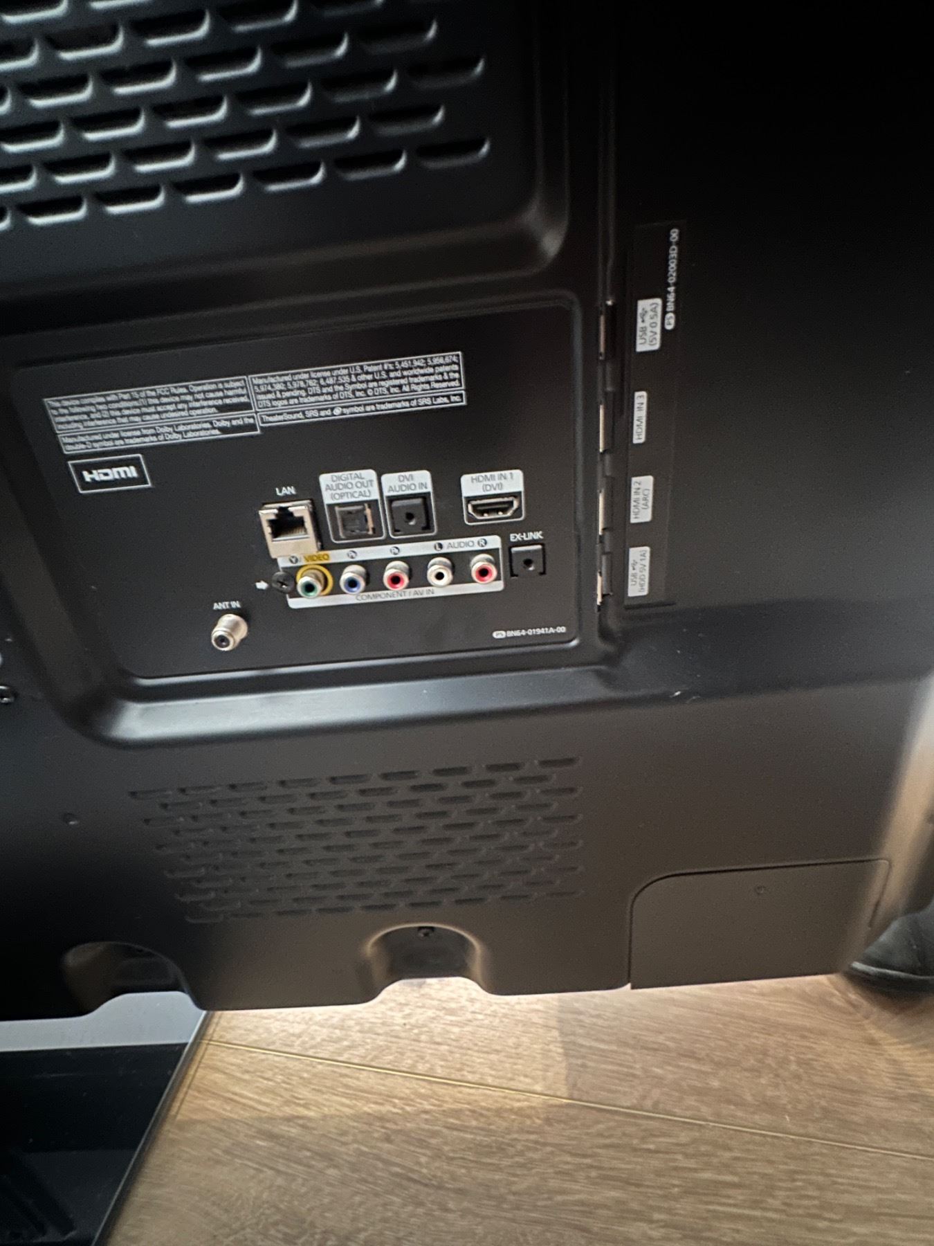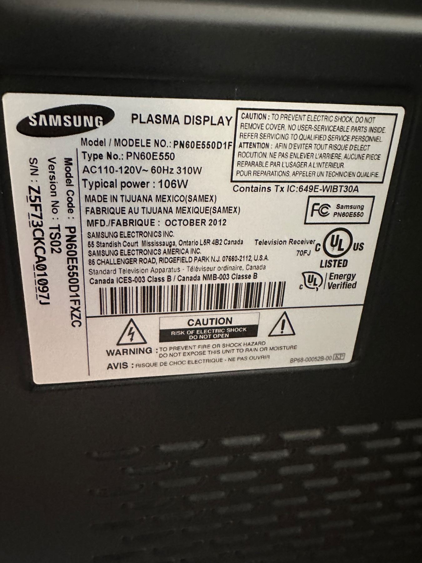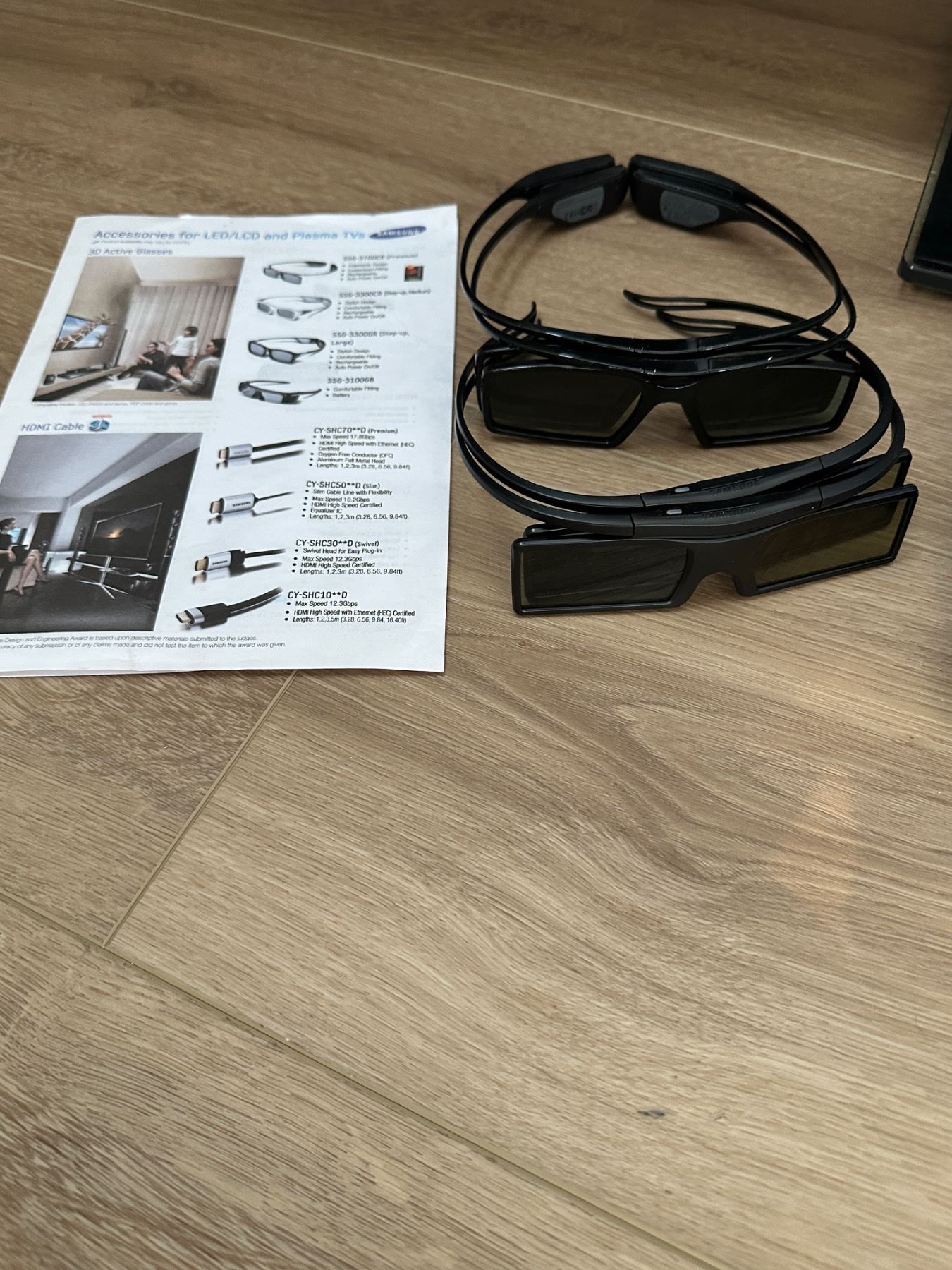Both turn on - Samsung Smart TV includes 3D glasses, user manual, remote (needs batteries). Blu-ray Disc Player includes remote (needs batteries)