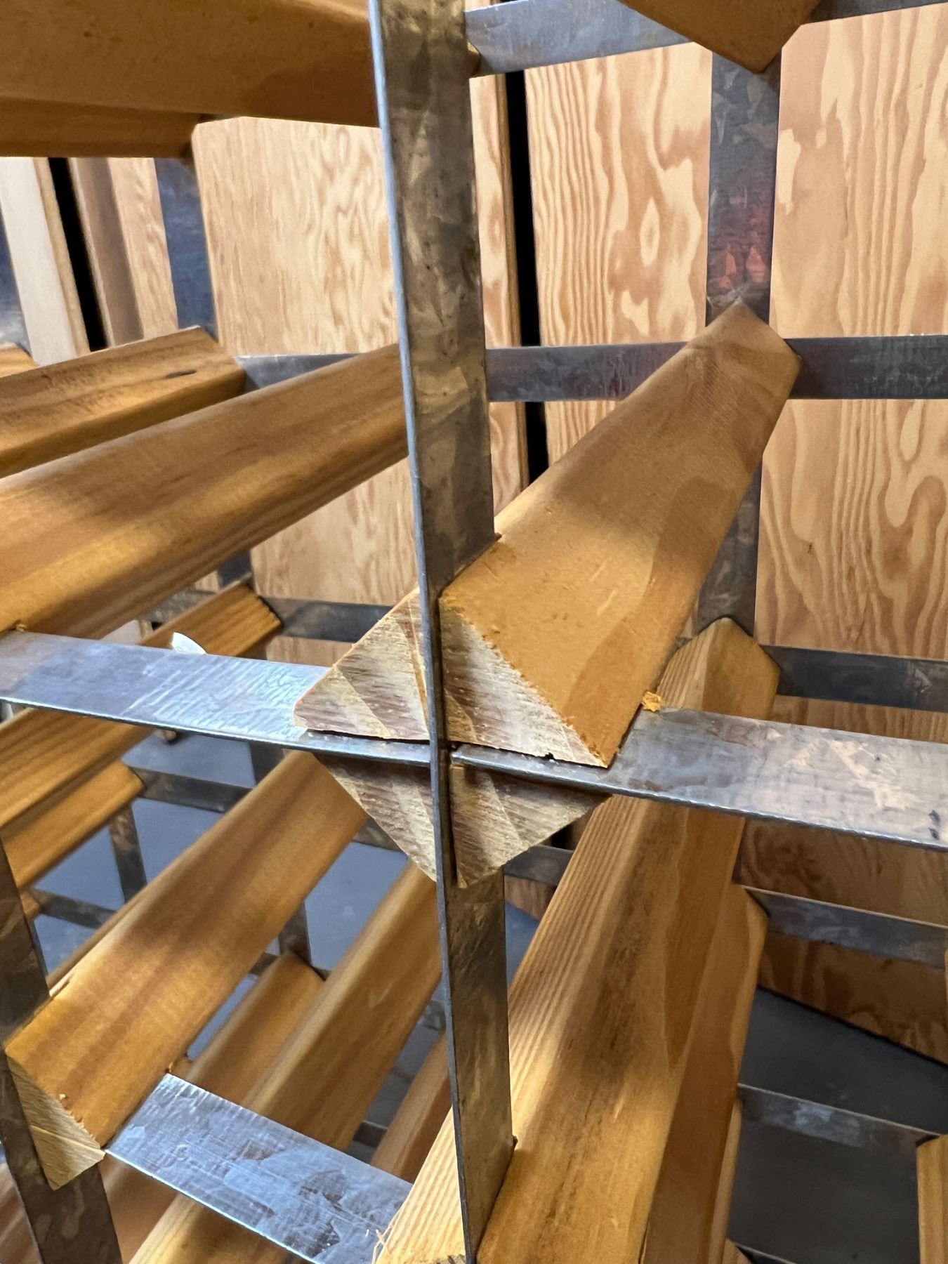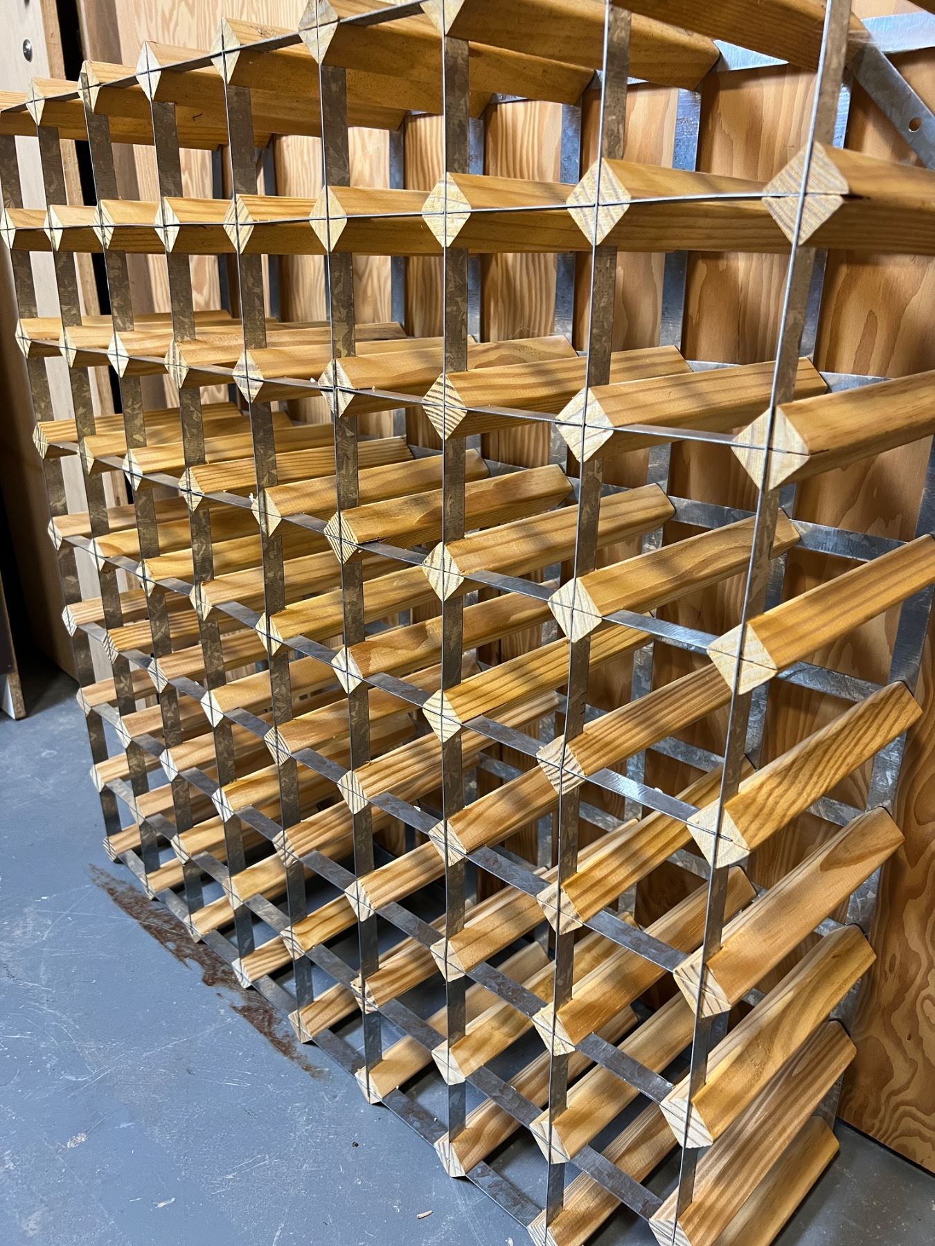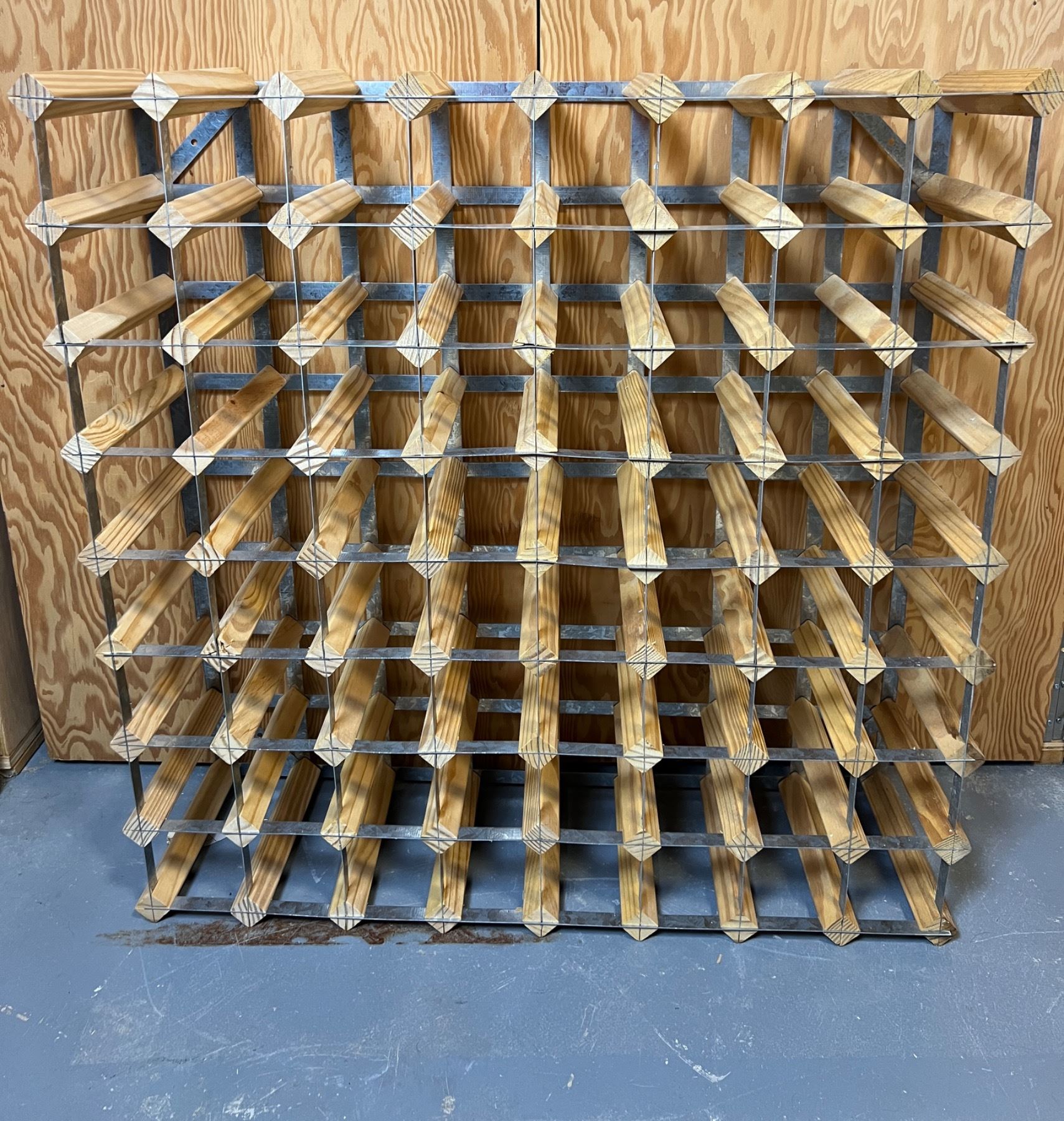 Measures 32" by 32" and 9"D. Some of the metal is pushing out of the wood again and needs to be tapped back into place.