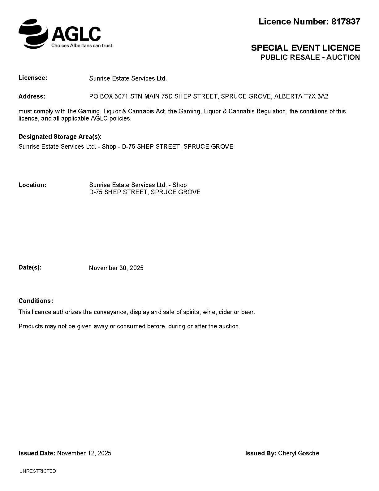 Auction Date:2025 Nov 30 @ 11:00 (UTC-07:00 : PDT/MST)