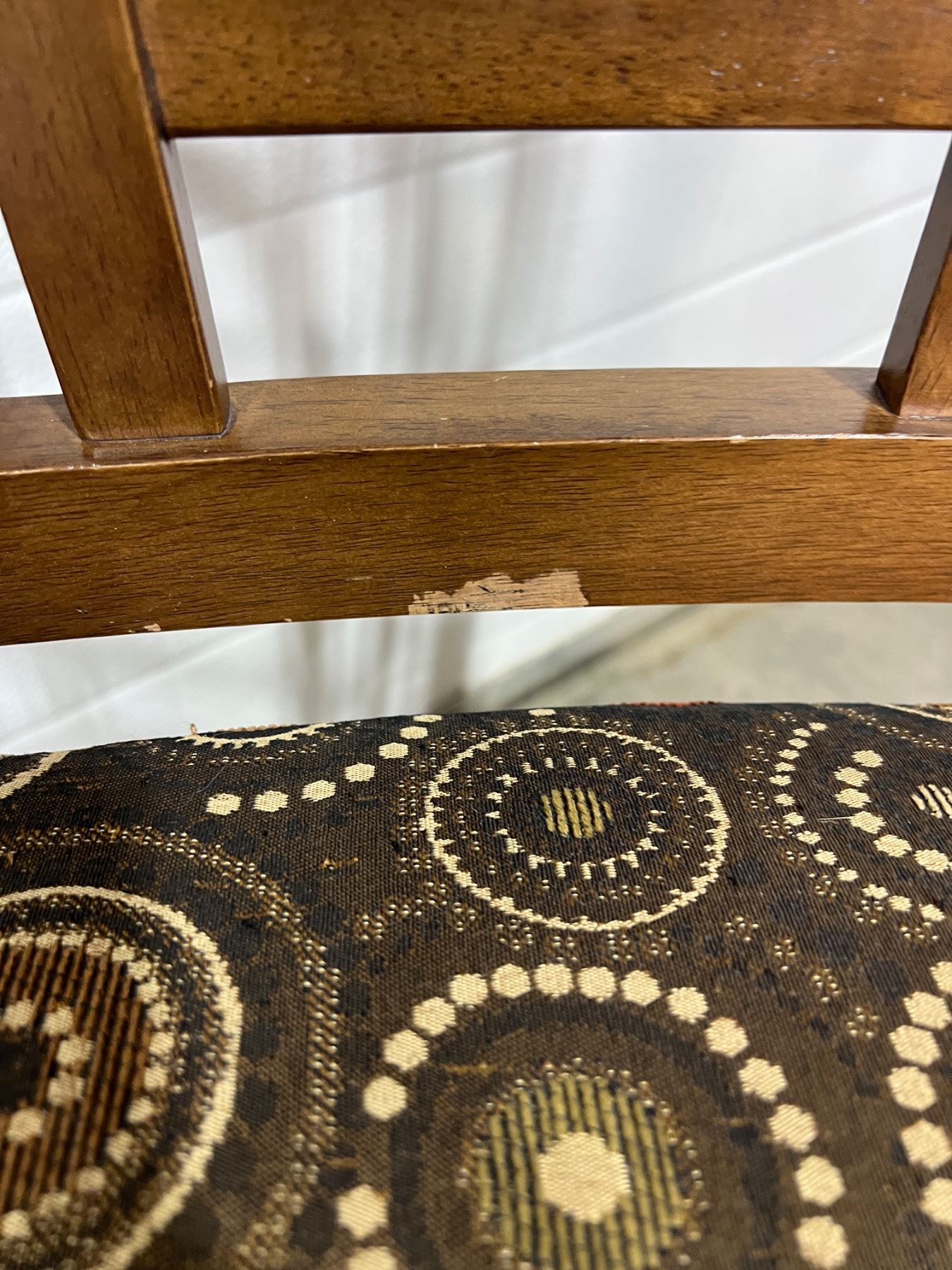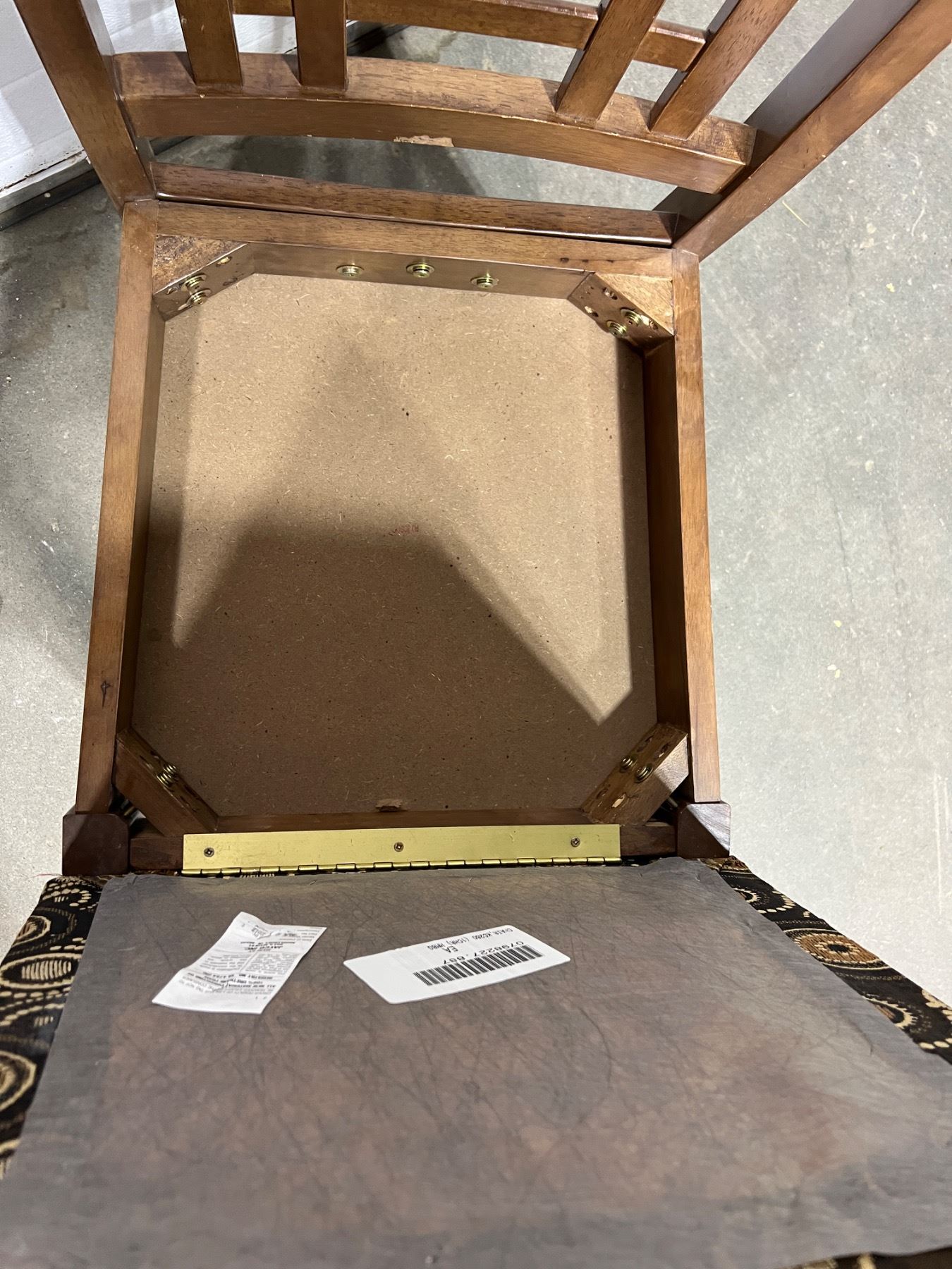 Has some wear spots on the wood frame, 20"L x 19"W x 40"H