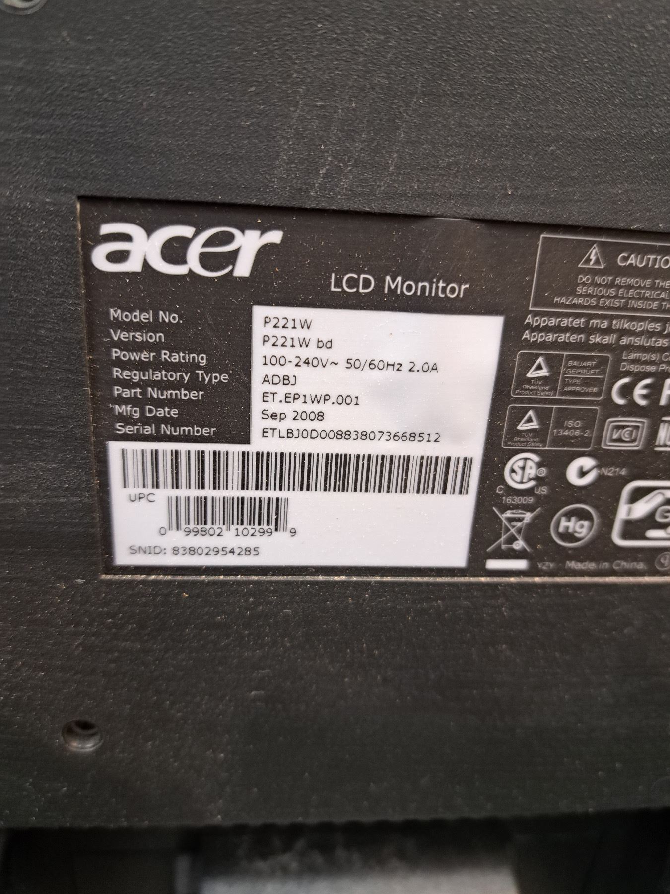 Turns on, Model No. P221W, 22"
