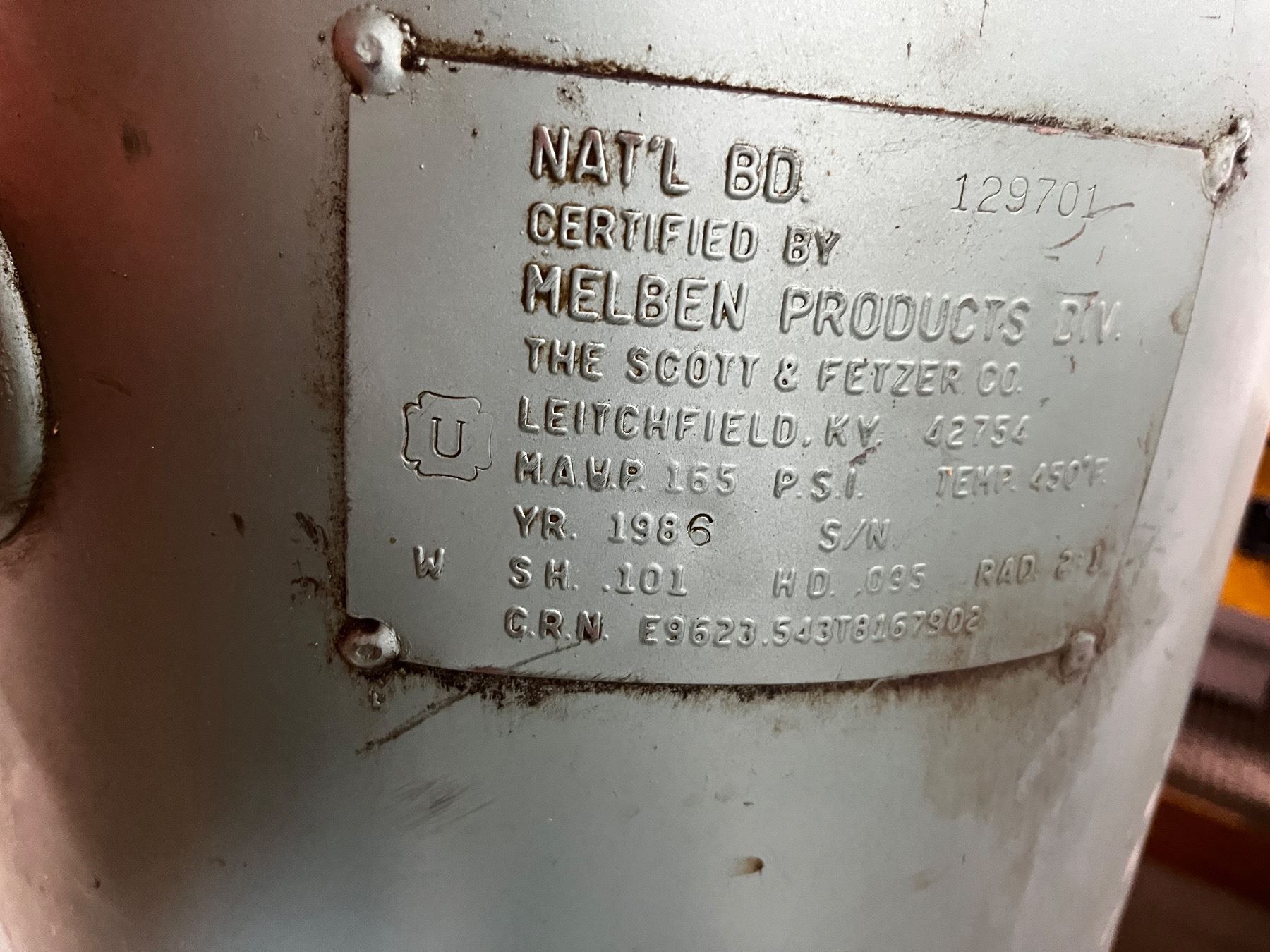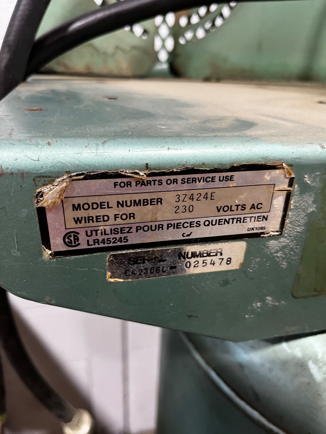 Certified by Melben Products, Model No. 3Z424E, 230V, Has some damage, not tested, 25"L x 25"W x 66"H