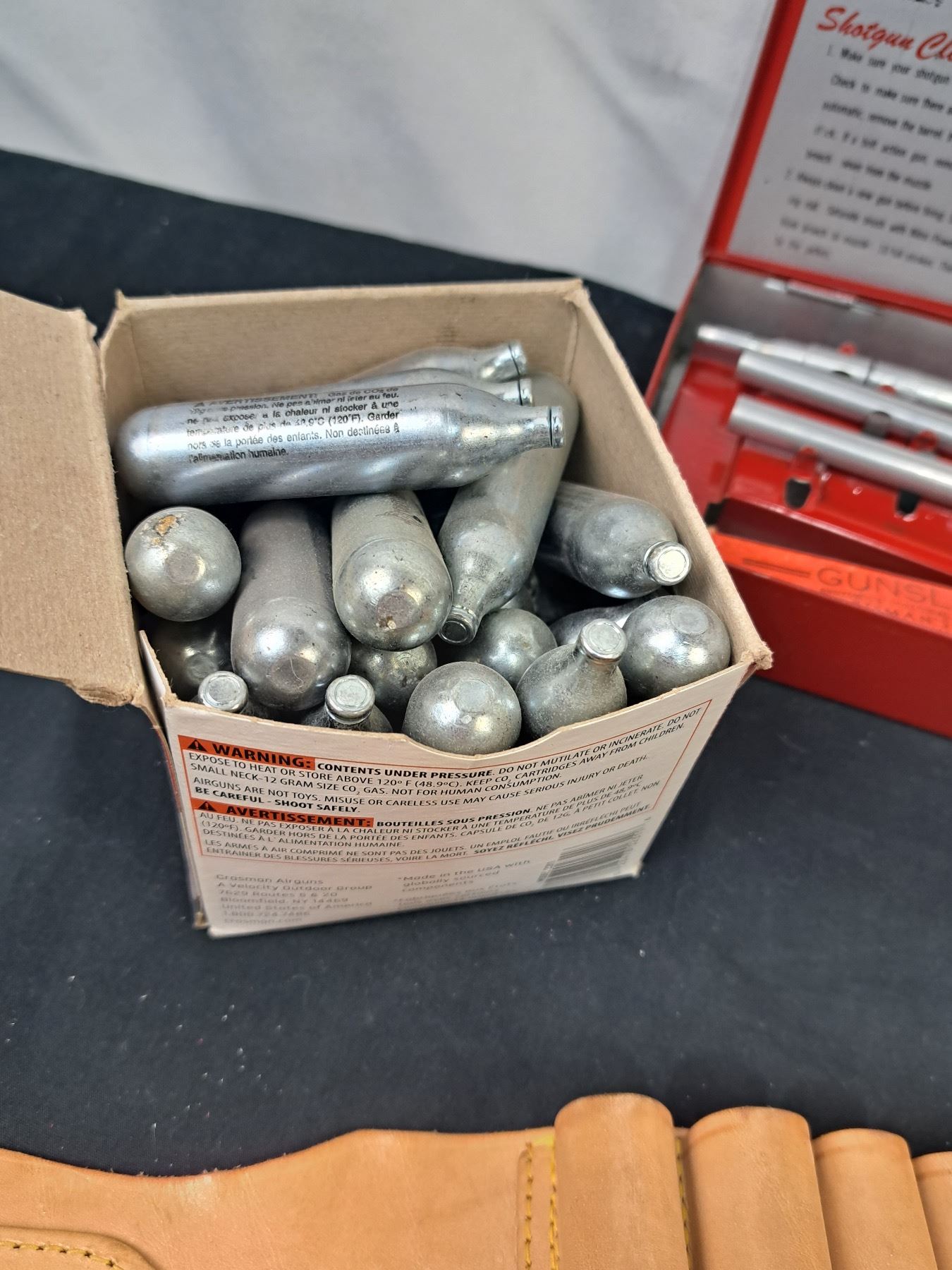 Includes, Corpsman Powerless C02 12g cartridges, Outers Shotgun Cleaning Kit, Crosman Model 38C, Mako Model CM9B