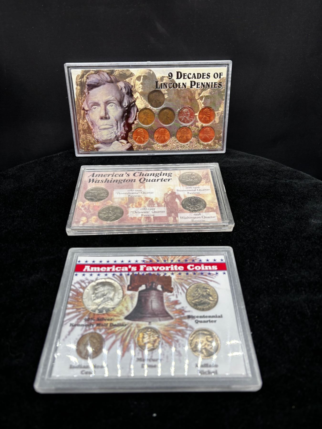 Includes, 9 Decades of Lincoln Pennies, Americas Changing Washington Quarter, Americas Favourite Coins