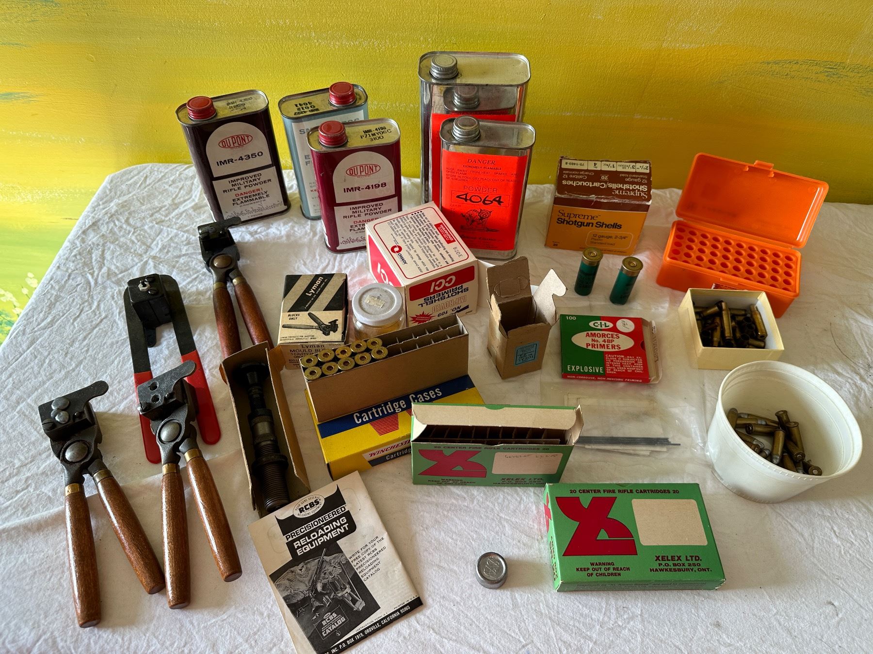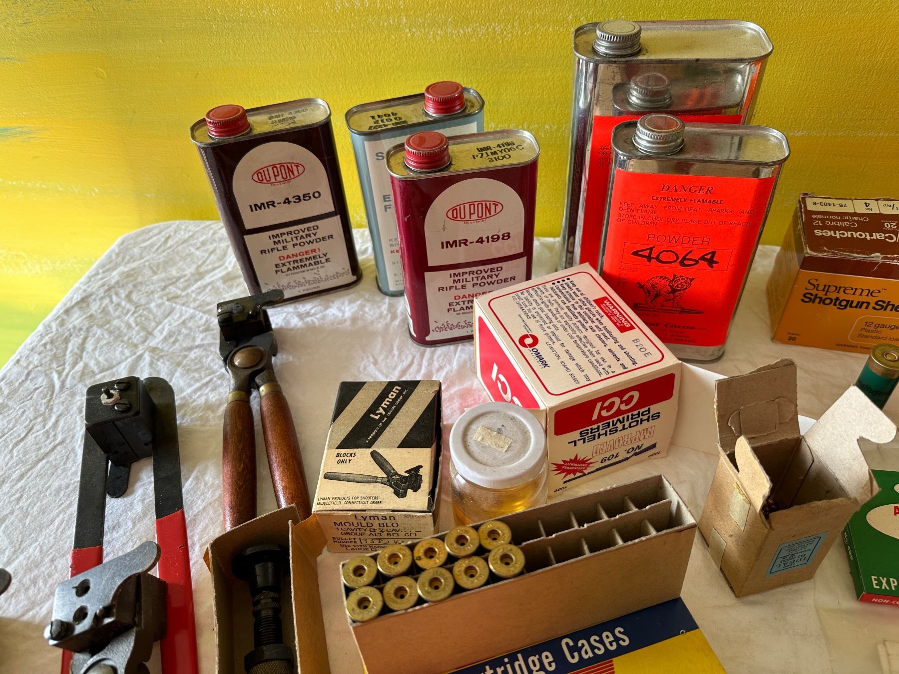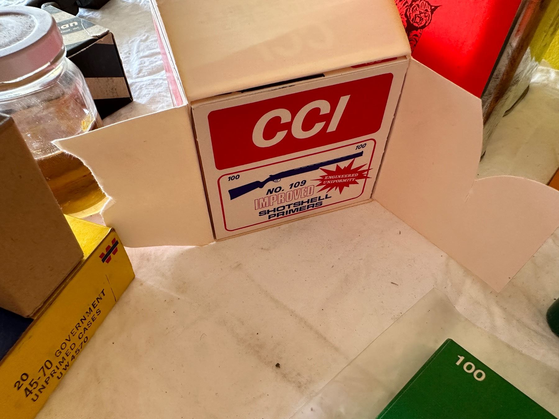 Including full box of No. 109 Shotshell Primers, powder and reloading equipment