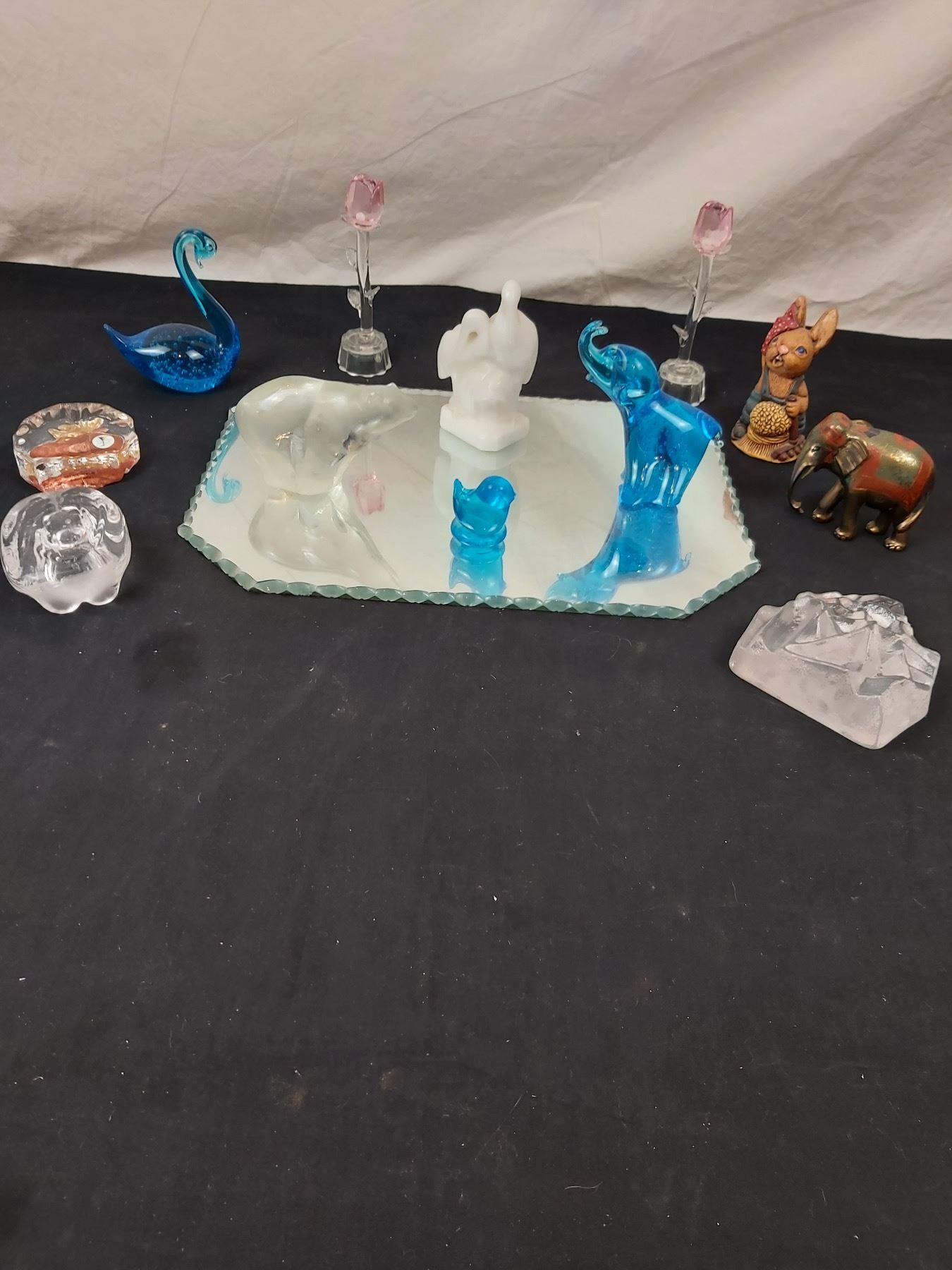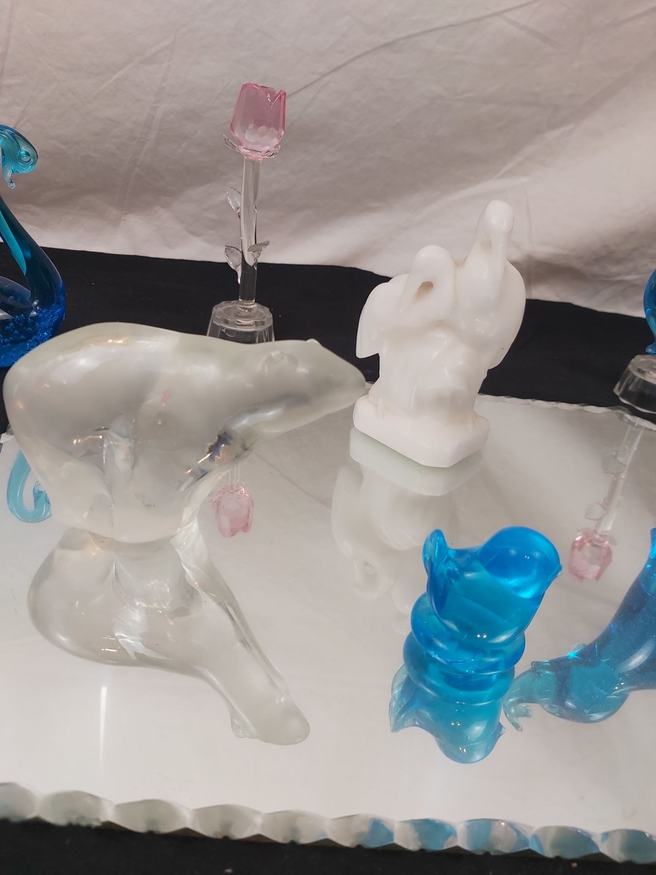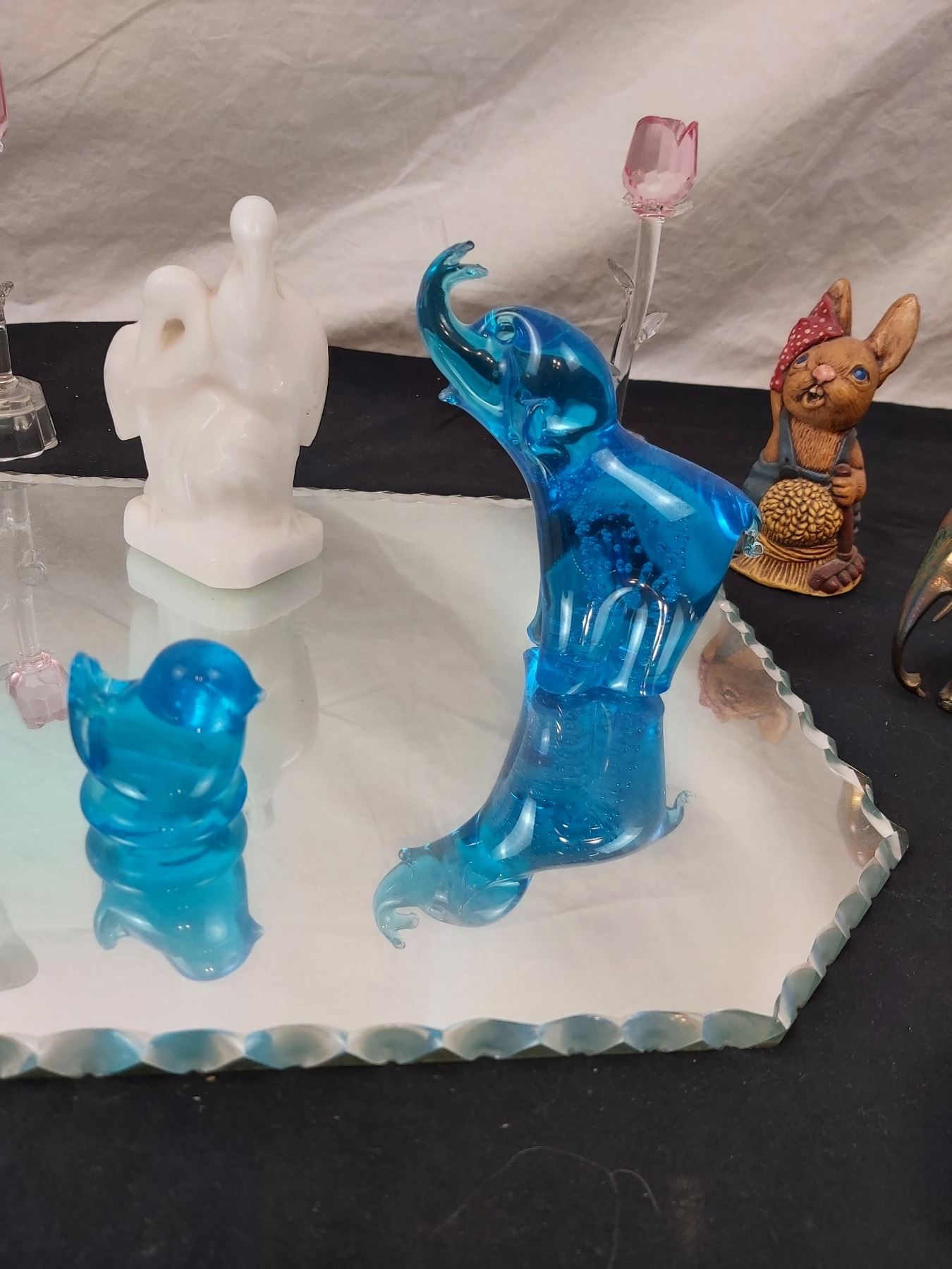 Includes, Sea Glas moose, Brass elephant, 2 roses, mirror tray (14x10")