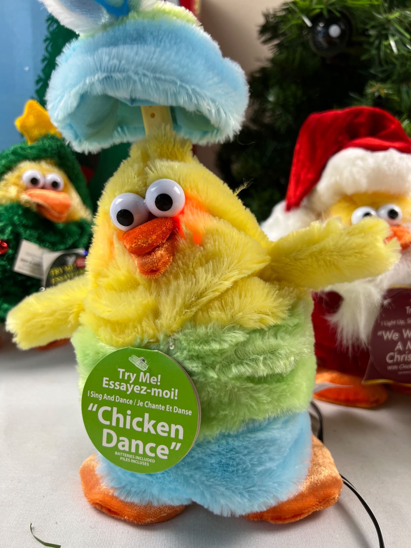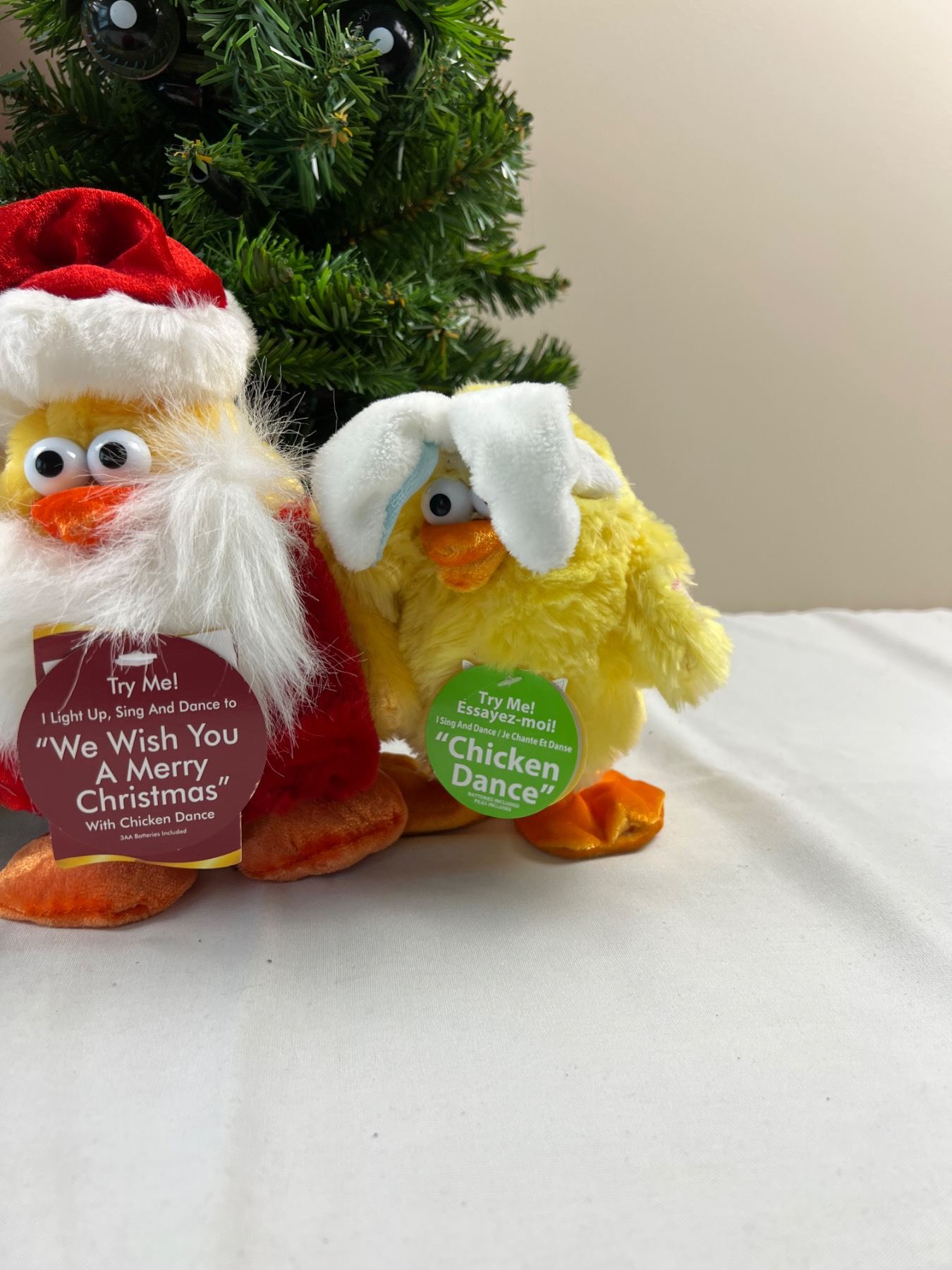 Two chickens need new batteries. Tree stands