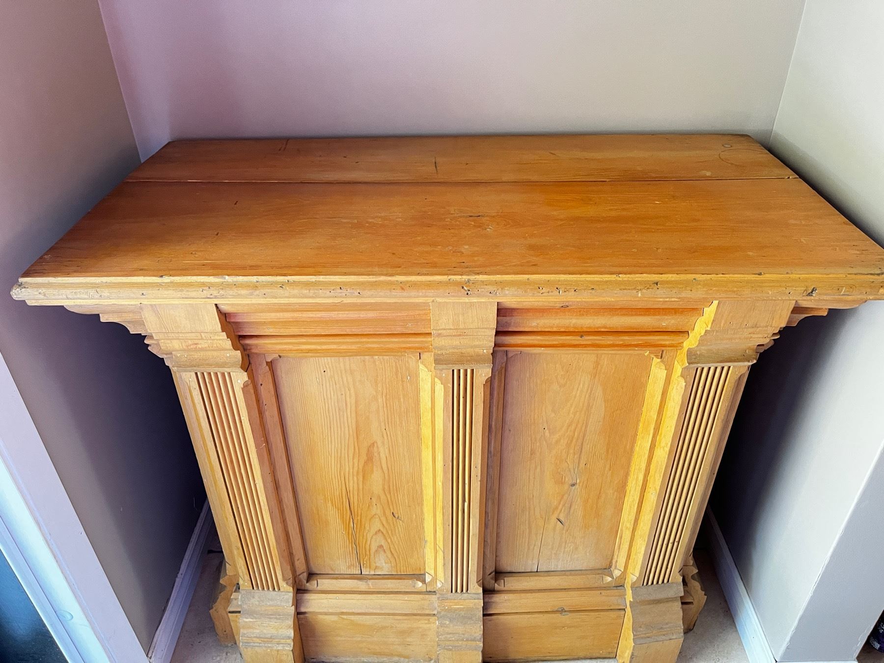 Art deco style - no drawers - open back - moisture ring mark on top - 38" long x 19.5" wide x 34" tall