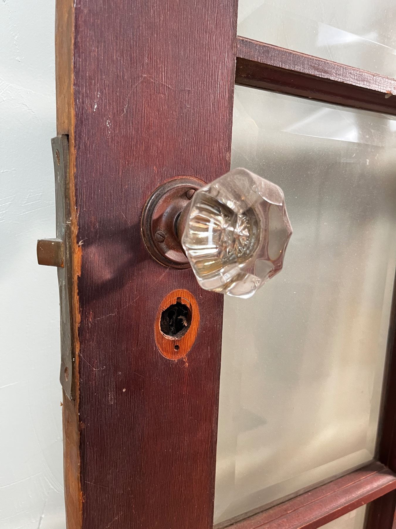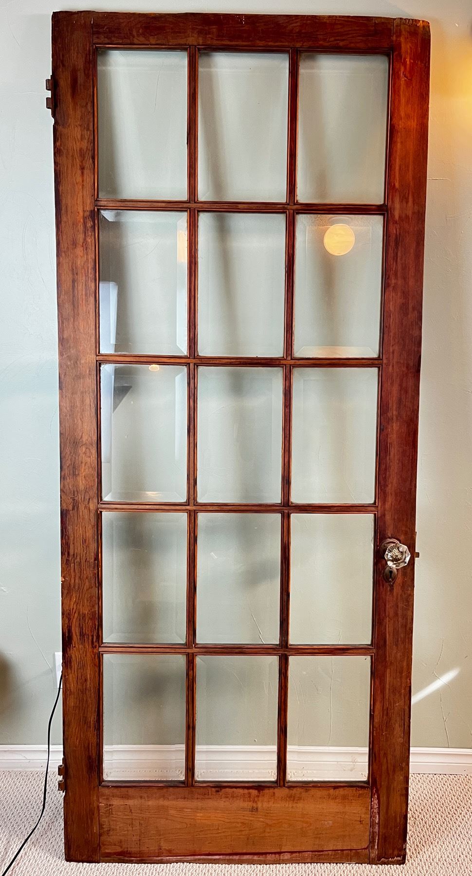 Douglas Fir - 15 Beveled glass panes - cut glass door knob - 80" tall x 33 1/2" long x 1 1/2" deep