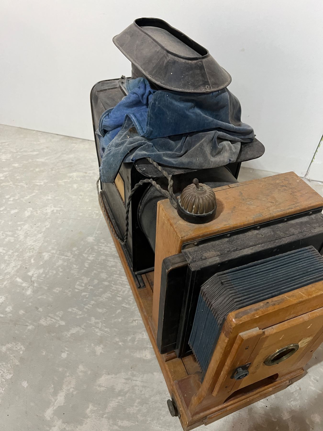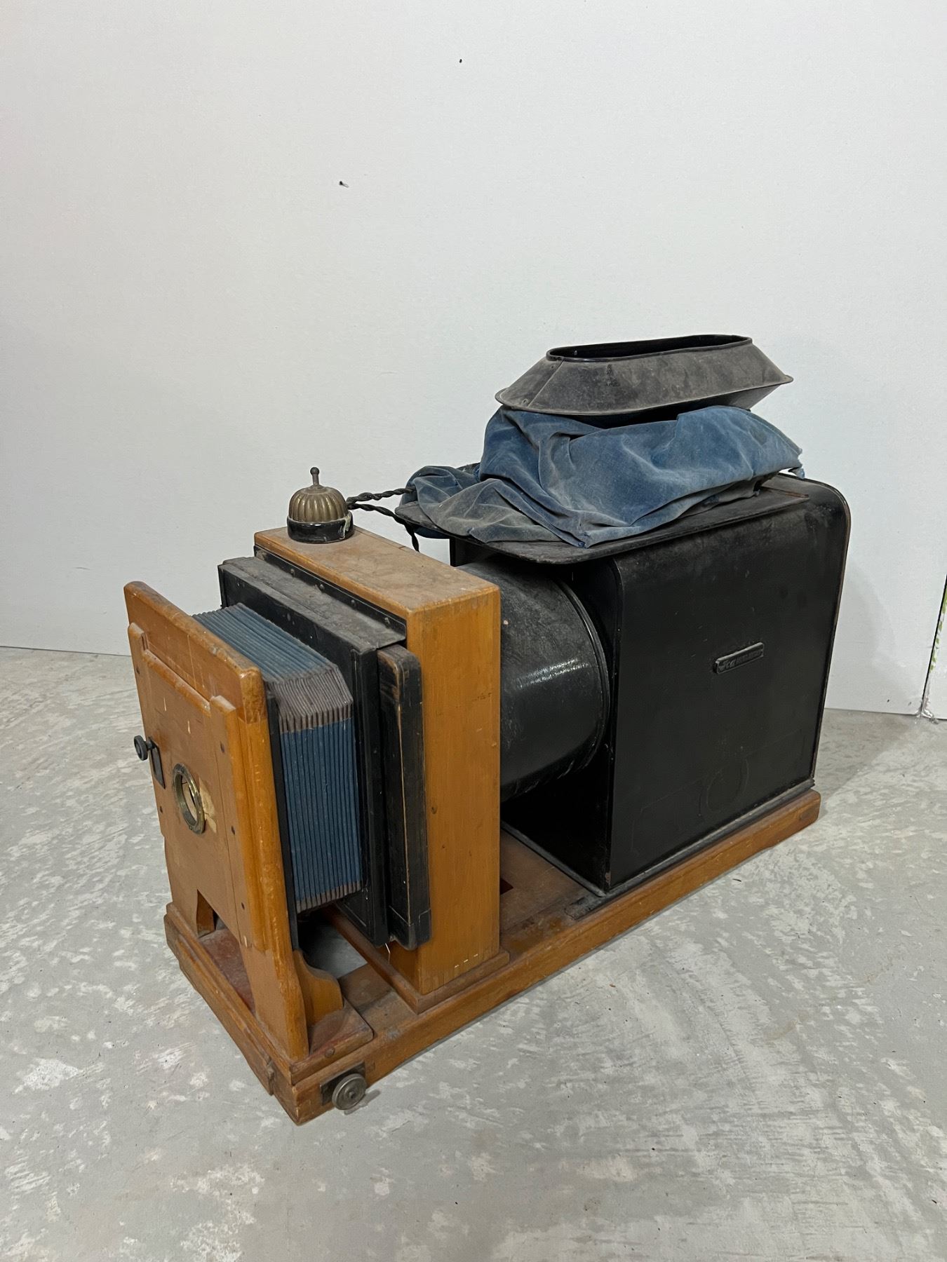 Likely late 19th early 20th century. Unknown level of functionality, age has begun to show. Fabric shroud has started to fall apart. Measure 26"L, 10"W &20"H