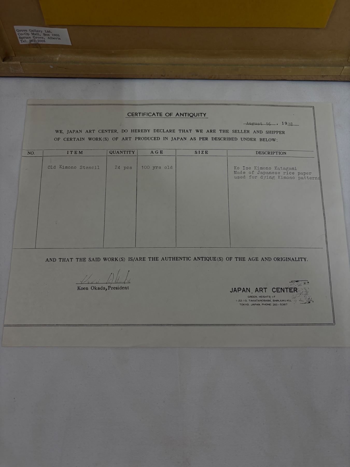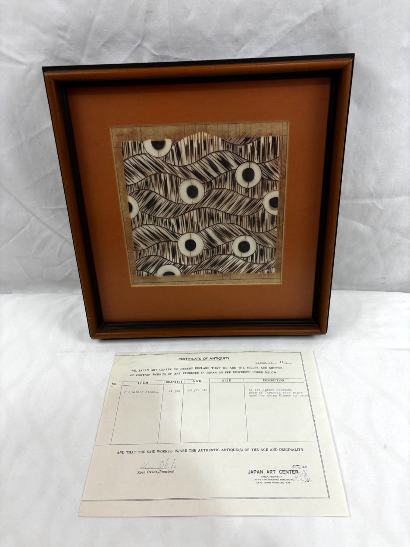 Includes certificate of Antiquity and information booklet. Approximately 13.5" by 14".