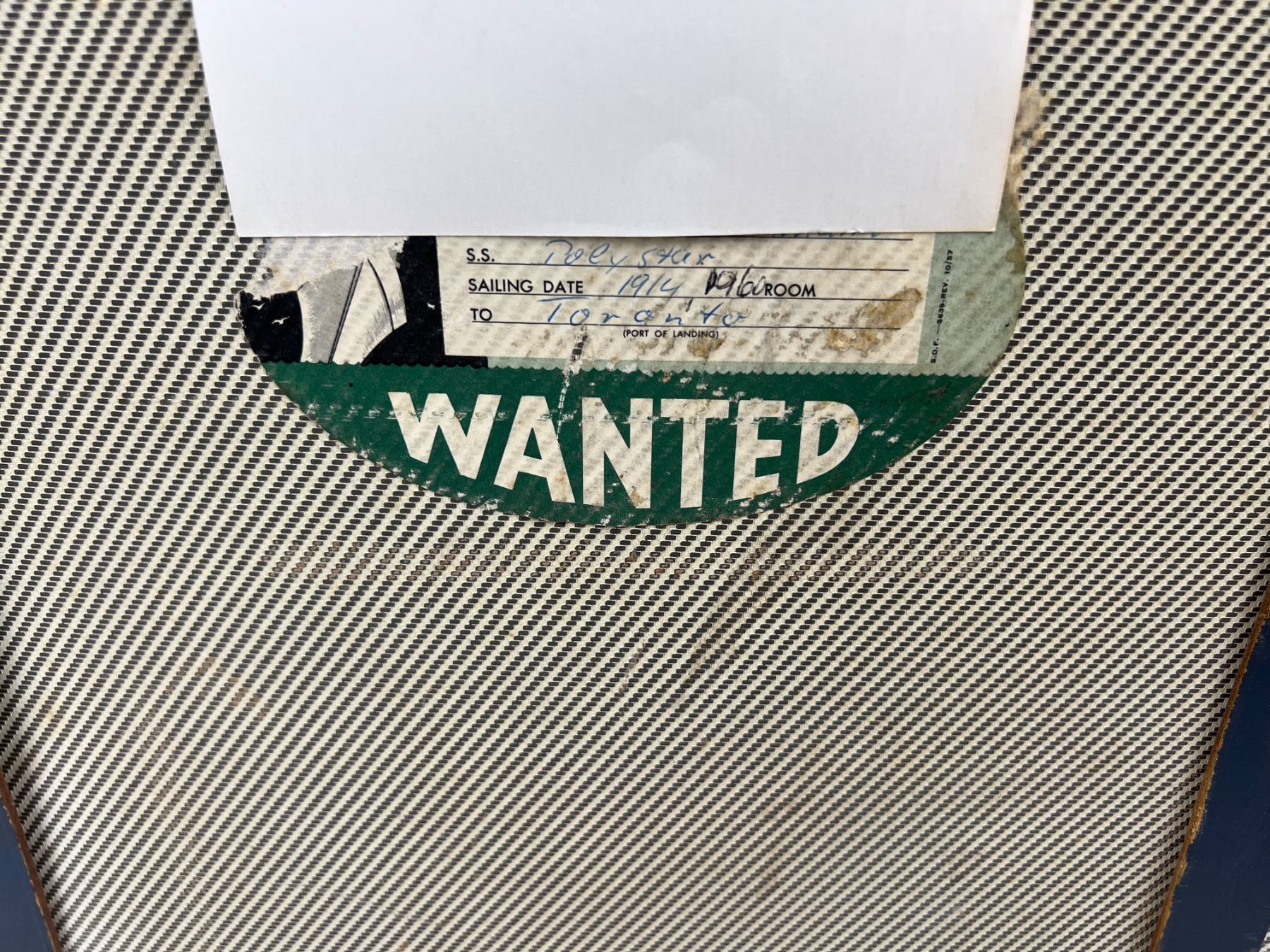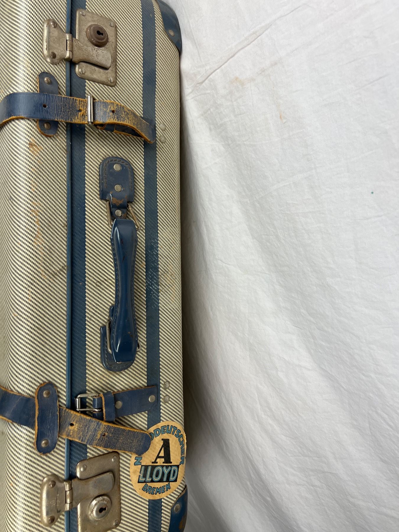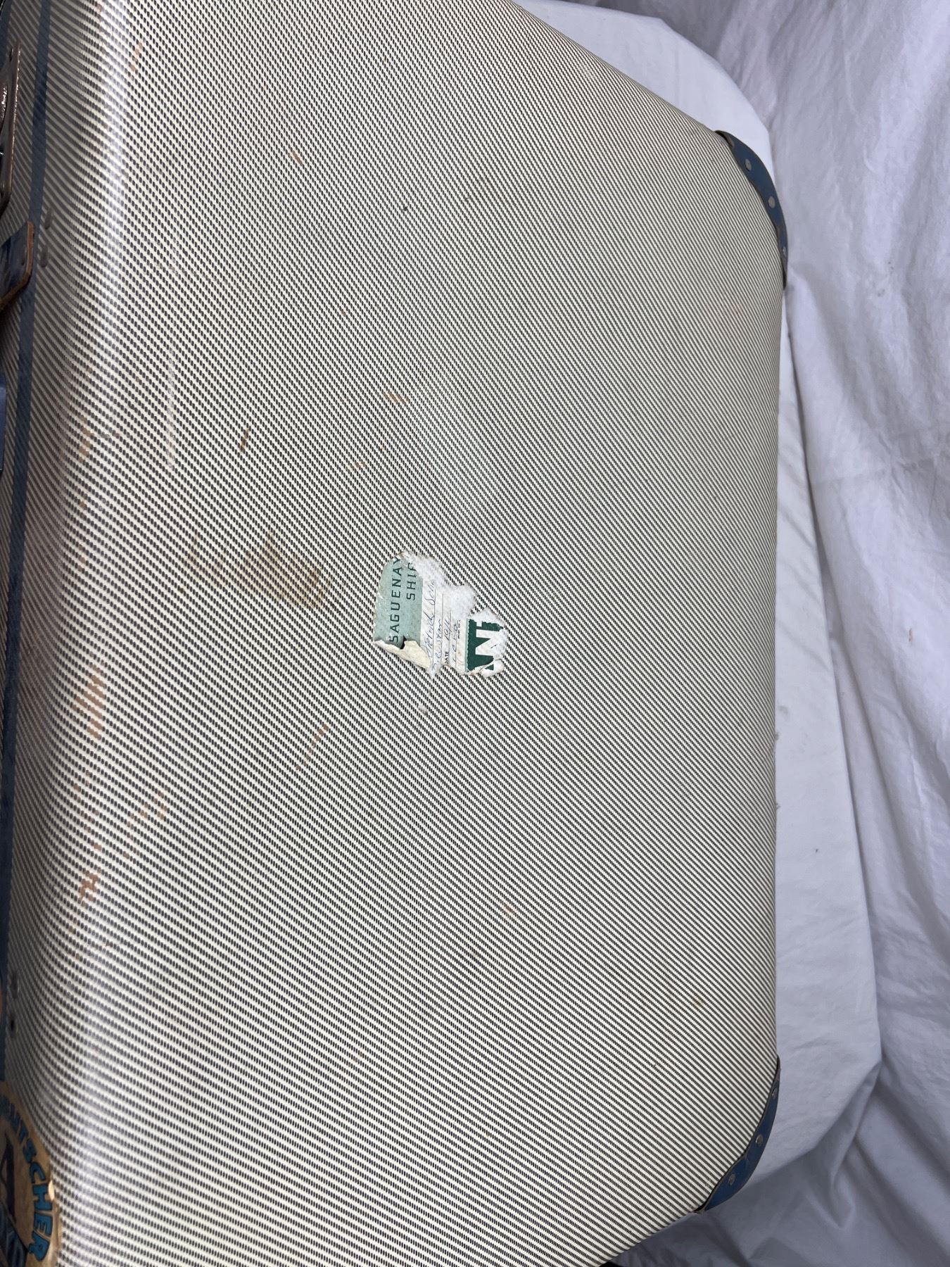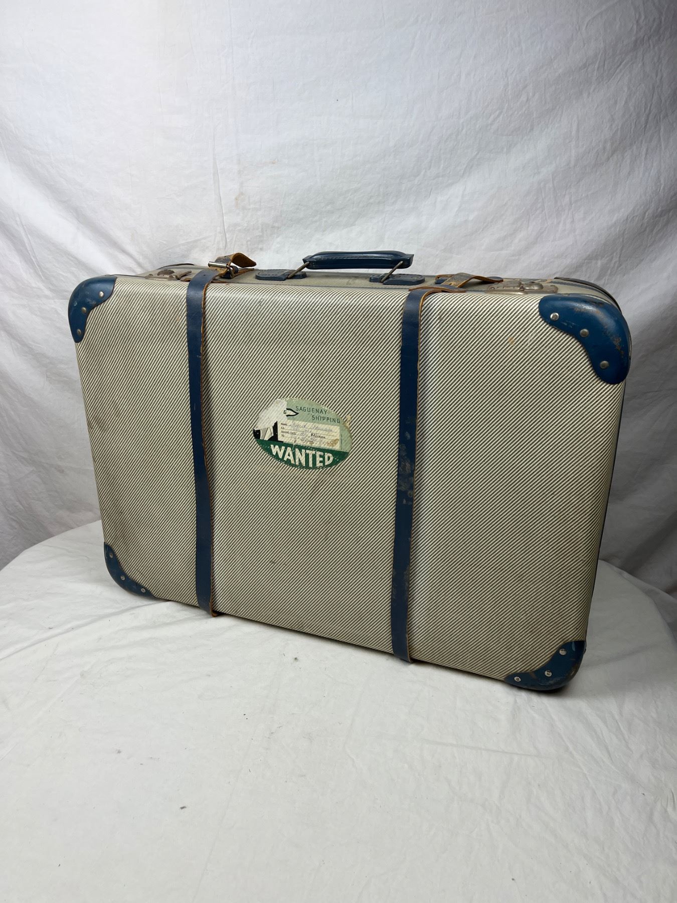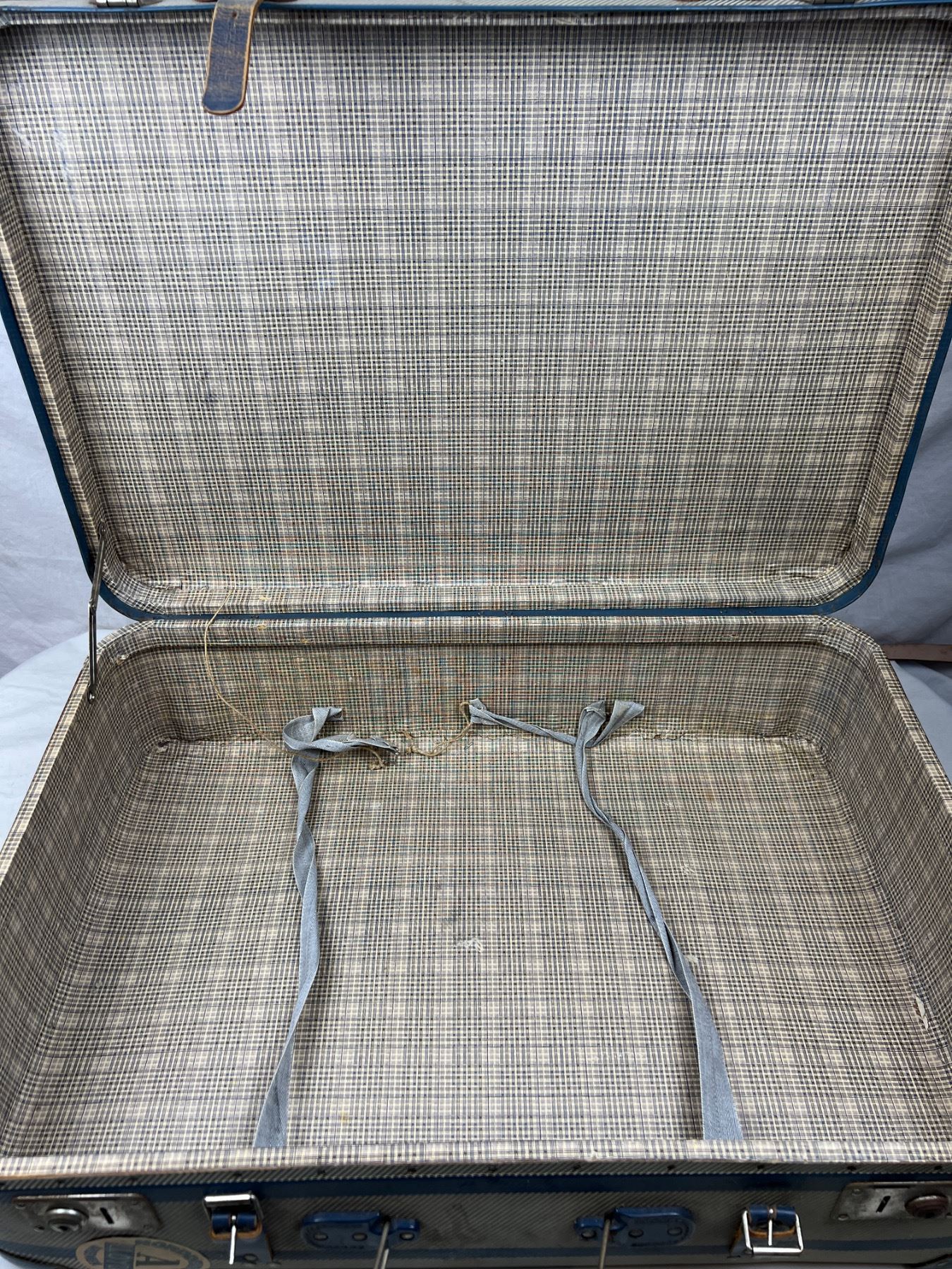 Has wear to the outer shell and leather buckles, no key, 28"L x 19"H x 8"W