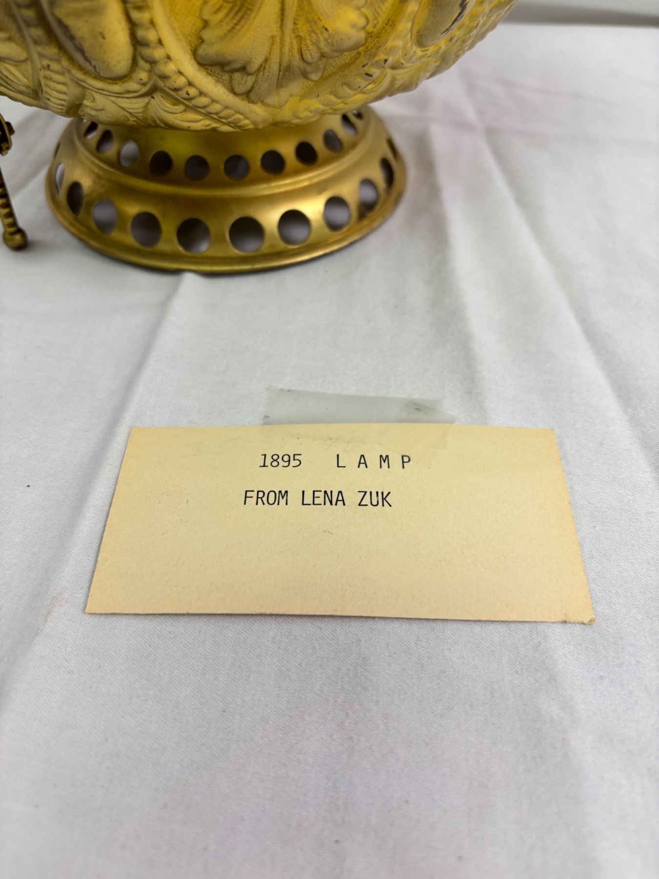 Missing glass shade, approximately 14.5"W x 34.5"H
