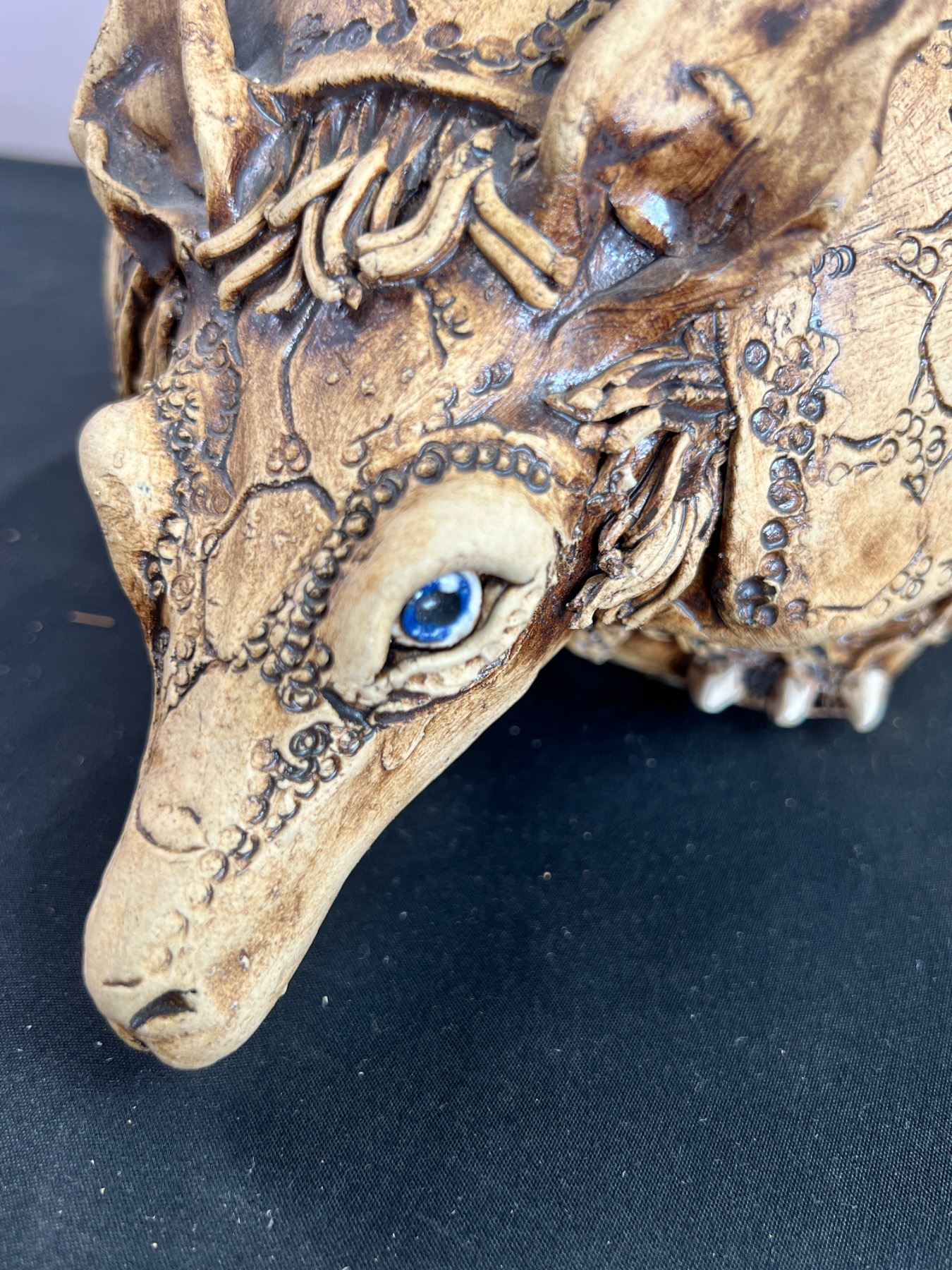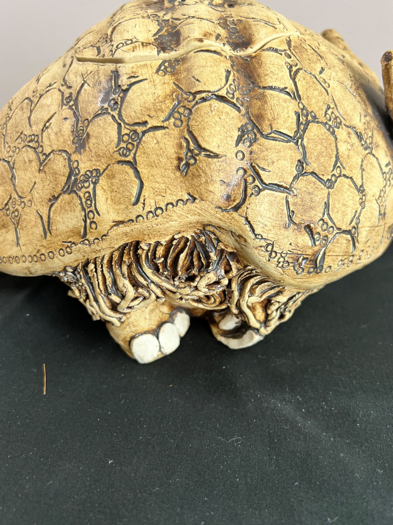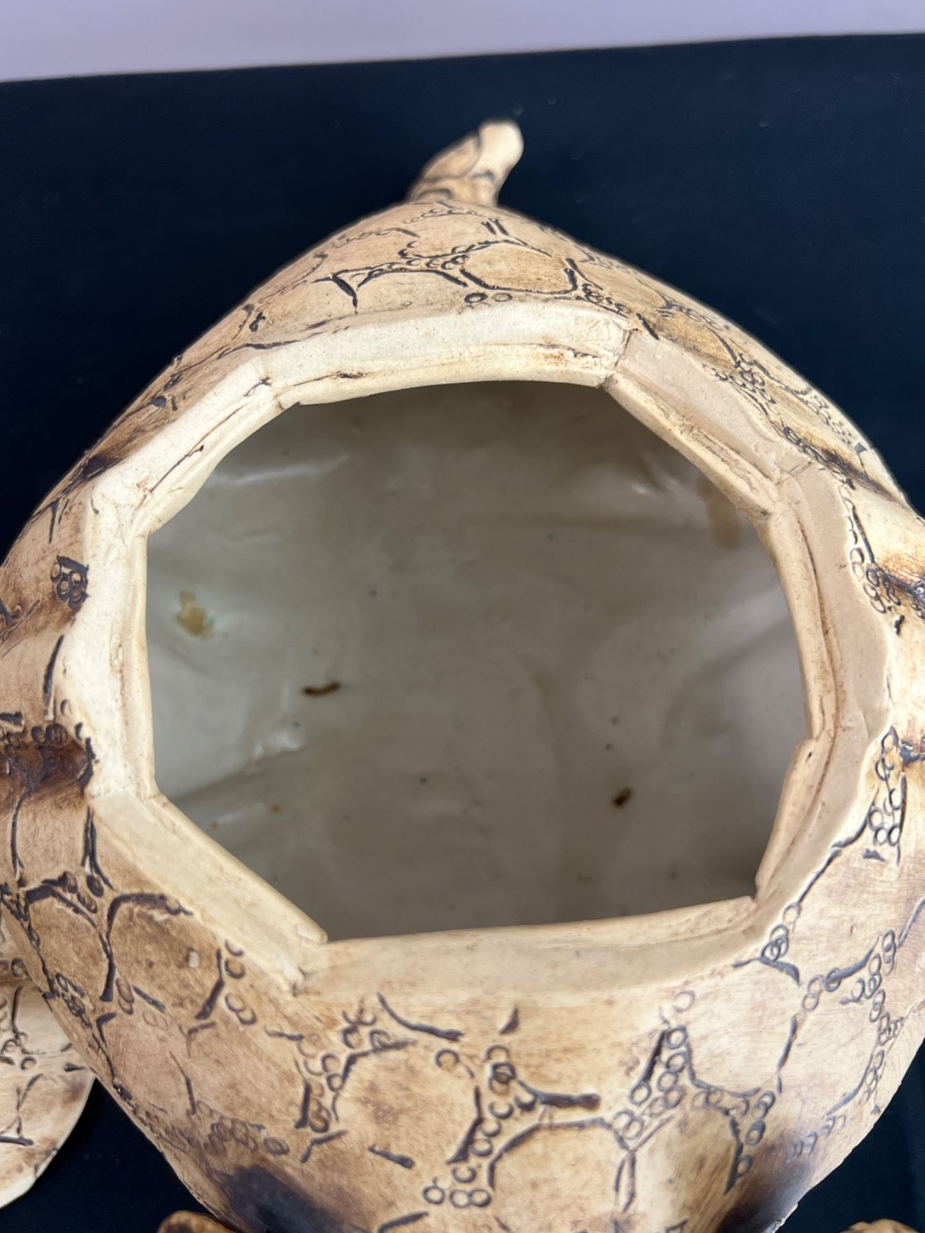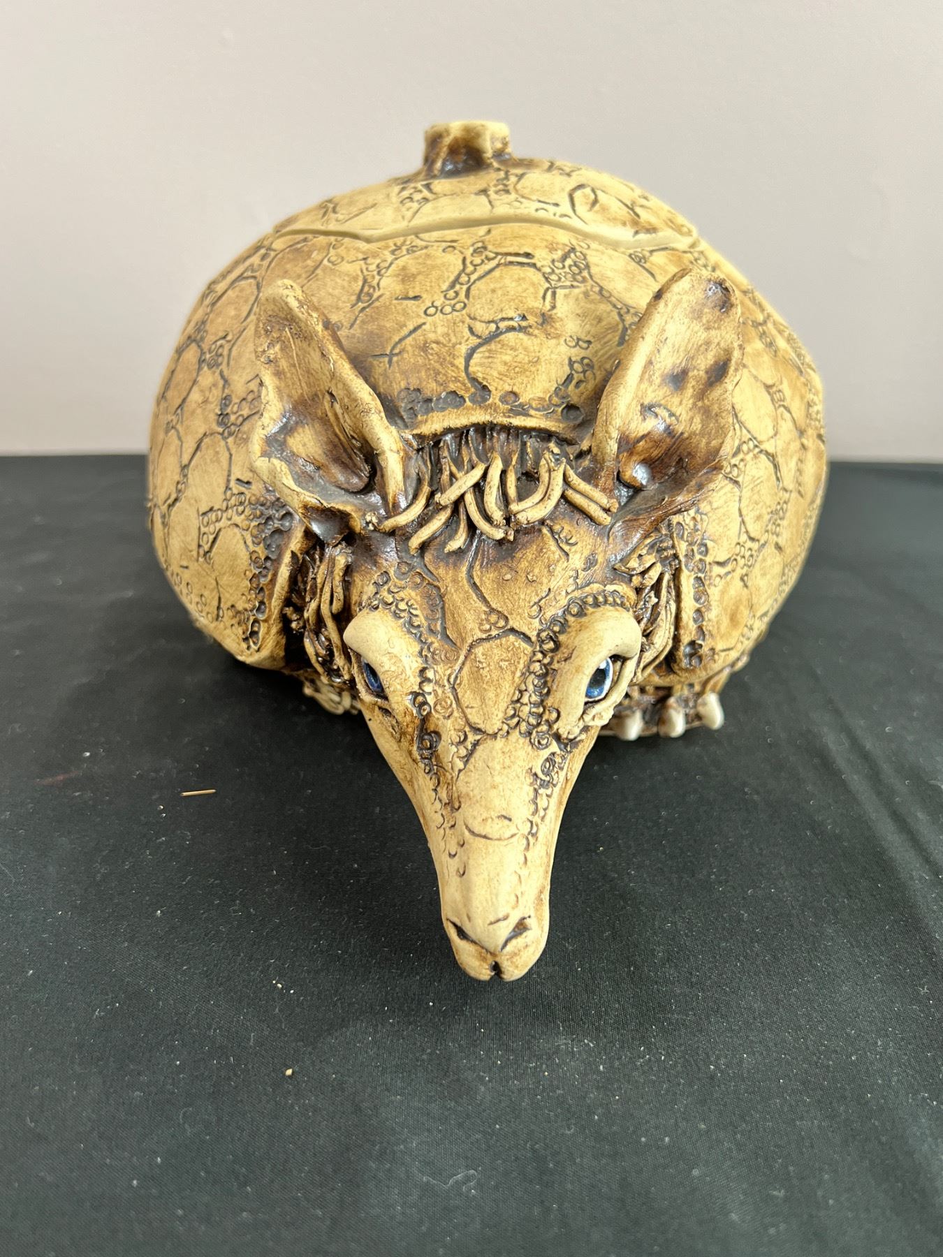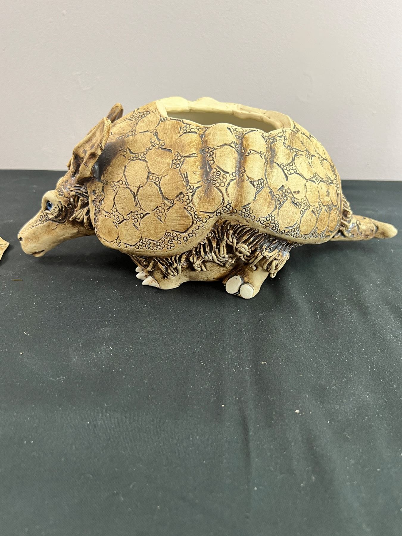 Artist of sculpture is on bottom of jar. 8.5" wide by 13" long by 6.5" tall.