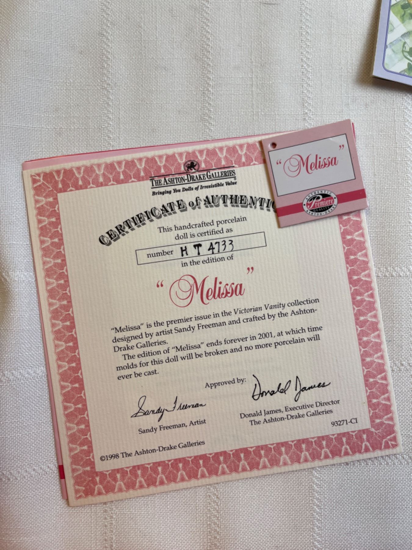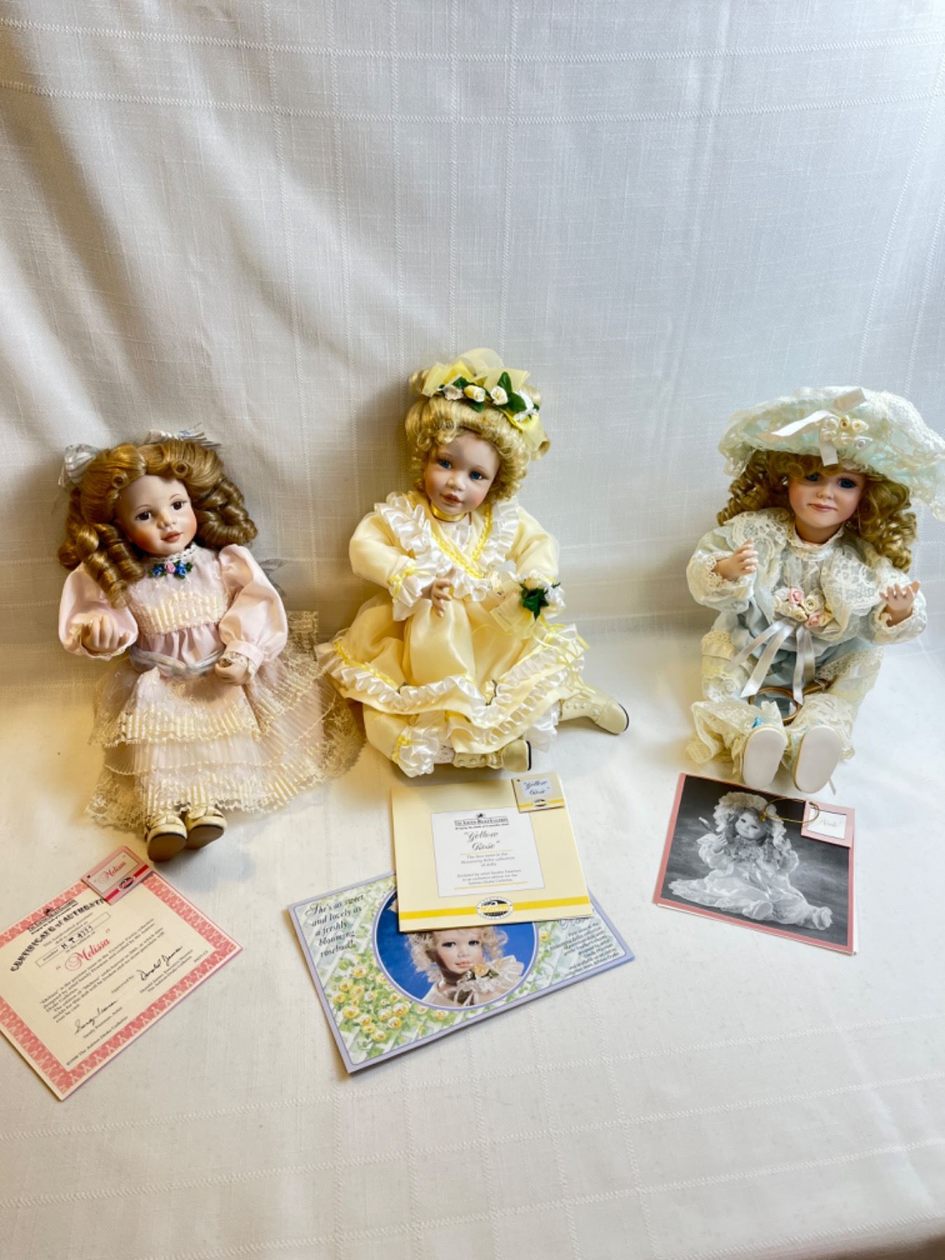 Includes "Melissa", "Nicole", "Yellow Rose" and 3 certificates - Tallest is 12" tall sitting