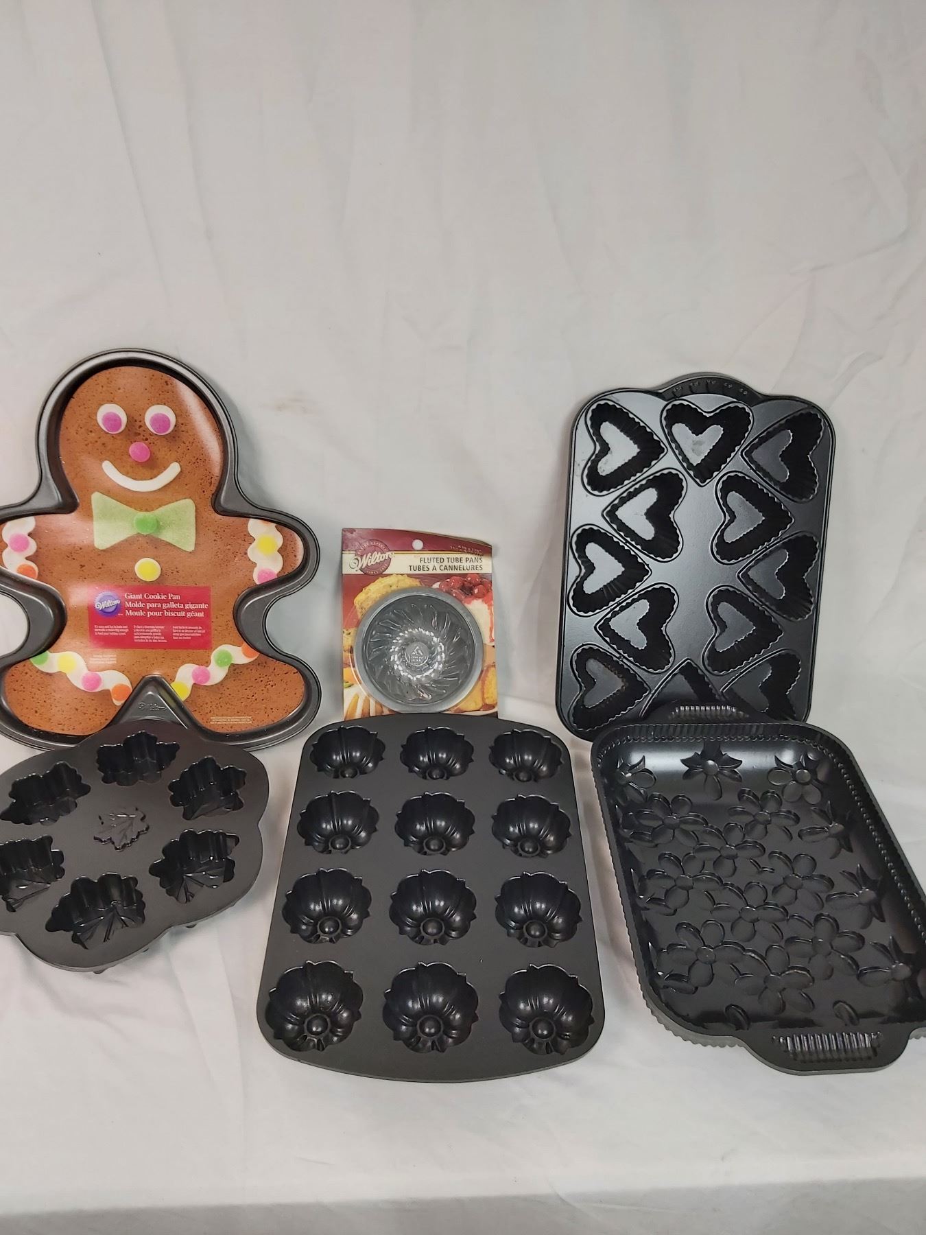 Includes 4 Nordic Ware pans and 2 Wilton pans