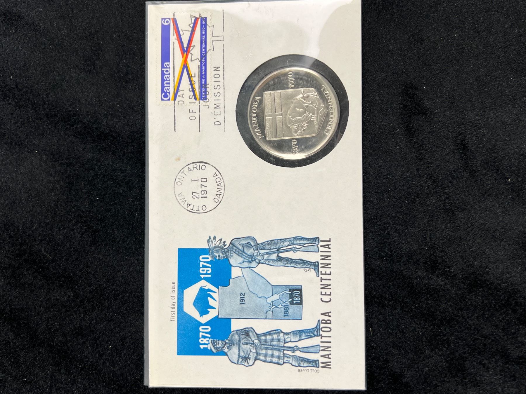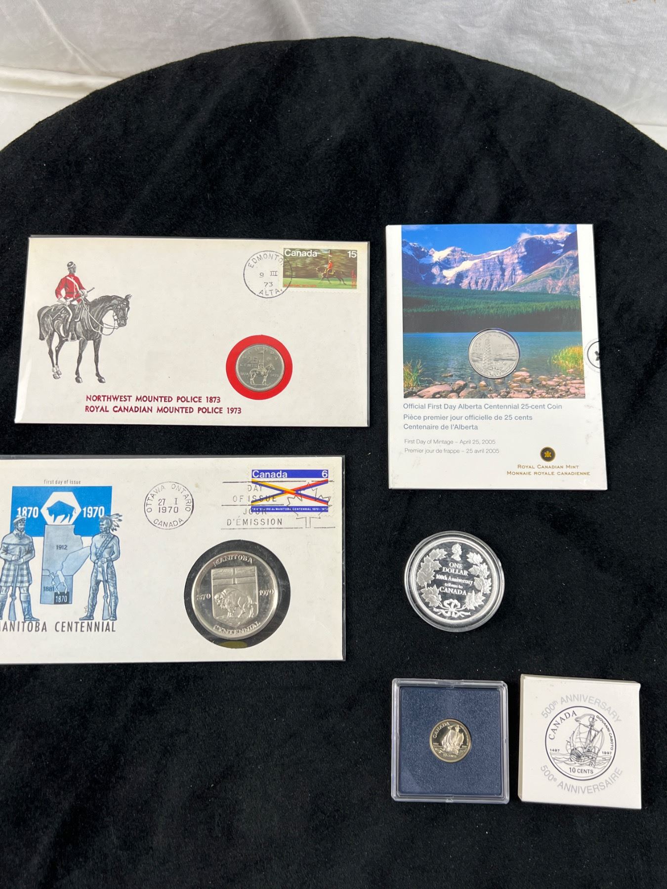 Includes Northwest Mounted Police Centennial Quarter, Alberta Centennial Quarter, Manitoba Centennial Token, 100th Anniversary Tribute to Canada Dollar Coin & 500th Anniversary 92.5% Silver Dime