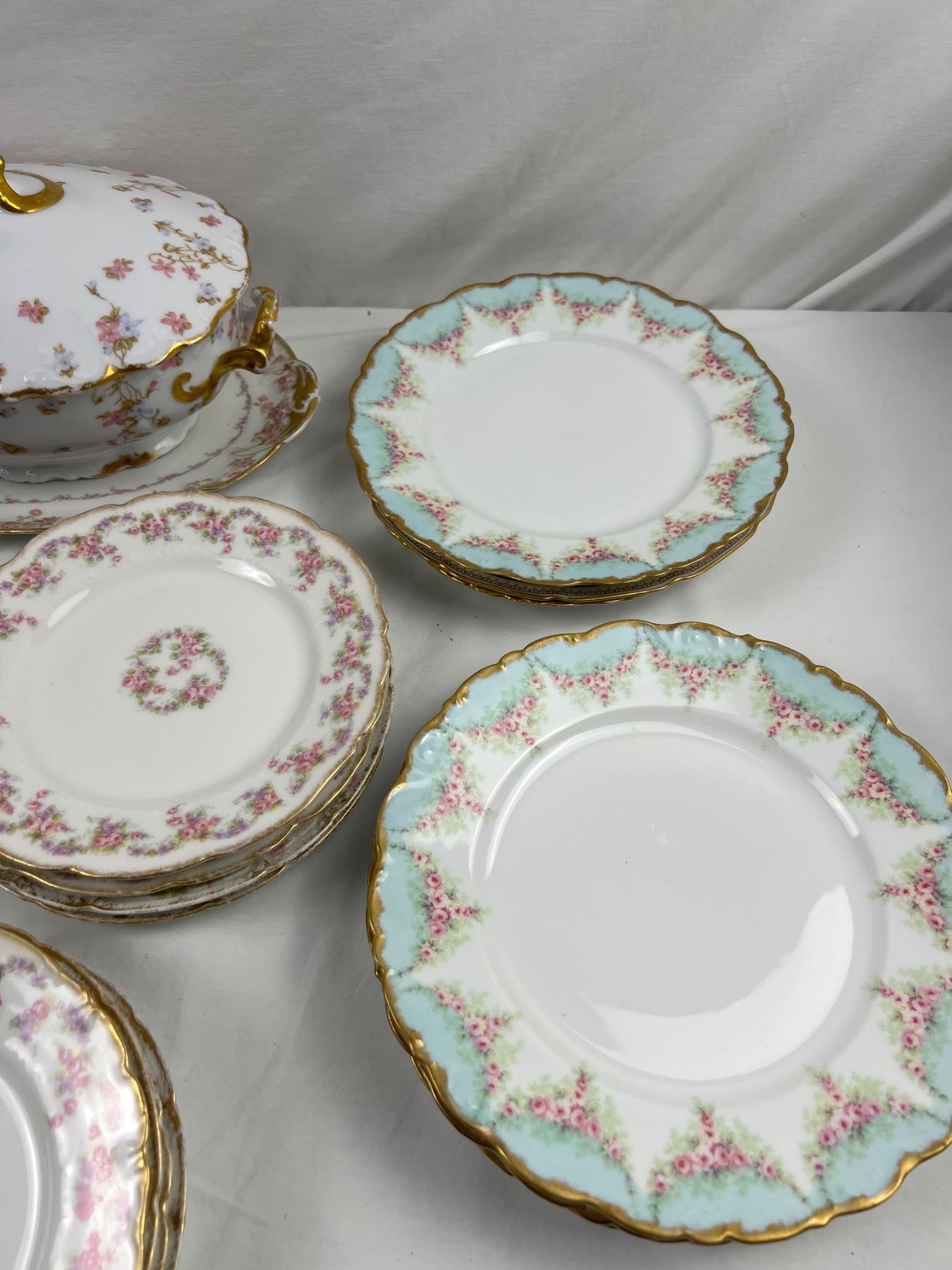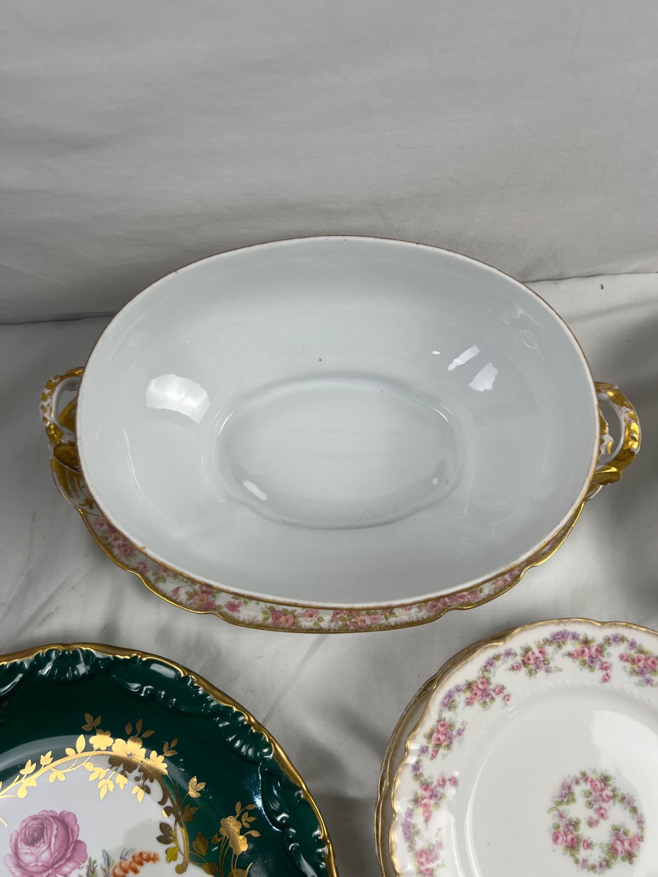 Various Limoges, France and minimal damage. Paint wear to handle of casserole dish.