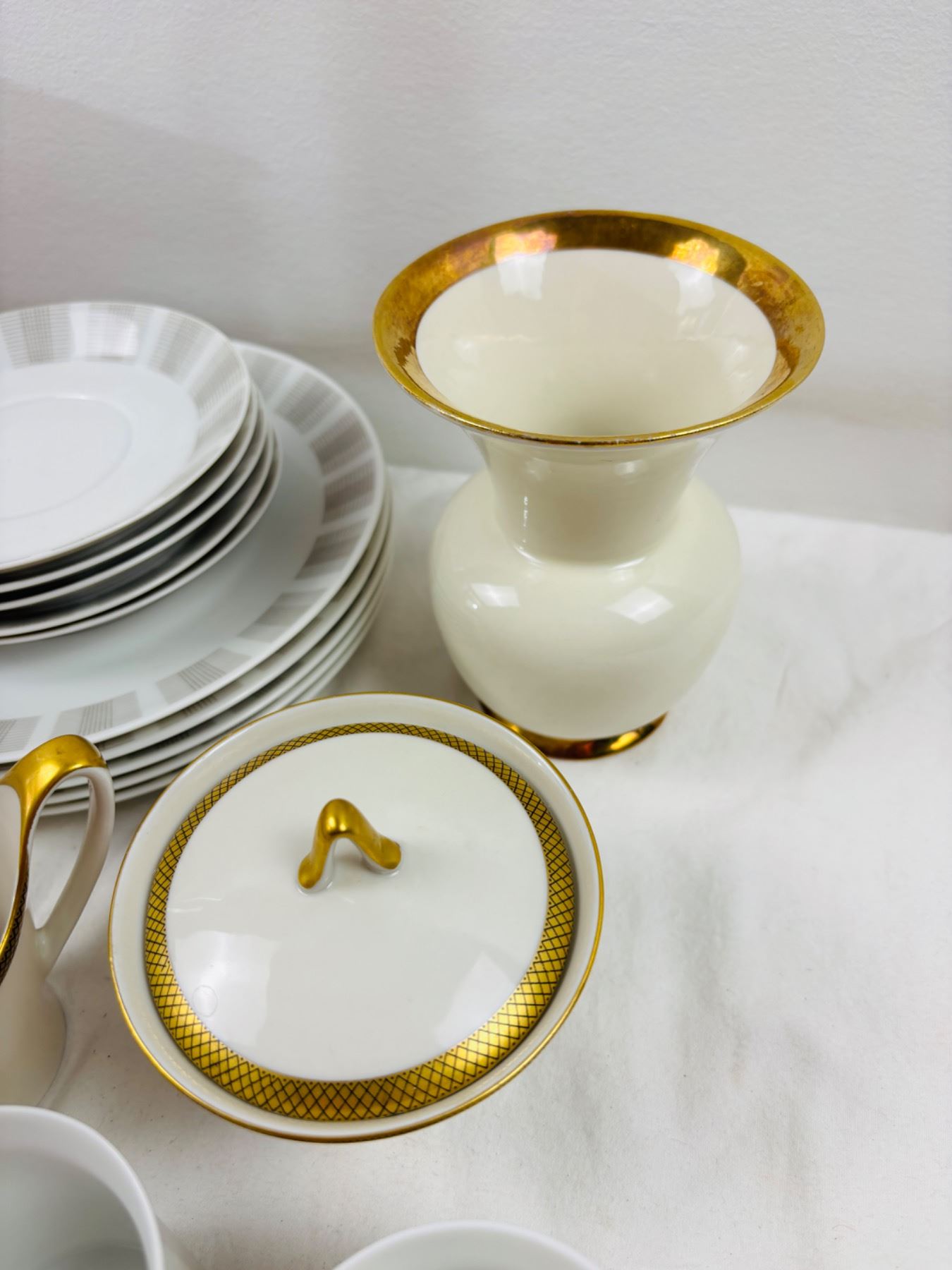 Includes 14 pieces of Kreuzberg, 16 pieces of Johan Feltmann china, one Bavaria Germany vase