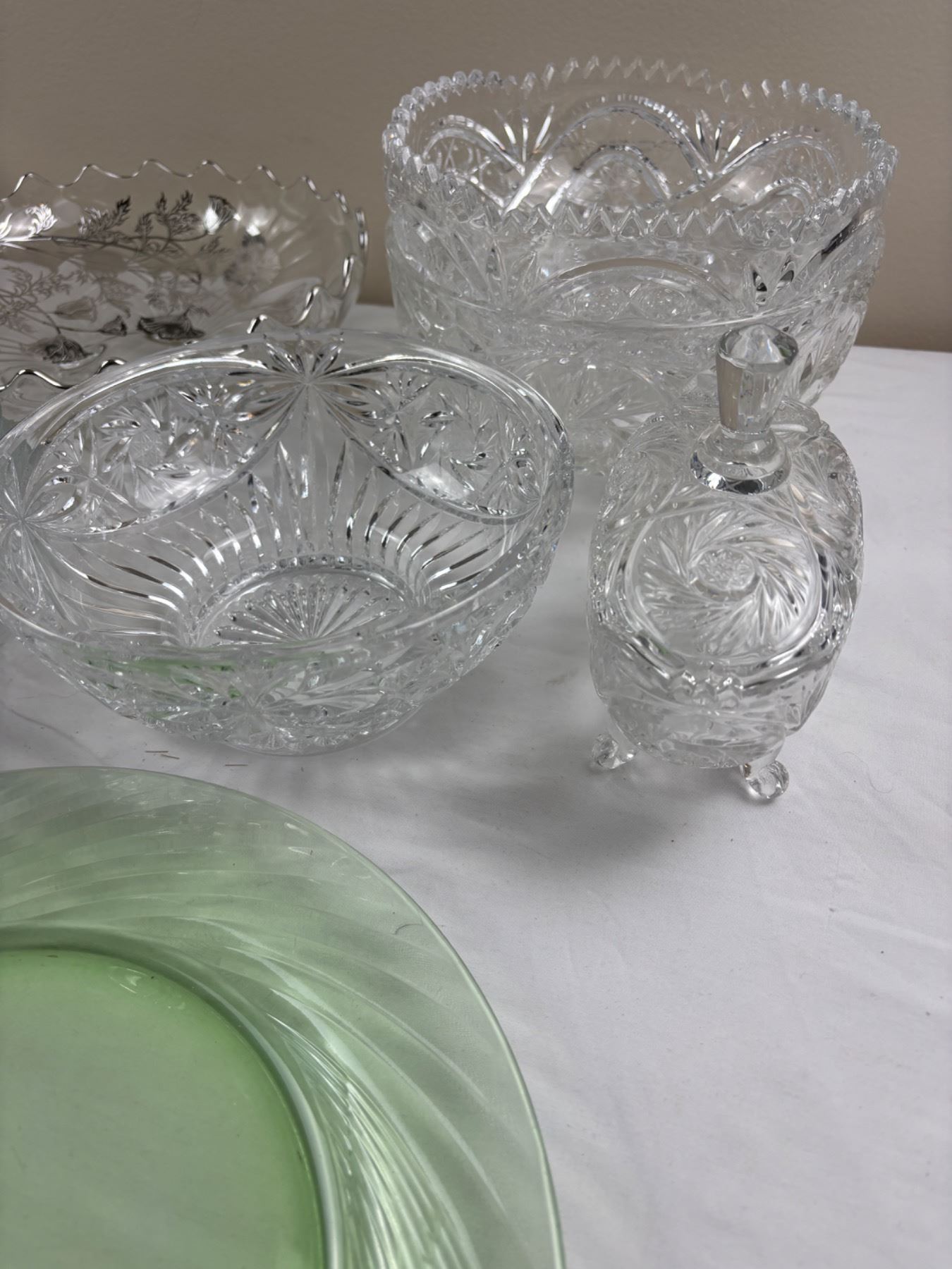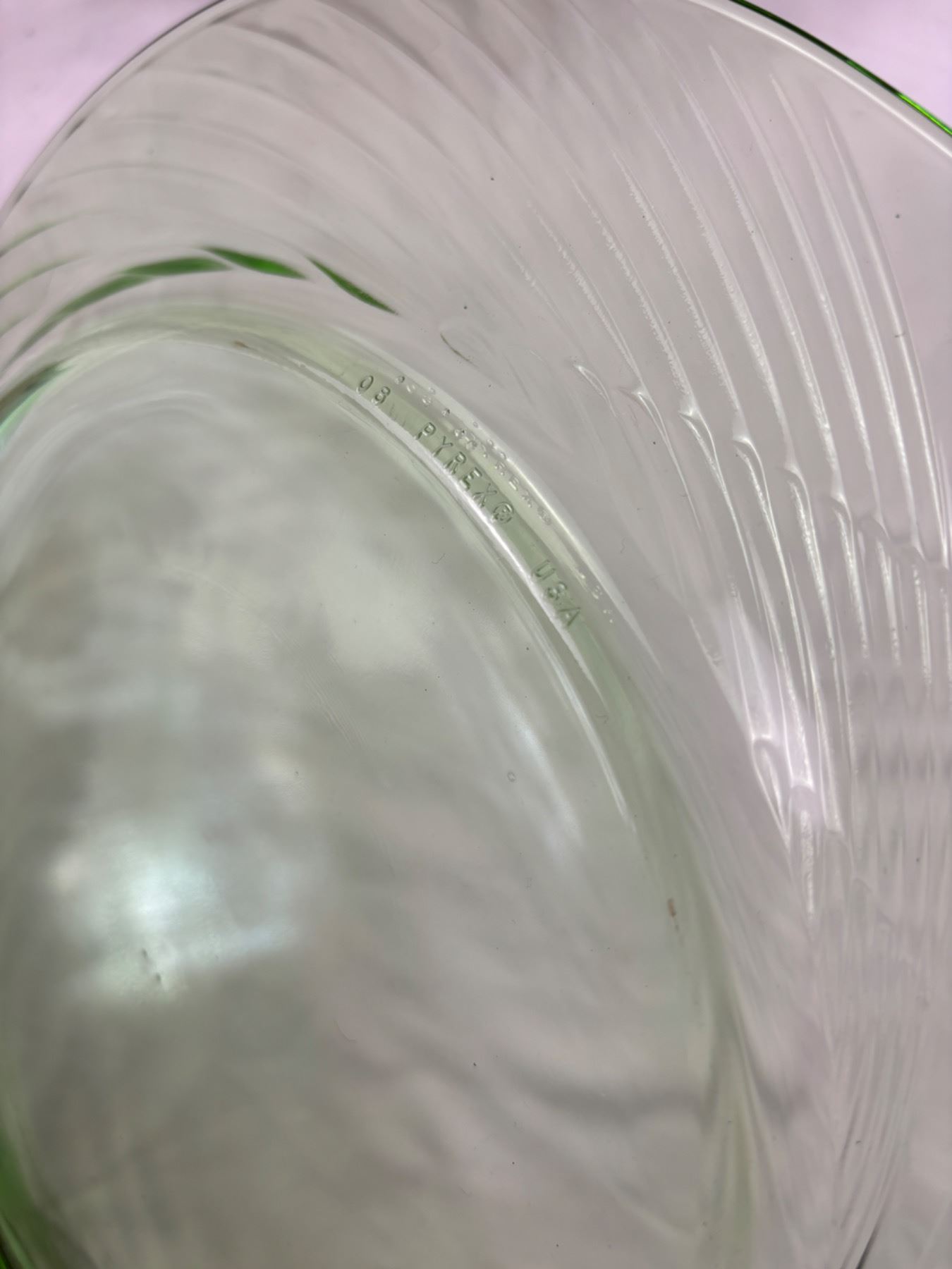 Includes one Krosno dish made in Poland, Green Pyrex Plate (12"diameter)