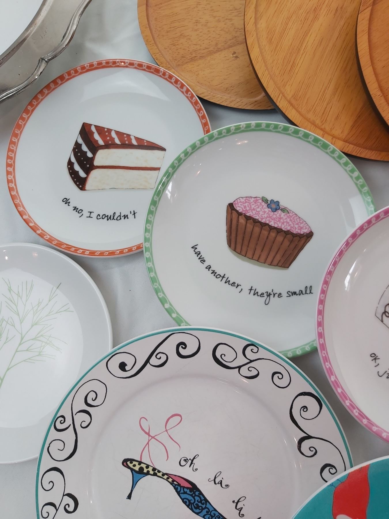 Includes 6 Abott wine glass side plates, Boston Warehouse, Ricardo, etc.
