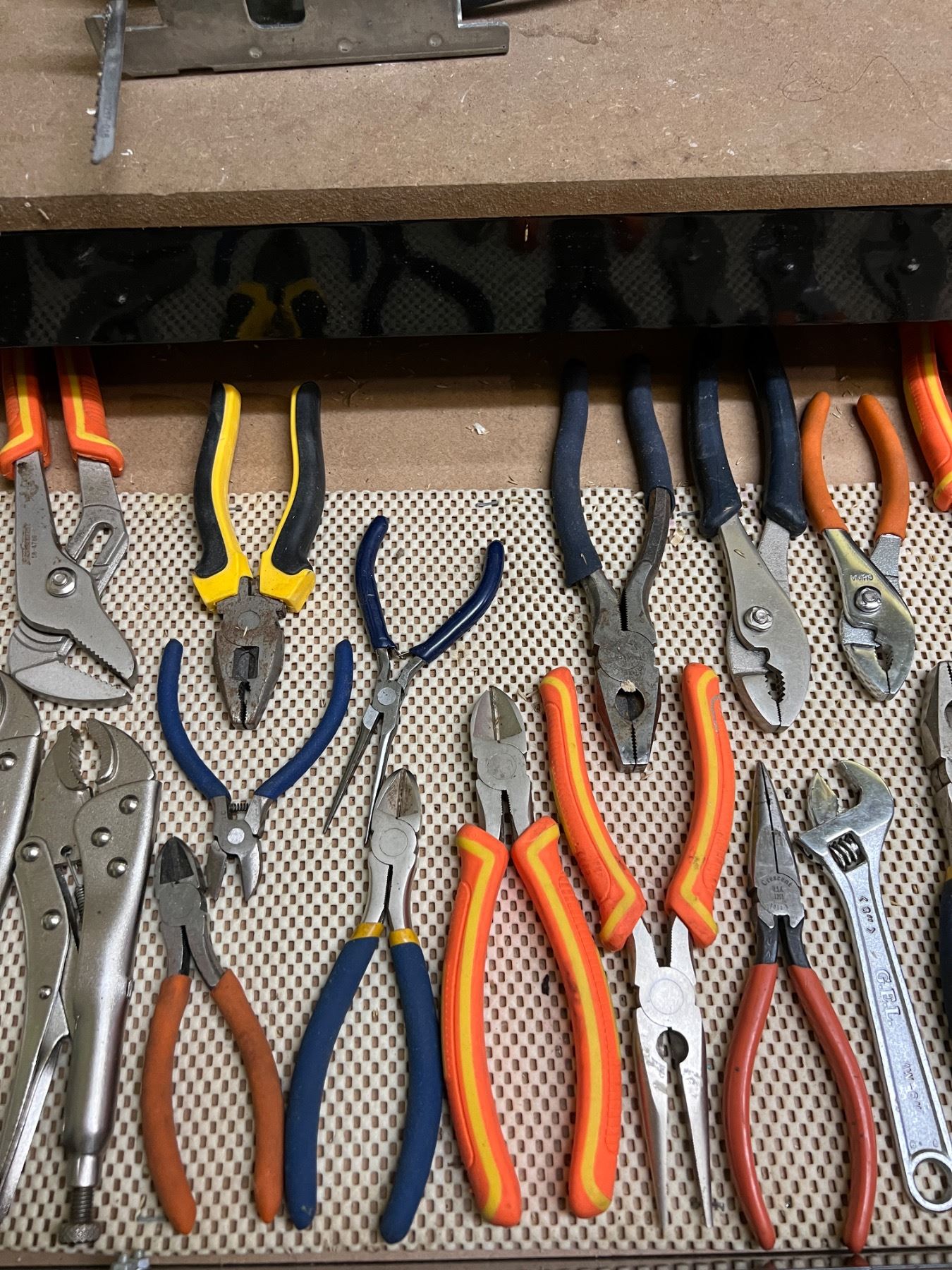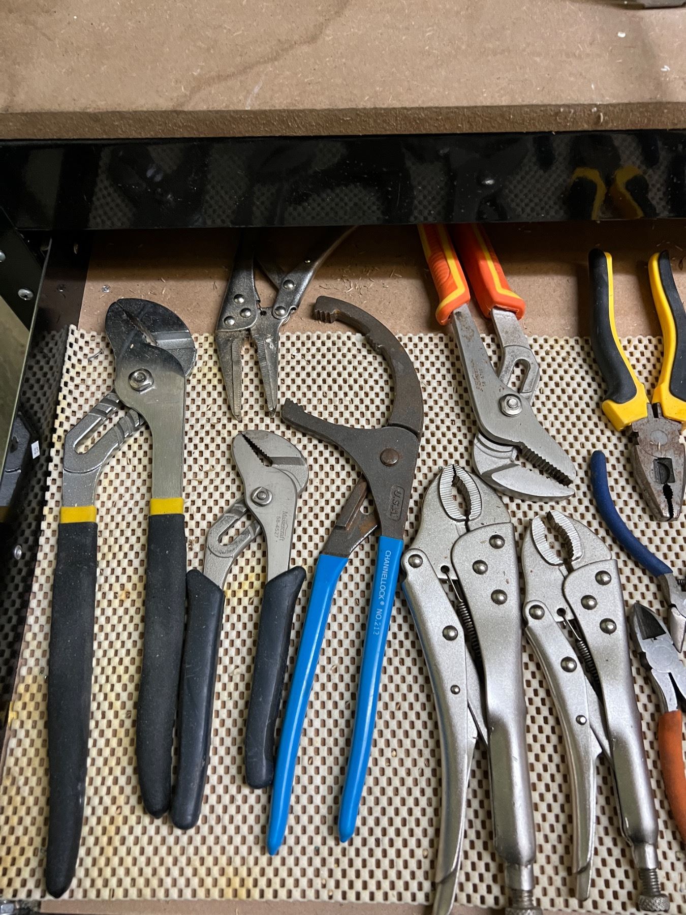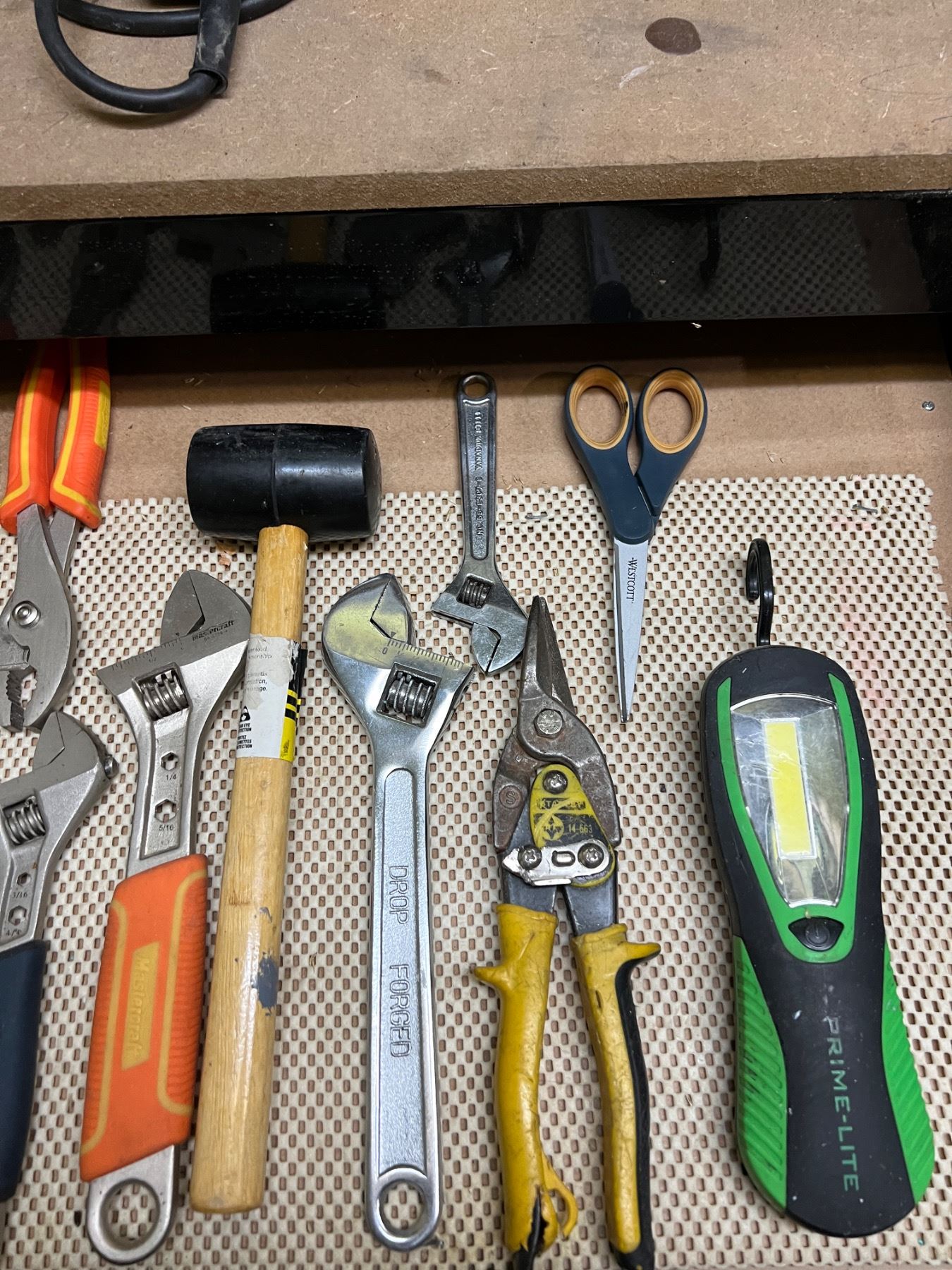 Variety of wear to hand tools. All power tools turn on.