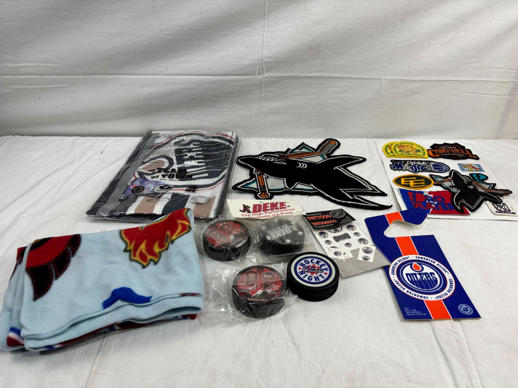 Includes patches, pucks, tattoos, NHL sling bag, and more