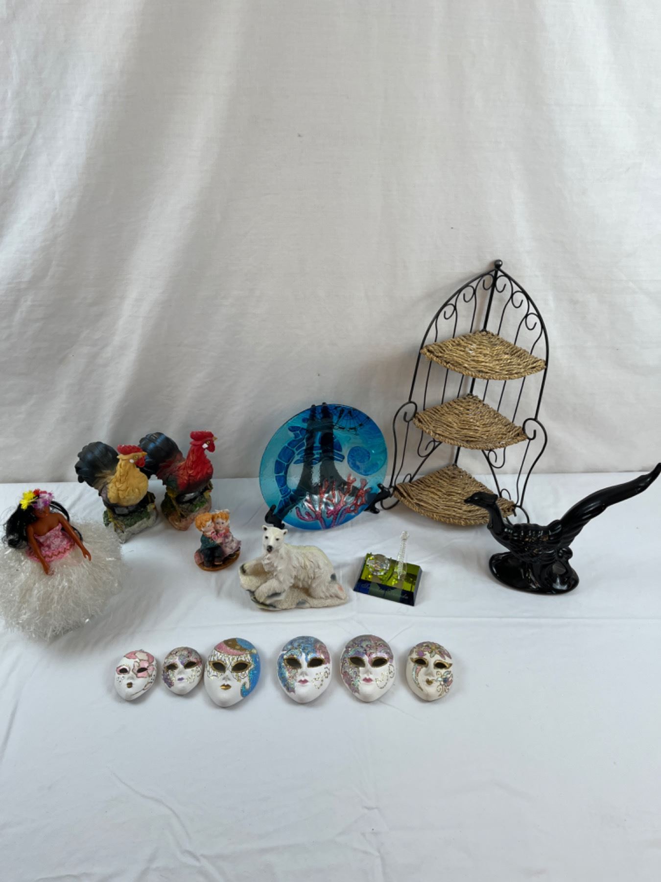 Display Stand is 16" High. 1 Harlequin Mask is Cracked