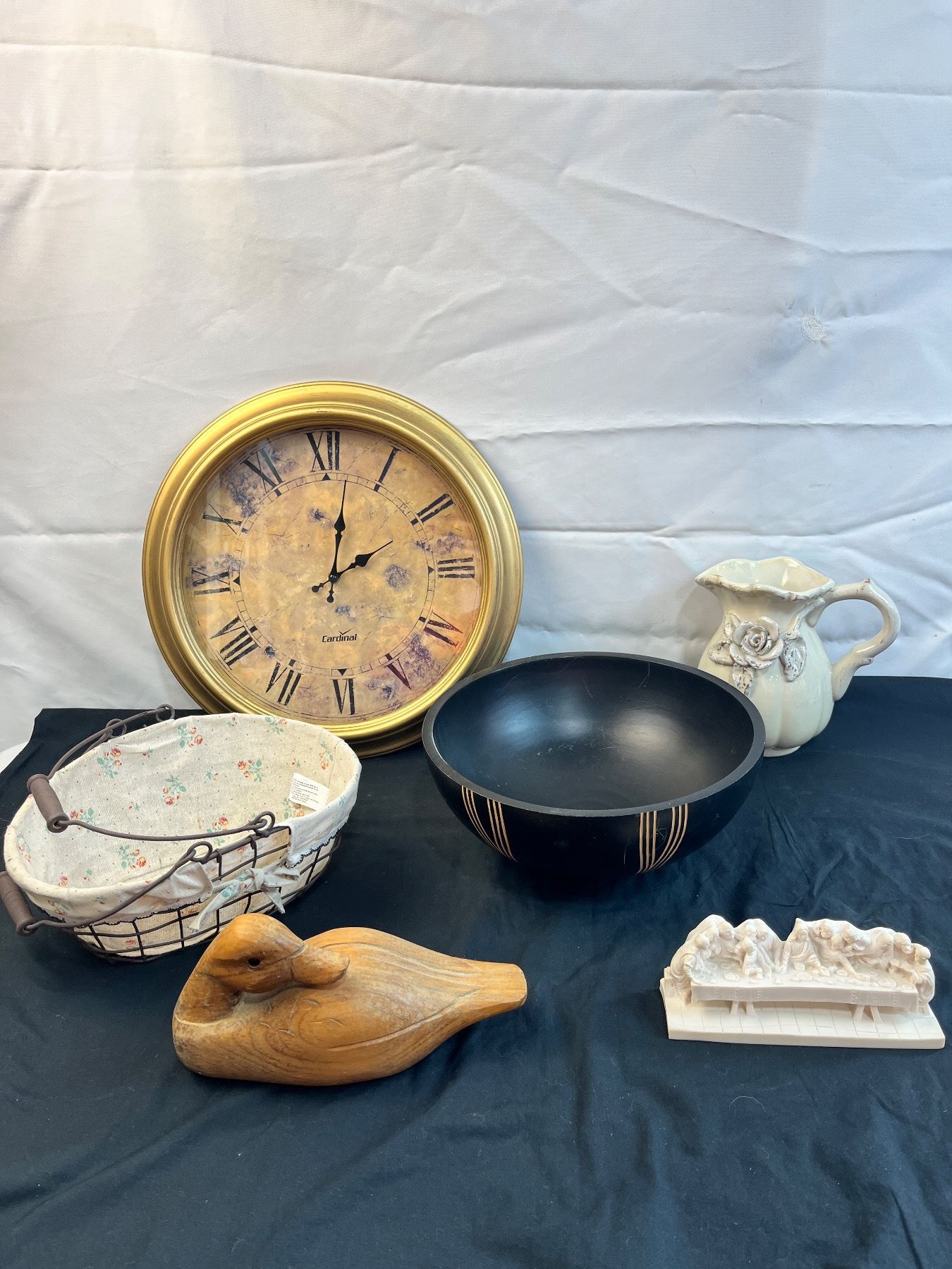 Includes Maxcerna Pottery Jug, Cardinal Wall Clock, Wooden Bowl & Last Supper Carving