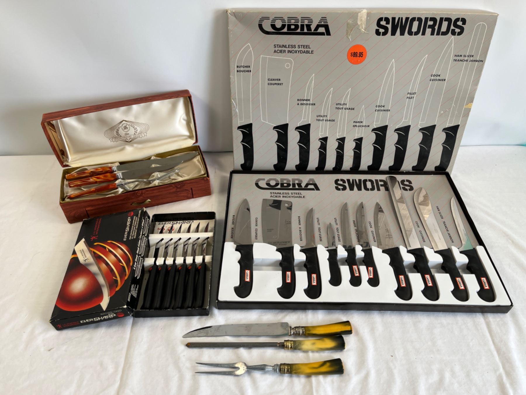 Includes Cobra Swords Knife Set & J.A. Henkel's Steak Knives & G.G Carving & Steak Knife Set